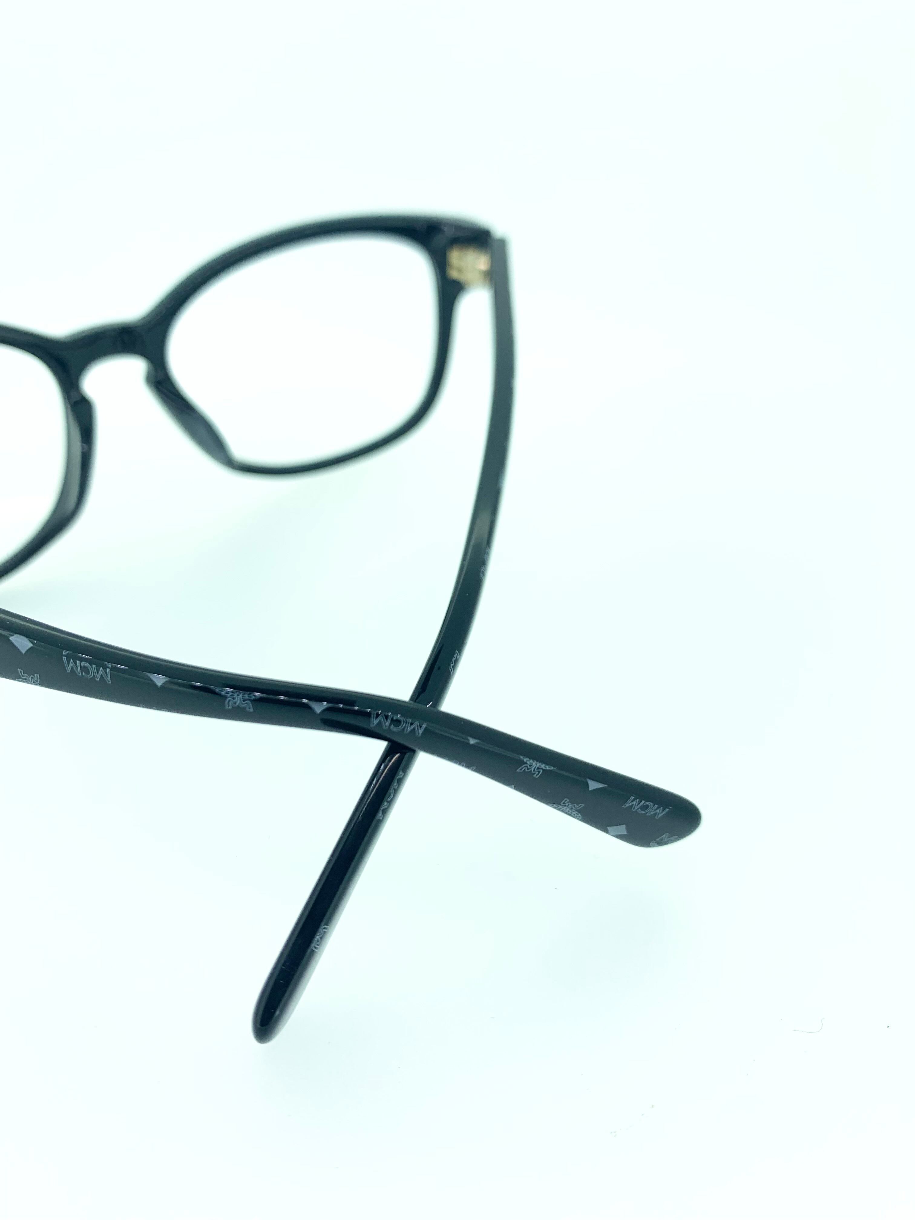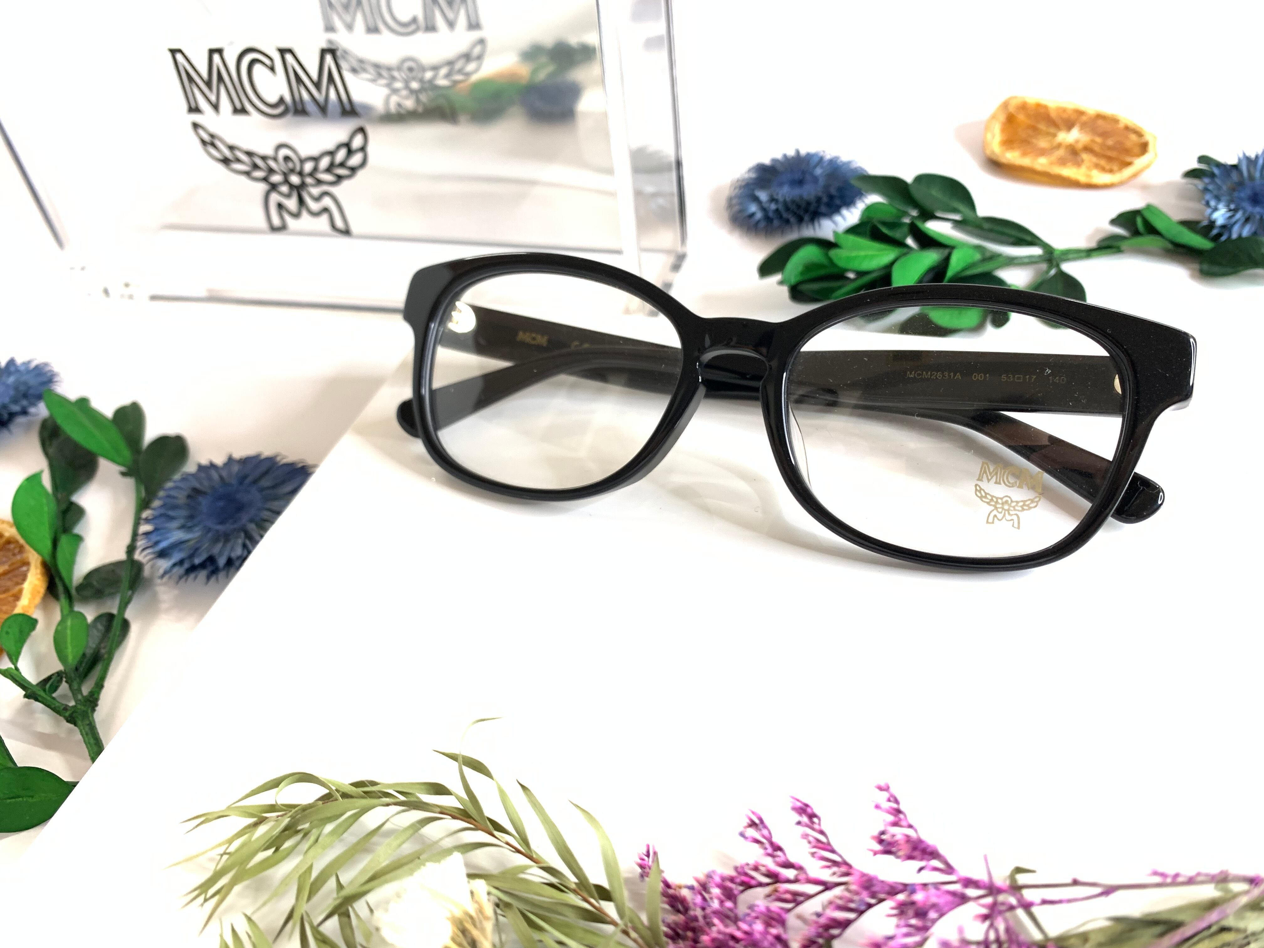 光沢のあるブラックフレームがシックな雰囲気のウエリントンシェイプのセルフレーム。シックのフロントとは対照的なテンプルデザインは、ブランドロゴをいっぱいにあしらった、ラグジュアリーでスタイリッシュなデザインが秀逸な作品。有名アパレルブランドのMCMならではのデザイン性の高いアイテムとなっています。