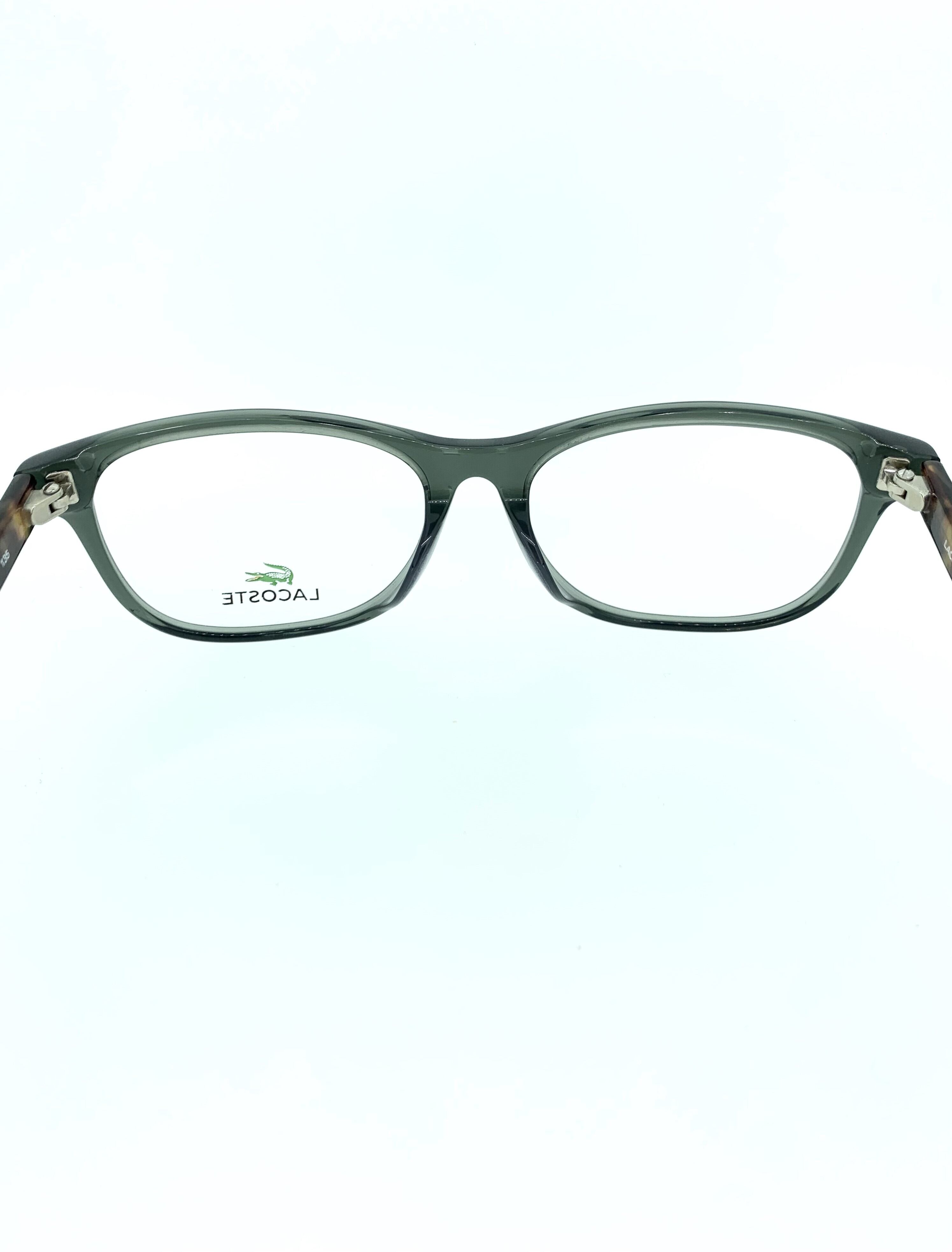 落ち着きのあるクリアグリーンのウェリントンシェイプのフロントに濃淡単はっきりとしたブラウンデミの色合いが鮮やかなセルフレーム。シックなフロントにカジュアルで雰囲気の出るブラウンデミを合わせることで、大人カジュアルな印象のフレームとなっています。単純なデミ柄ではなくLACOSTEのメインカラーであるグリーンを使った他と被らない作品に仕上がりました。