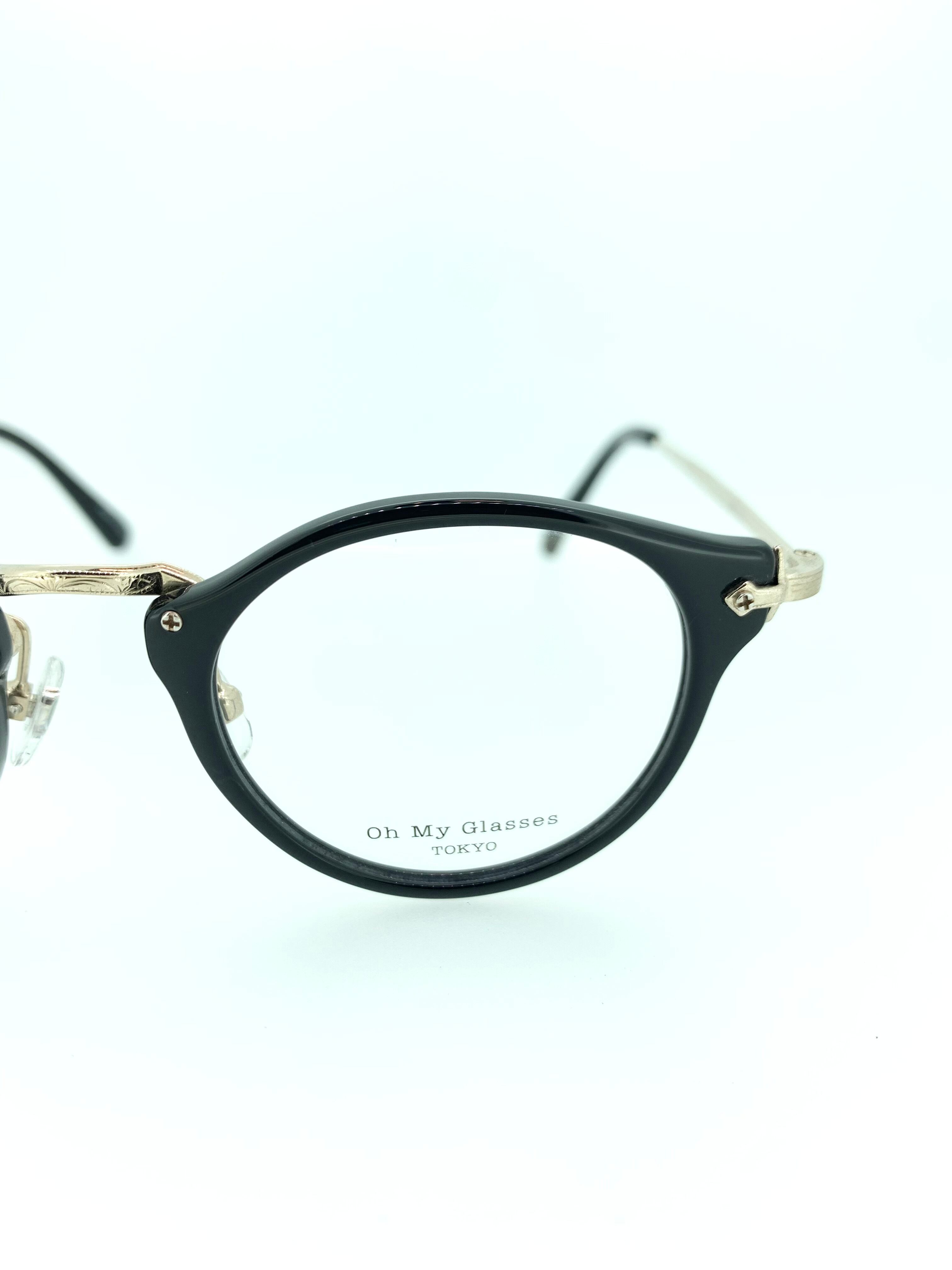 丸みの強いボストンシェイプにヨロイ部分を長めにとったアイラインのようなリムデザインがお洒落な作品。ブリッジやヨロイ部分のネジをあえて見せるデザインにすることで、クラシカルな無骨さも演出しています。高級感のあるイエローゴールドのメタル部分には、繊細な装飾が施され金細工にような高級感に仕上がりました。