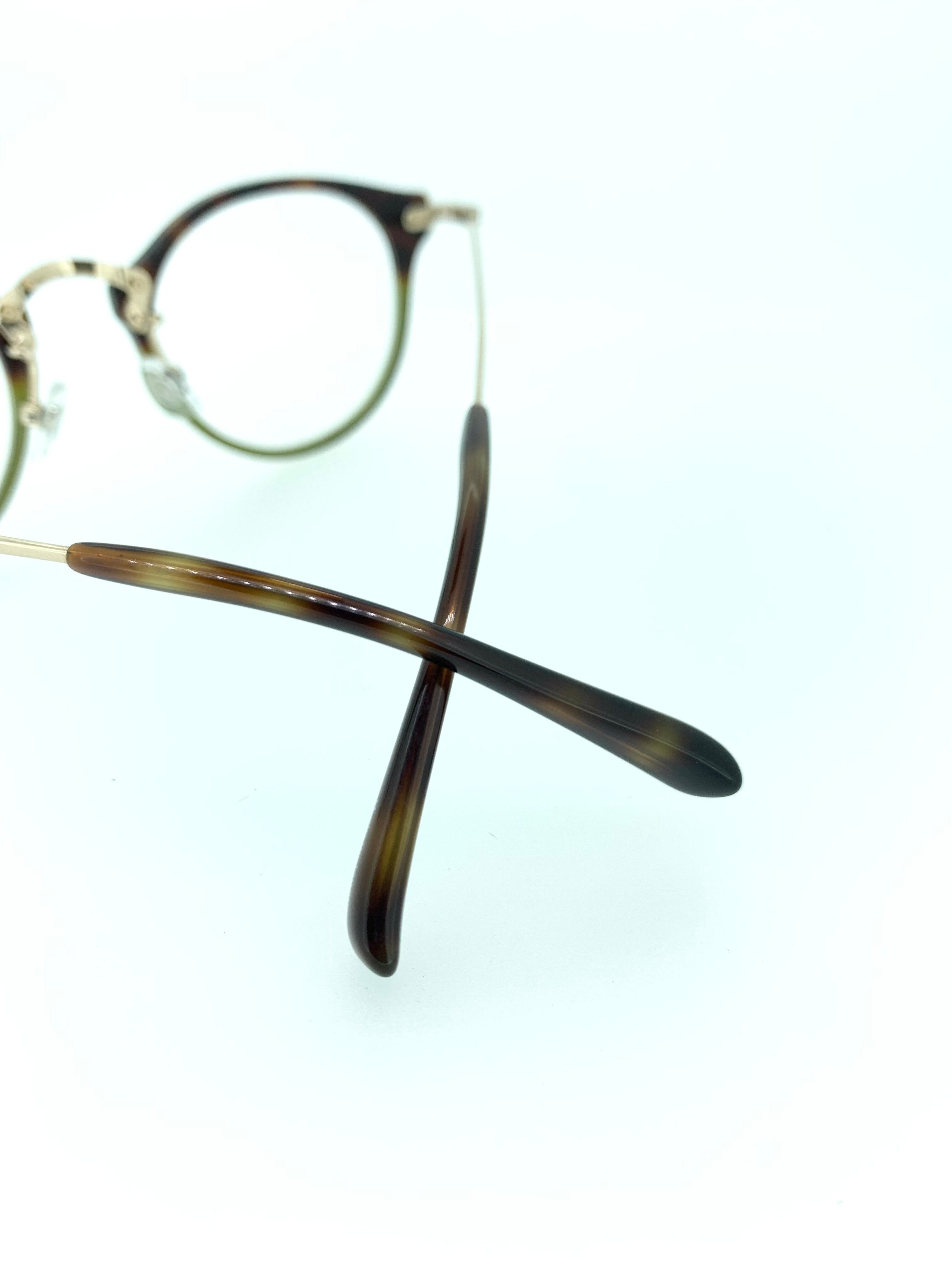 深みのあるブラウンデミとモスグリーンのグラデーションが綺麗なボストンシェイプのコンビネーションフレーム。個性的だがアースカラーで統一されたセル生地にゴールドメタルの柔らかな高級感が絶妙なバランスでマッチしています。テンプルの細部にもこだわり繊細な装飾が施されていて、洗練されたフレームワークが最高にお洒落な作品となっています。