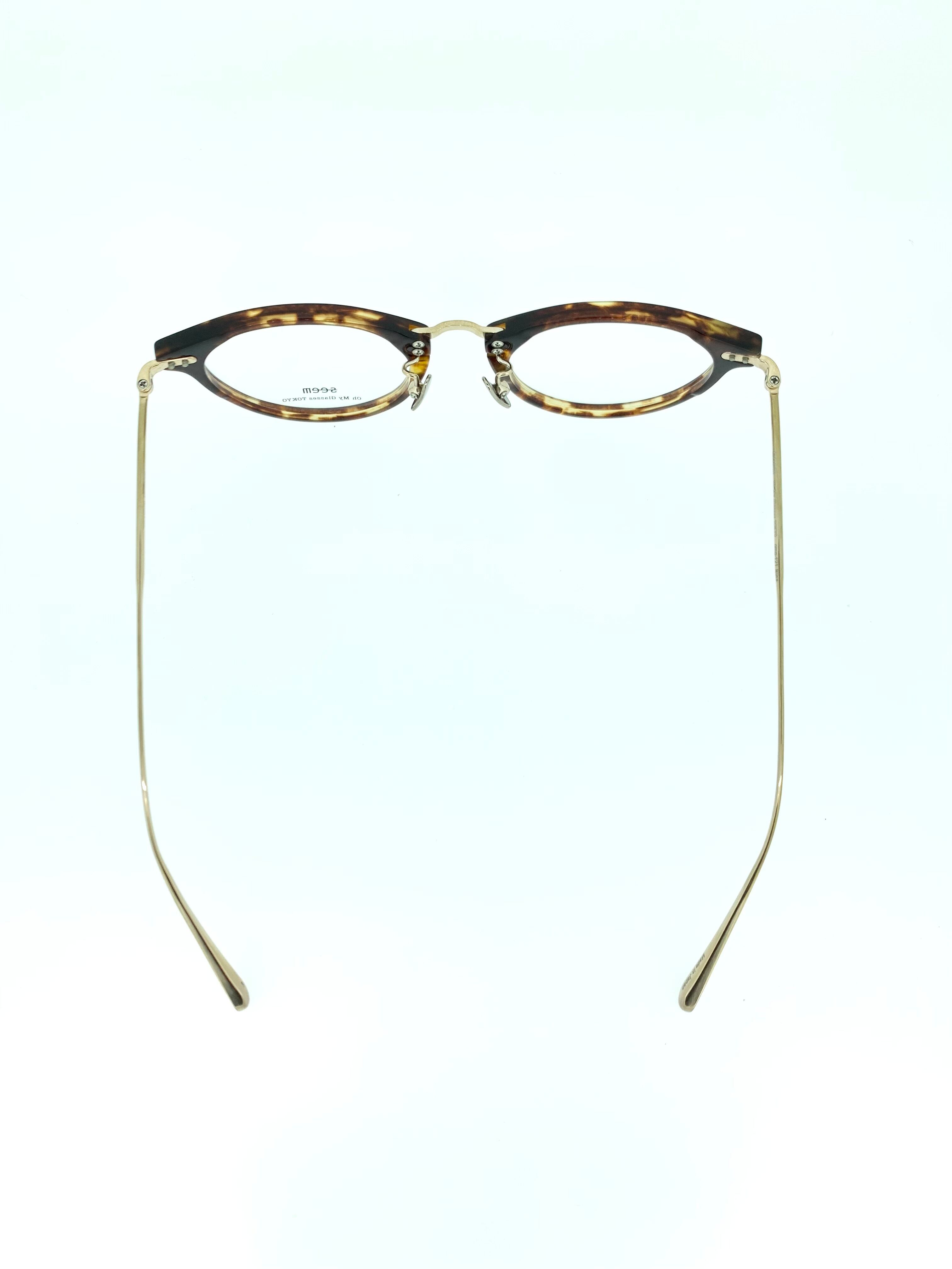 丸みの強いボストンシェイプに濃淡の綺麗なブラウンデミのコンビネーションフレーム。上品で煌びやかなゴールドメタルのテンプルは先端までオールメタル仕様で、スタイリッシュなデザインとなっています。しっかりと厚みのあるセルリムがカジュアルな雰囲気もあり、高級感とカジュアルのバランスがとれたお洒落な作品です。