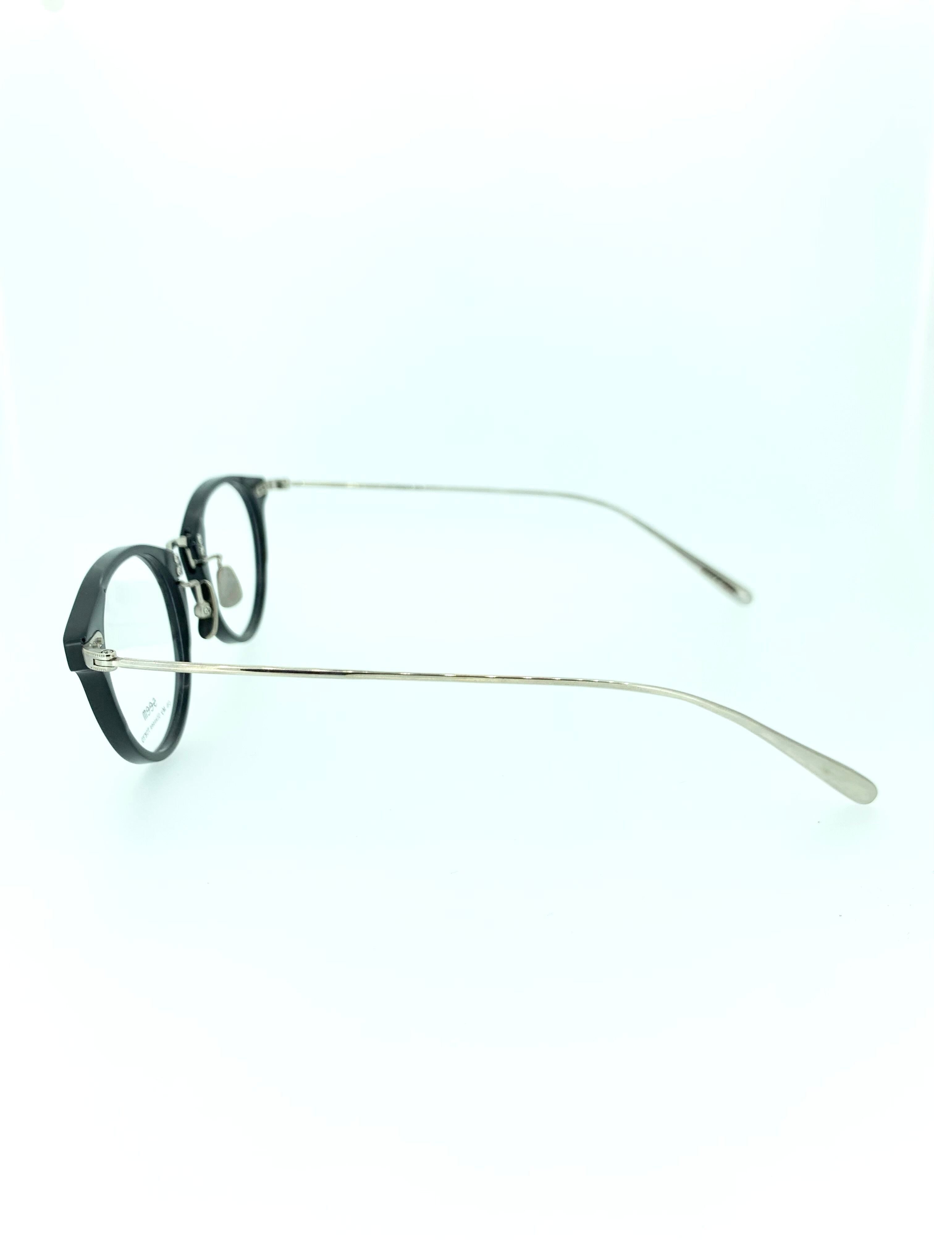 丸みの強いボストンシェイプにシックなブラックフロントとメタルのコンビネーションフレーム。テンプルは先端までオールメタル仕様で、スタイリッシュなデザインとなっています。しっかりと厚みのあるセルリムがカジュアルな雰囲気もあり、スタイリッシュとカジュアルのバランスがとれたお洒落な作品です。