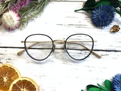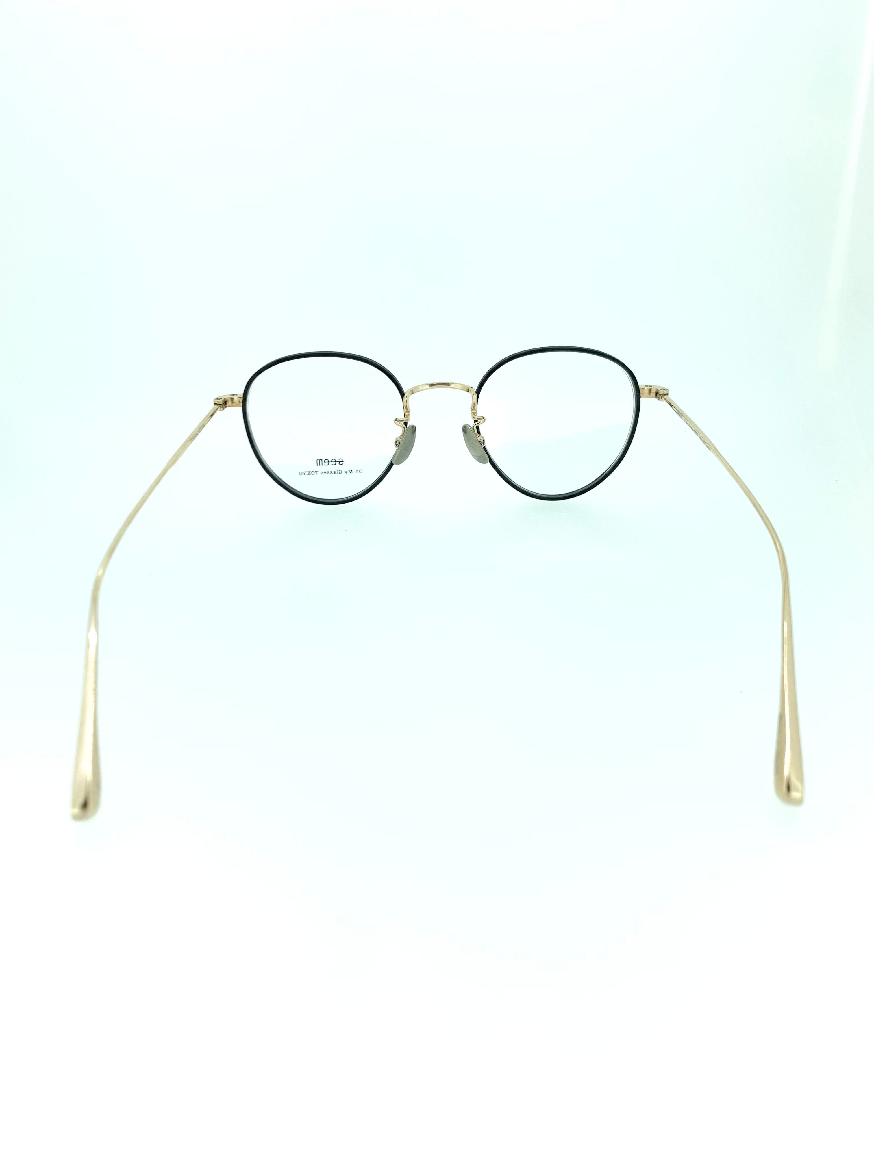 細身のゴールド×ブラックのフレームで逆三角形に近いコンパクトなボストンシェイプを合わせた煌びやかでお洒落なメタルフレーム。フロントリムはコントラストをハッキリにメタルを幾重にも重ね奥行を生み出す独創的なデザインになっていて、全体的に統一されたシンプルなデザインをグッと引き立てます。シルエットとカラーリングで綺麗にまとめられた上品な作品です。