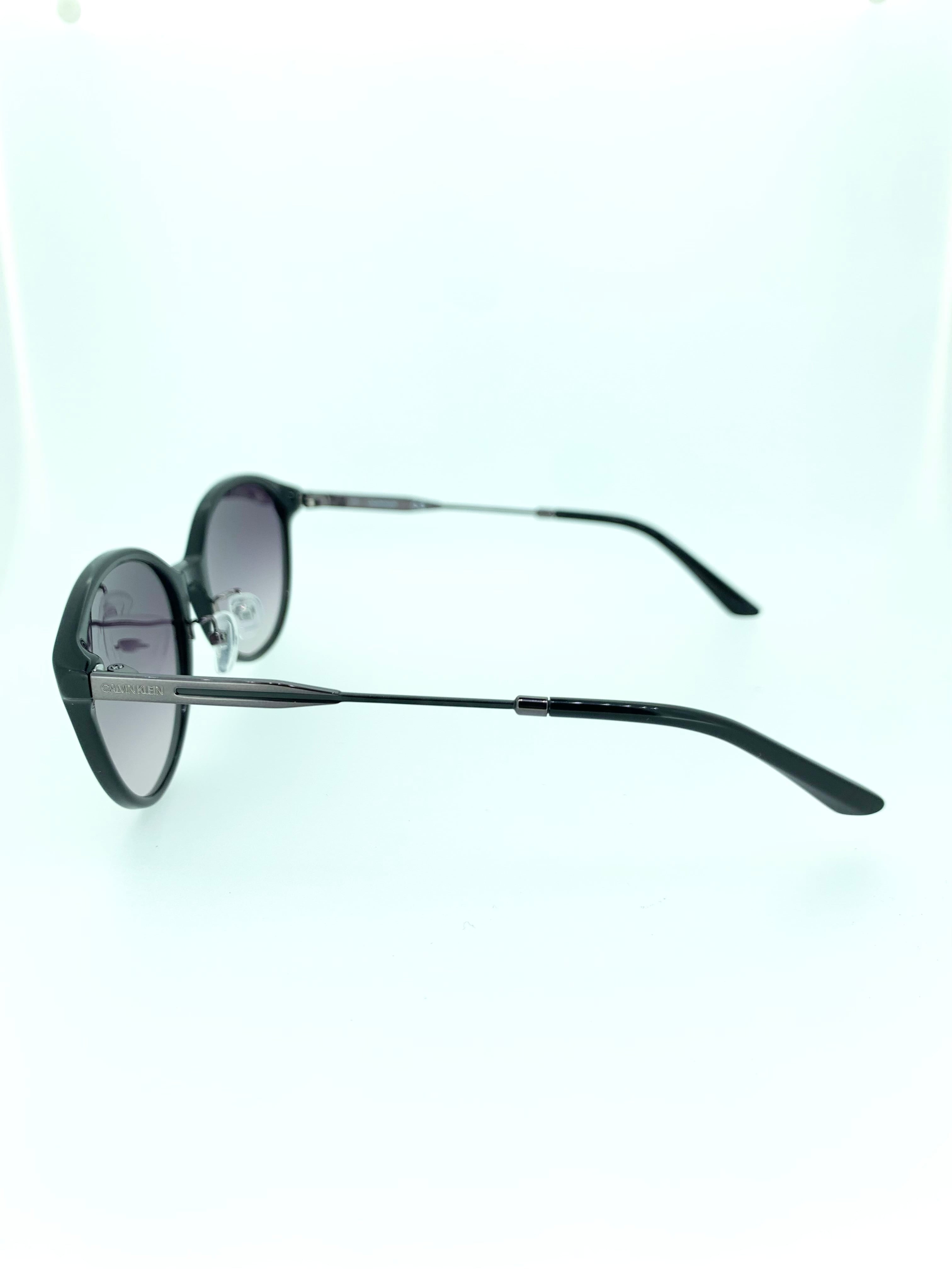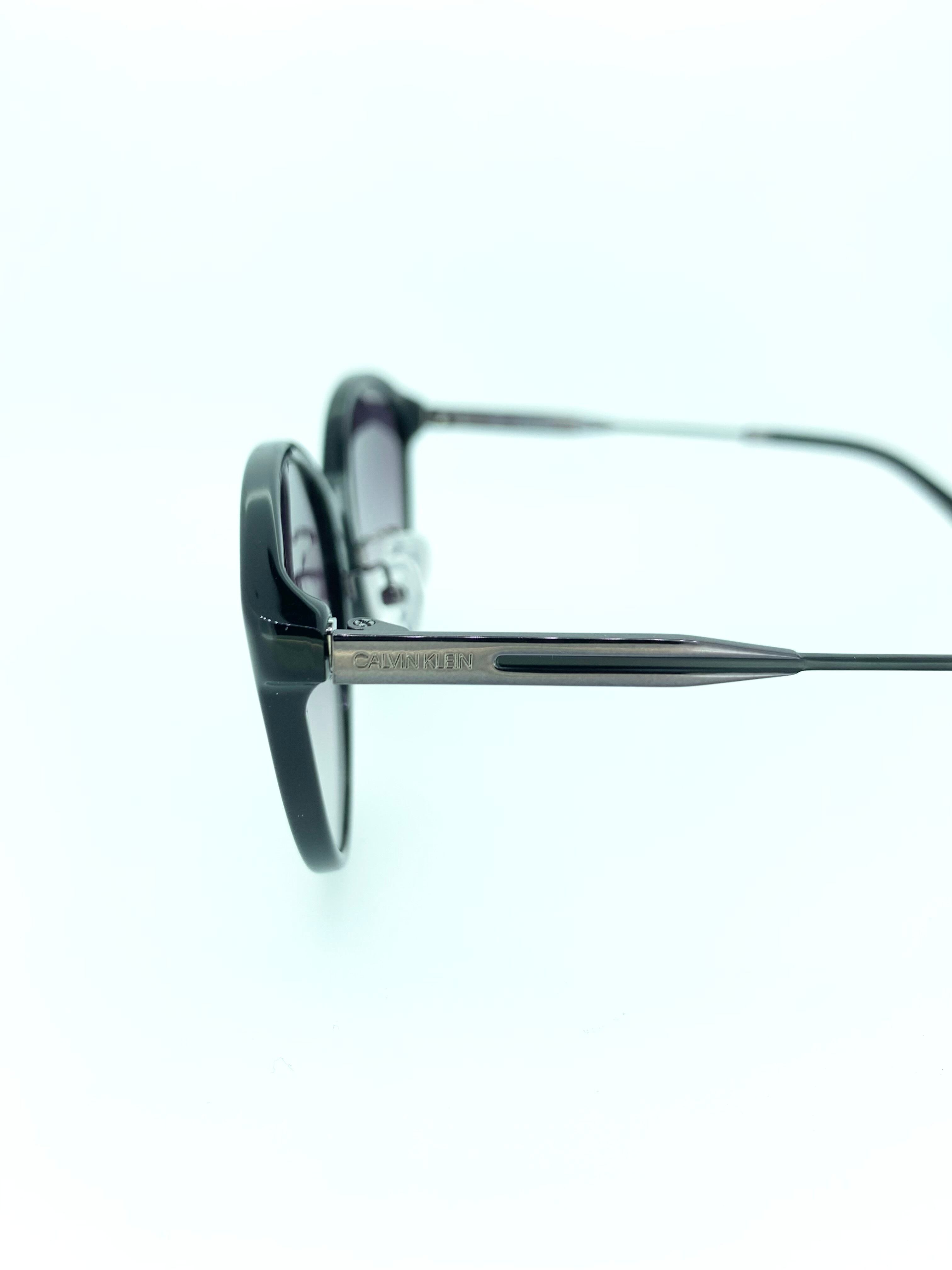 天地の広いボストンシェイプに目尻のキリッとしたリムデザインがお洒落なセルフレームサングラス。ワイドでインパクトのあるフロントのバランスをとるようにテンプルをメタルにすることで、CALVIN KLEINらしいスタイリッシュな雰囲気になっています。ブラック×シルバーのコントラストのハッキリとしたカラーリングはグッとスタイルを引き締めますね。
