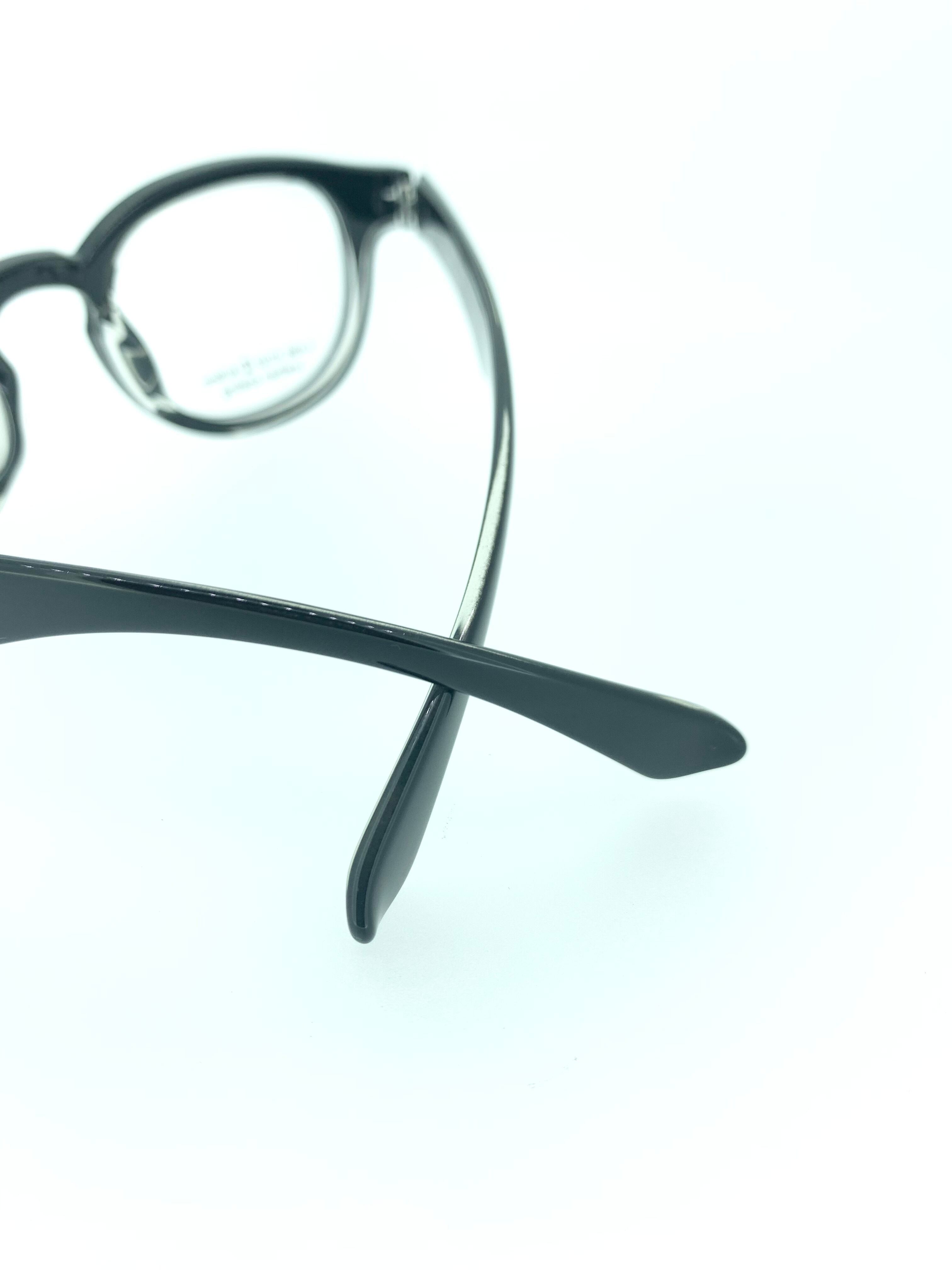 肉厚のセル生地にどんなスタイルにもマッチするブラックカラーが高見えするボストンシェイプのセルフレーム。しっかりとセル幅もとられたデザインとなっているため、コーデのアイテムとしての存在感も十分にあり、1本あるだけで幅の広がるアイウェアとなっています。最近の流行りとして、ボストンの柔らかい丸みとウェリントンの誠実な雰囲気を併せ持ったボスリントンに近いフロントデザインになっているところもデザイン性が高くオススメの作品です。