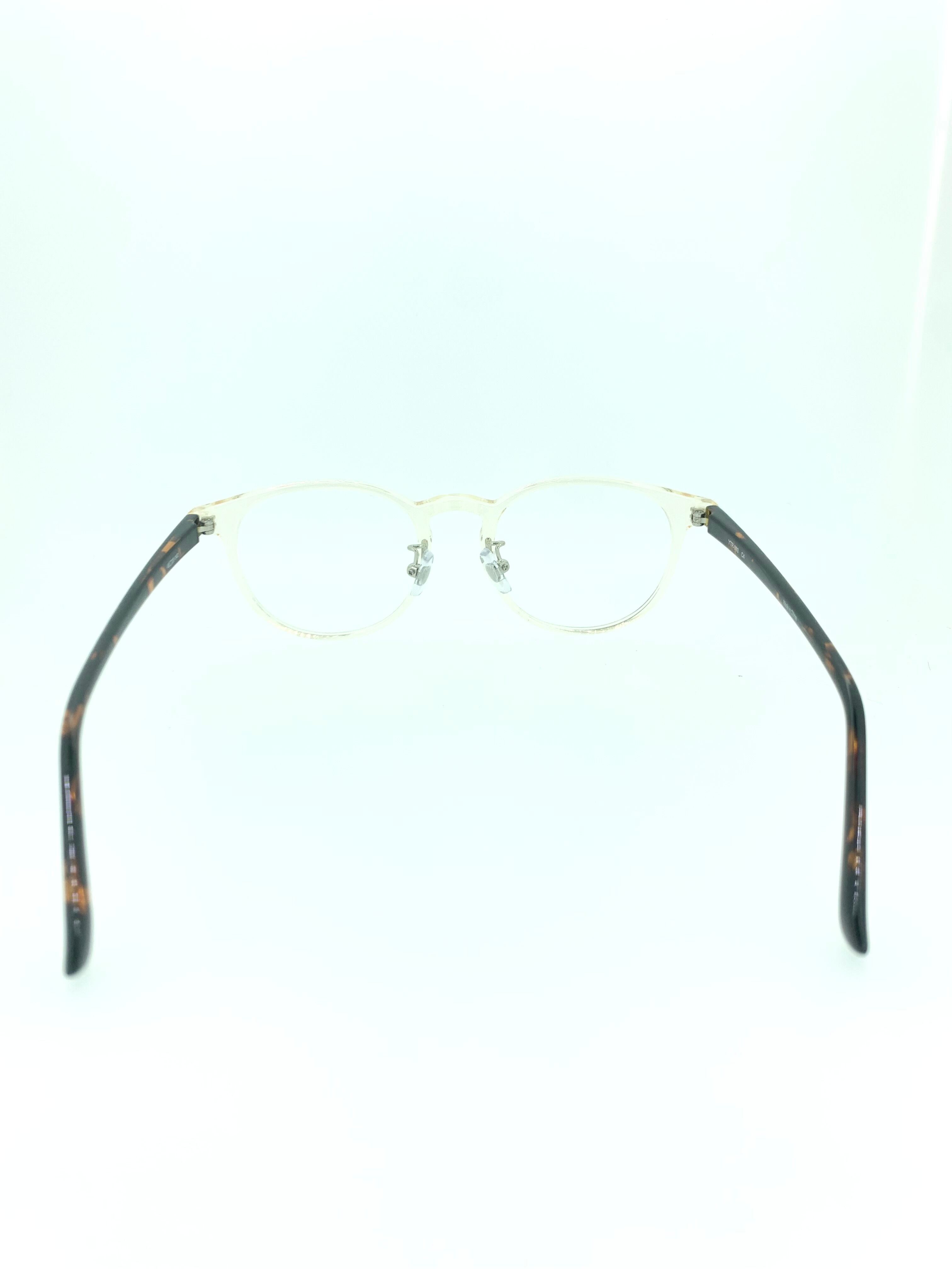 アメ色で優しい色合いのフロントとデミ柄テンプルの組み合わせが特徴的なボストンシェイプのセルフレーム。ボストンシェイプの柔らかな雰囲気と暖色系のカラーリングが絶妙にマッチしていて、レトロさとモダンが融合したようなプチプラアイテム。細身のフレームデザインに癖の少ないシルエットを採用することで、フロントのインパクトを上手くカジュアルダウンさせた秀逸な作品となっています。