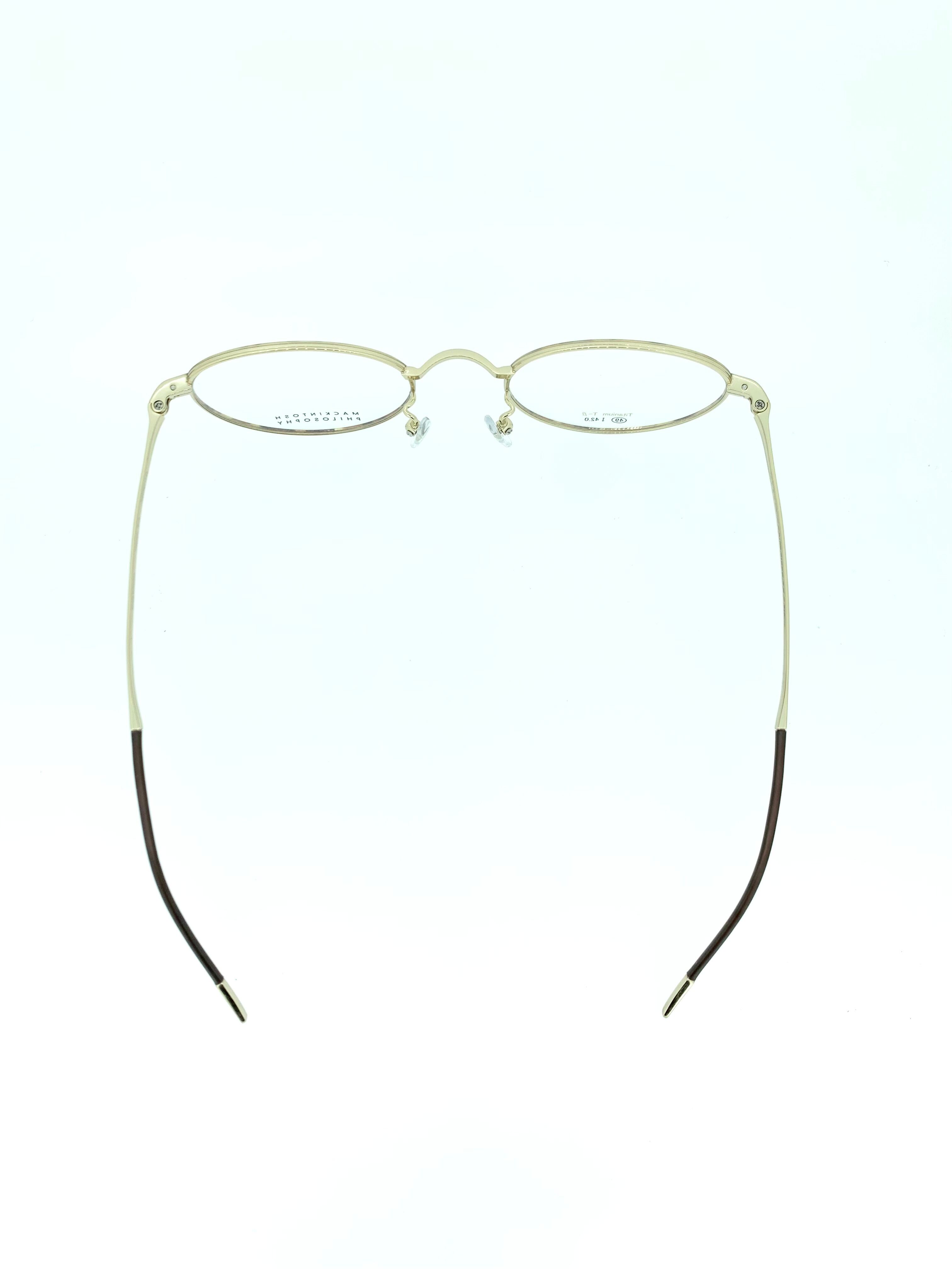 レッド×イエローが鮮やかな色彩のブラウンデミのフロントデザインが目を惹くボストンシェイプのメタルフレーム。ゴールドメタルとテンプルのブラウン系カラーで全体的の印象を統一し、ボストンシェイプの優しく柔らかな雰囲気にマッチしています。余計なデザインは加えずシルエットの綺麗さとカラーリングで魅せるスタイリッシュな作品です。