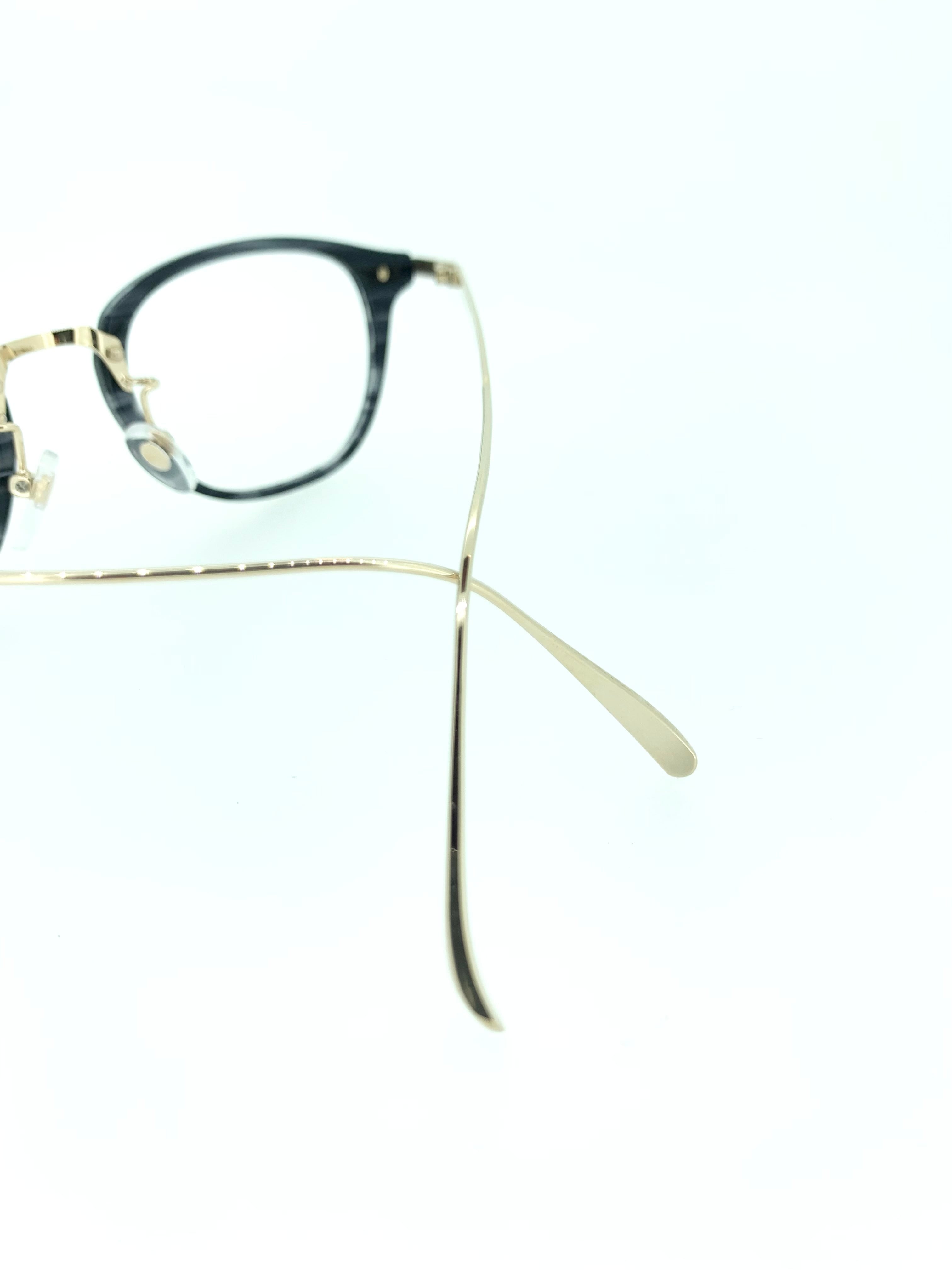 メタル生地に装飾された模様と大理石のようなグレーササのリムデザインが高級感を漂わせるコンビネーションフレーム。ウェリントンシェイプのレンズデザインは誠実で大人っぽい印象を与え、ビジネスシーンにもかけやすいお洒落なデザインです。テンプルが先端までメタル仕様になっているのでスタイリッシュな仕上がりになっています。
