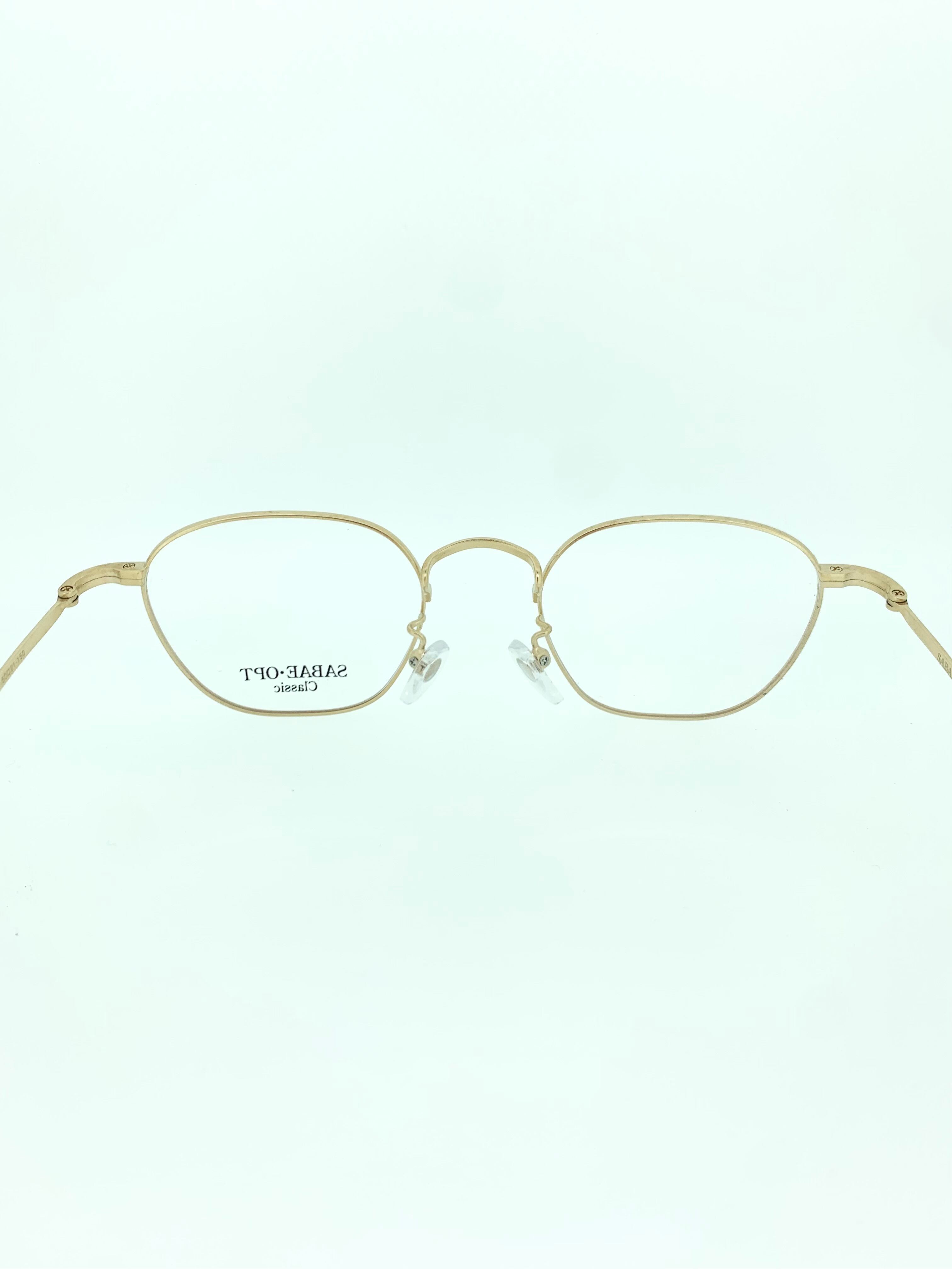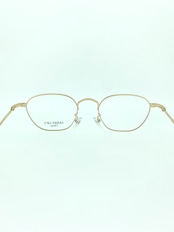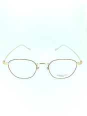 光沢を抑えたマット調のイエローゴールドとフロントの鮮やかなレッドデミが絶妙にマッチしたメタルフレーム。多角的にも見える独特なウェリントンシェイプのフロントデザインは個性と知性を感じさせるシルエットになっています。テンプルを先端までフルメタル仕様にすることで、シェイプラインと相まってレトロ感もあるお洒落なフレームになりました。
