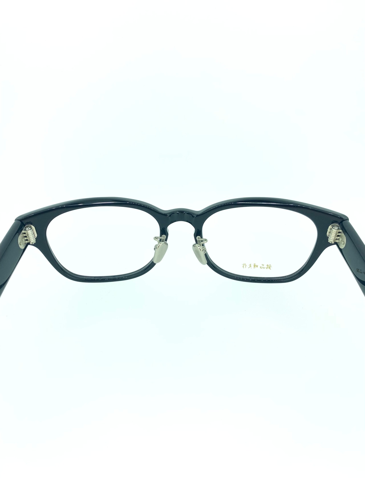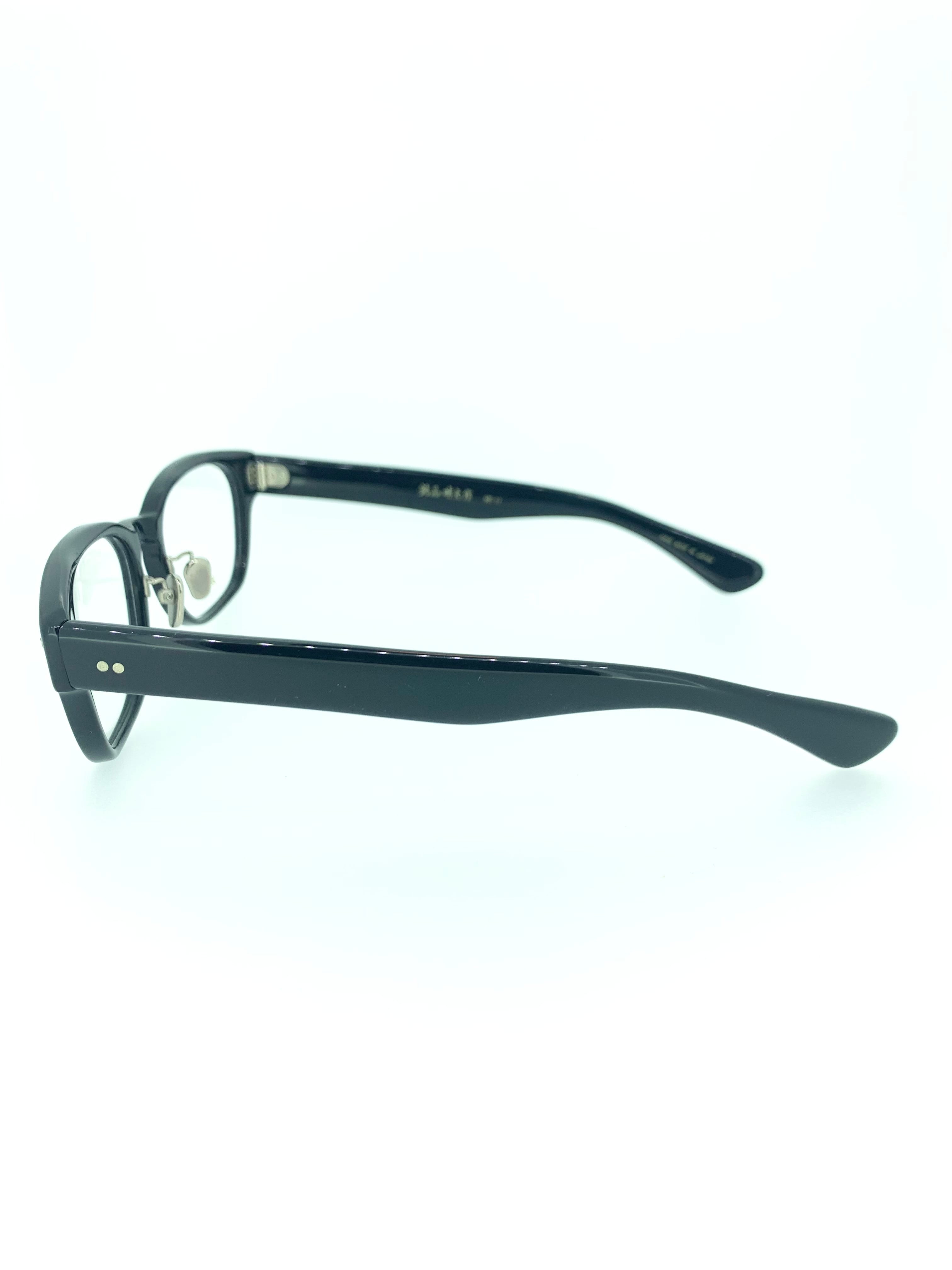 洗練されたブラックカラーが無骨でクールなウェリントンシェイプのセルフレーム。ツヤの有るシックなセル生地にカシメやテンプルの金鋲が映える綺麗な作品です。鼻パッドもフルチタン仕様でシンプルなスタイルをスタイリッシュにまとめられていて、繊細な職人技と計算されたシルエットを引き立てます。