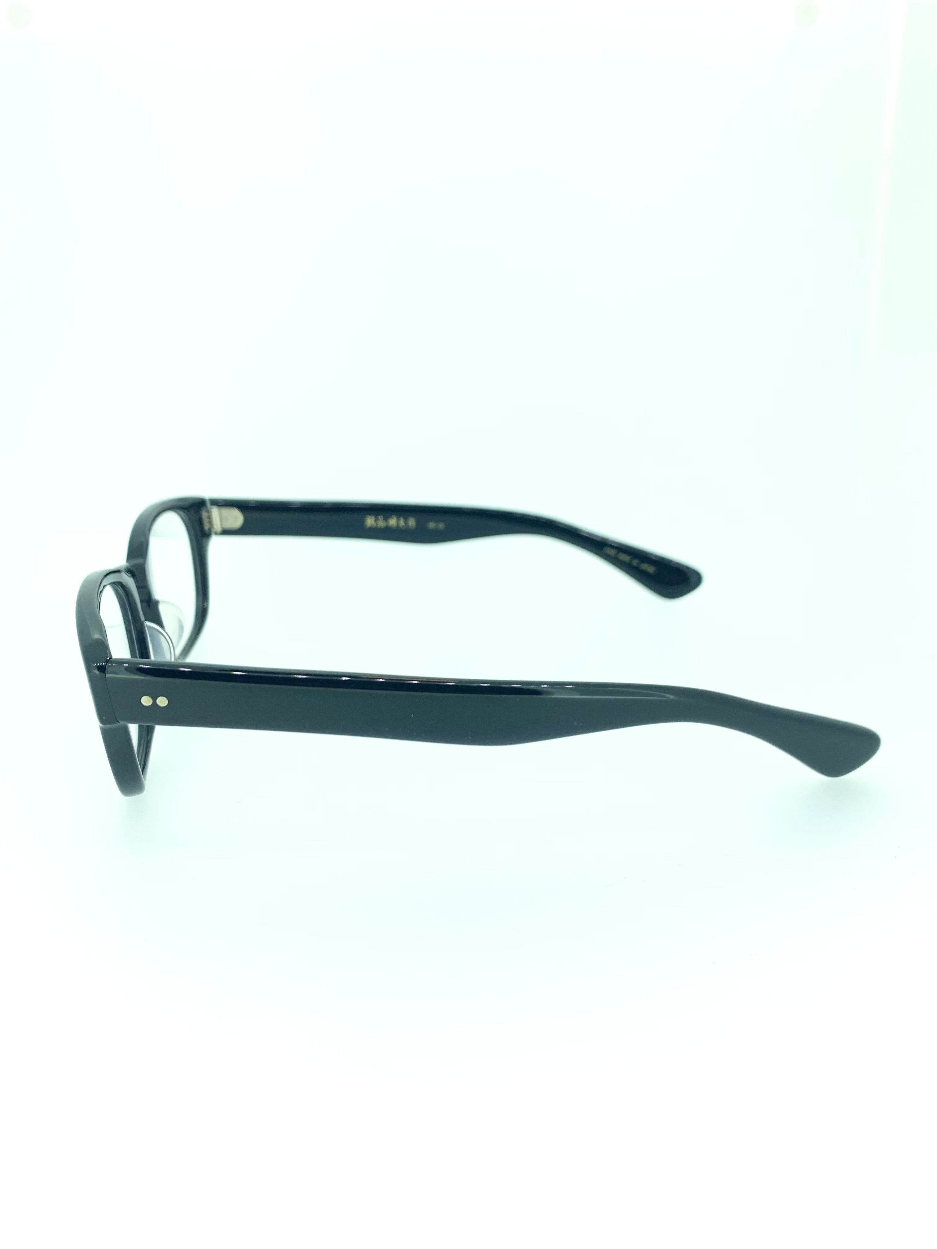オールドスタイルのウェリントンシェイプに程良い肉感のセルフレームのなめらかな肌触りとツヤ感が格別な作品。フレーム全体の研磨は丁寧に施されており、縁に角のない綺麗なシルエットが高級感を引き立てます。ブラックカラー単色の洗練されたカラーリングに無駄を削ぎ落したシンプルなデザインは、繊細な技術だからこそ作品の良さを引き立ててくれる秀逸な作品です。