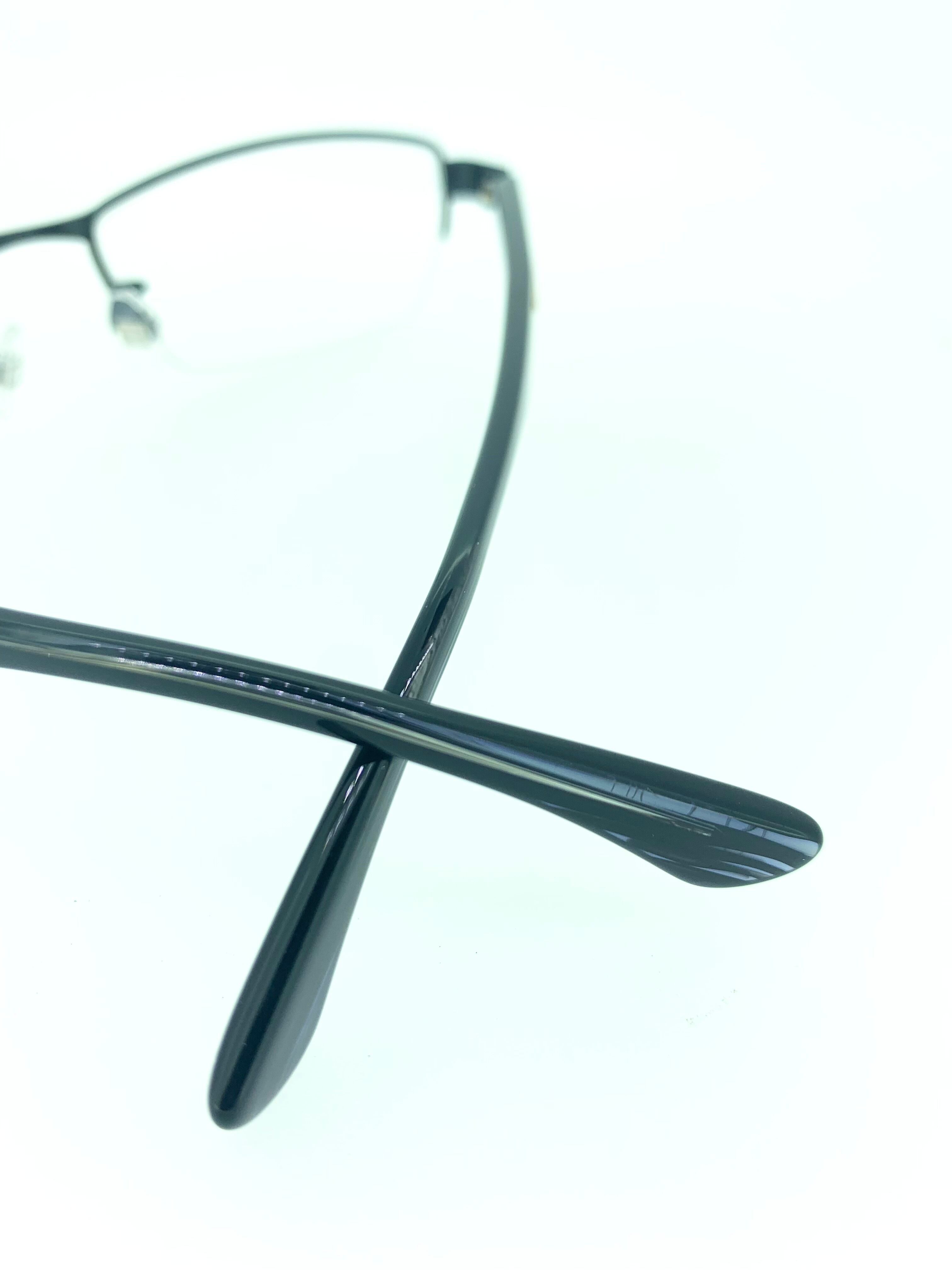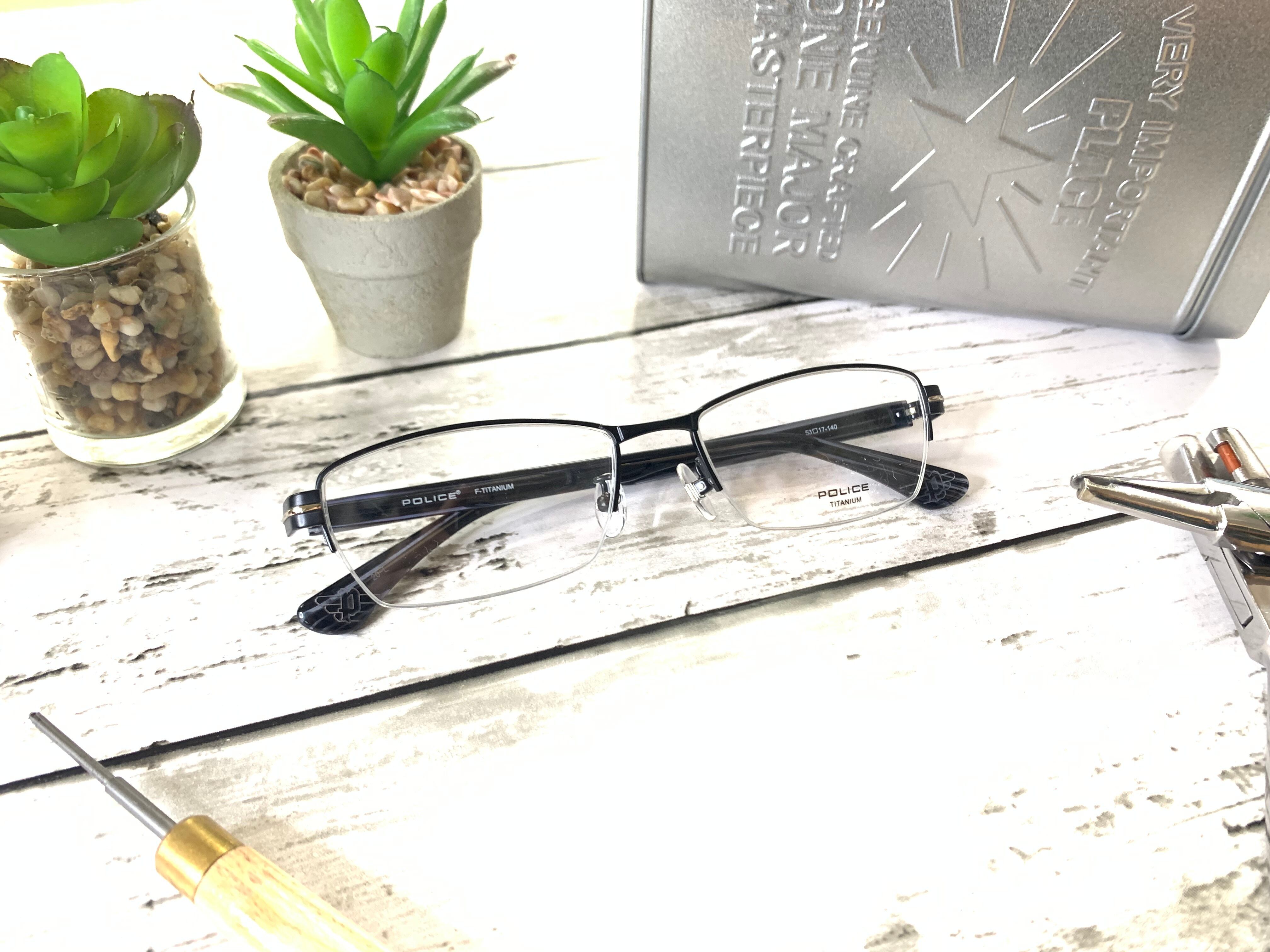 ブラックカラーのフレームにゴールドカラーのアクセントが格好良いスクエアシェイプのナイロールフレーム。しっかりと角とラインのとられたフロントは凛々しさを感じるデザインになっていてクールな男性像を連想させる作品となっています。セル生地のテンプルにはゴールドのラインにPOLICEの文字が刻まれ、カジュアル・フォーマルどちらにもマッチするお洒落なアイテムです。