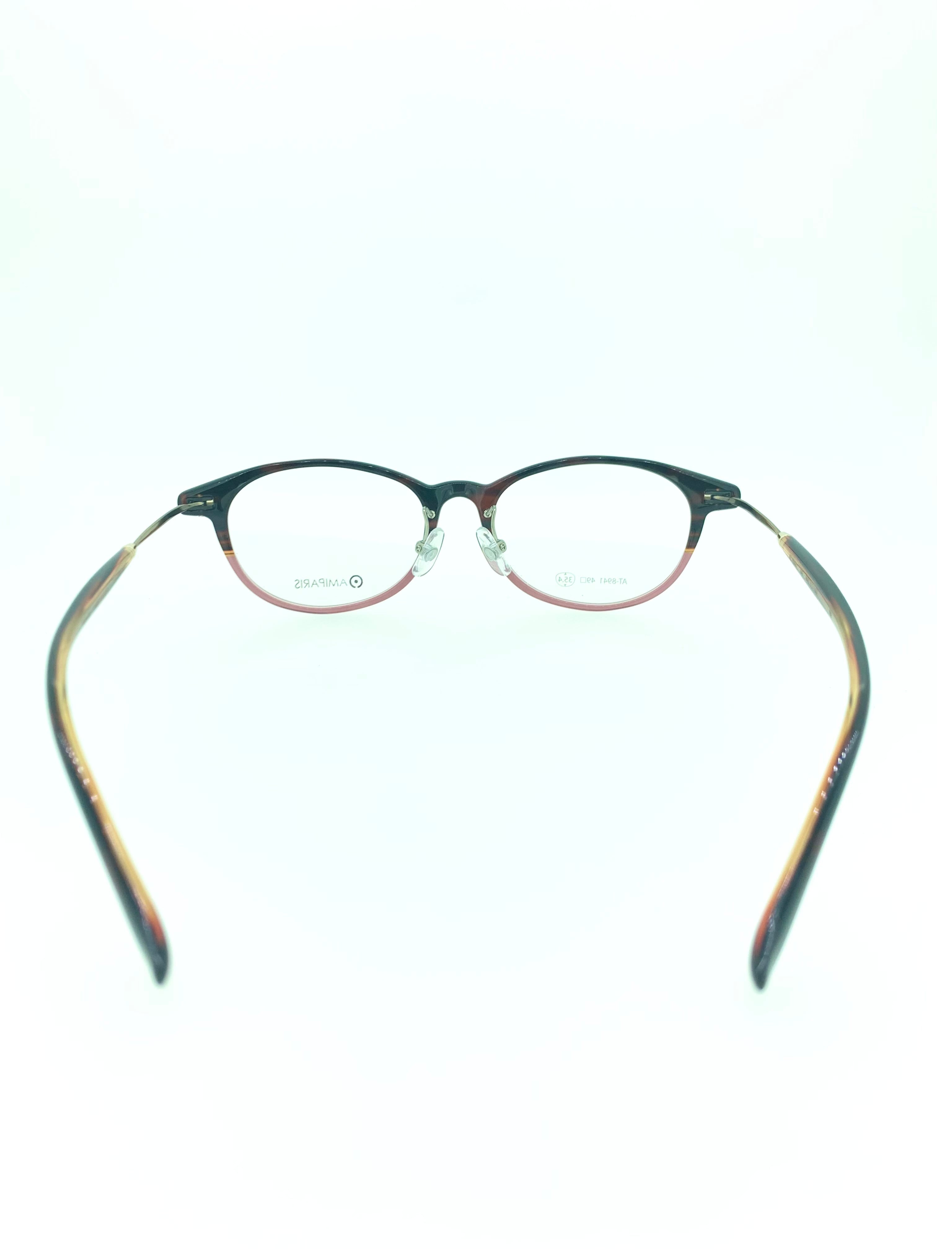 大地のような断層を連想させるブラウン系のササ柄デザインが綺麗なセルフレーム。優しく包容力を感じるテラコッタカラーの上部リムから深みがありどっしりとしたブラウンのグラデーションに目を奪われます。テンプルは丸みを帯びたデザインになっていて、高級感とクラシカルな雰囲気を演出しています。