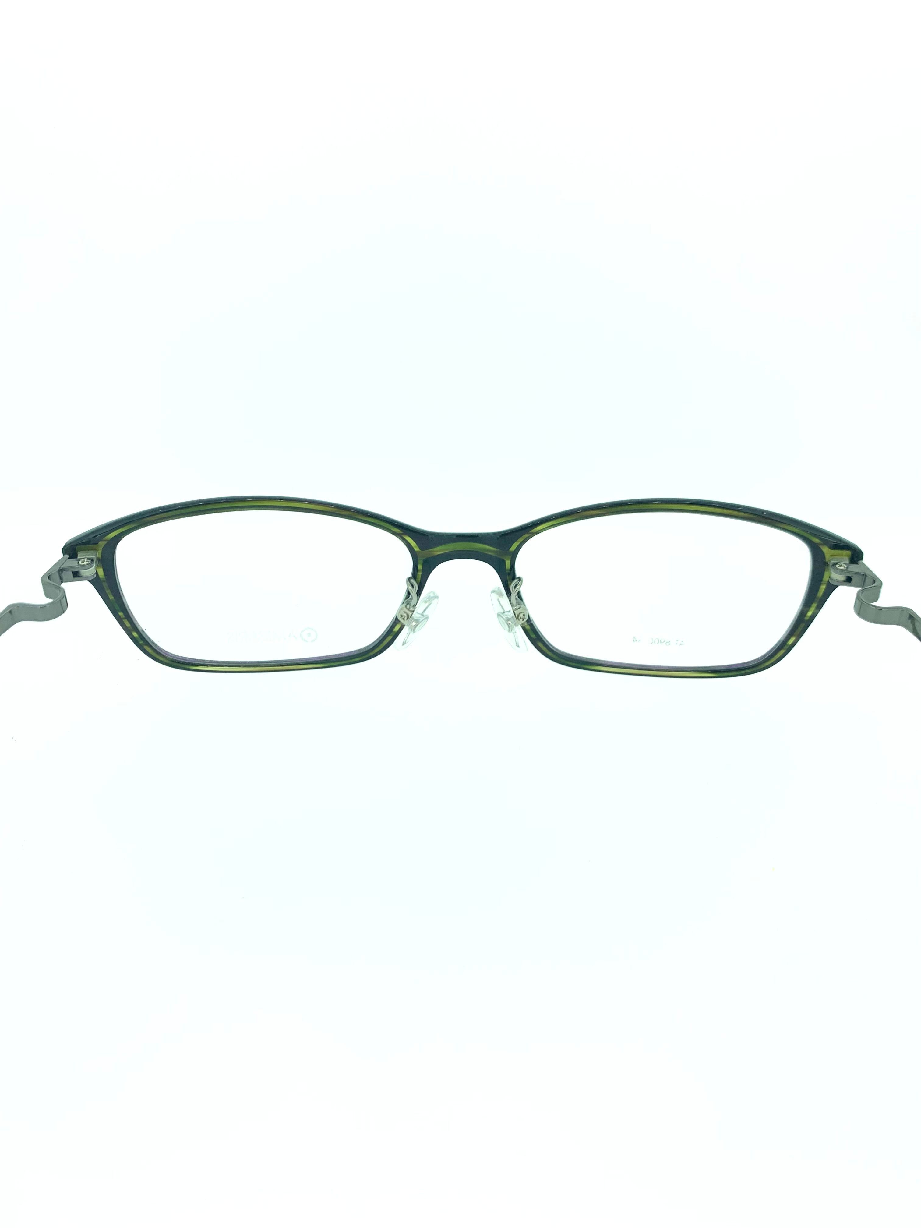 緩やかな曲線を描くスクエアシェイプのフロントとステンレス風でマットな質感がクールなメタルのコンビネーションフレーム。テンプル部分はバネのようなしなやかさを生み出す特徴的なラインを描き、ほど良いフィット感としっかりとした耐久性を兼ね備えています。無骨で飾らない格好良さとシンプルで機能を活かした優秀な1本となっています。