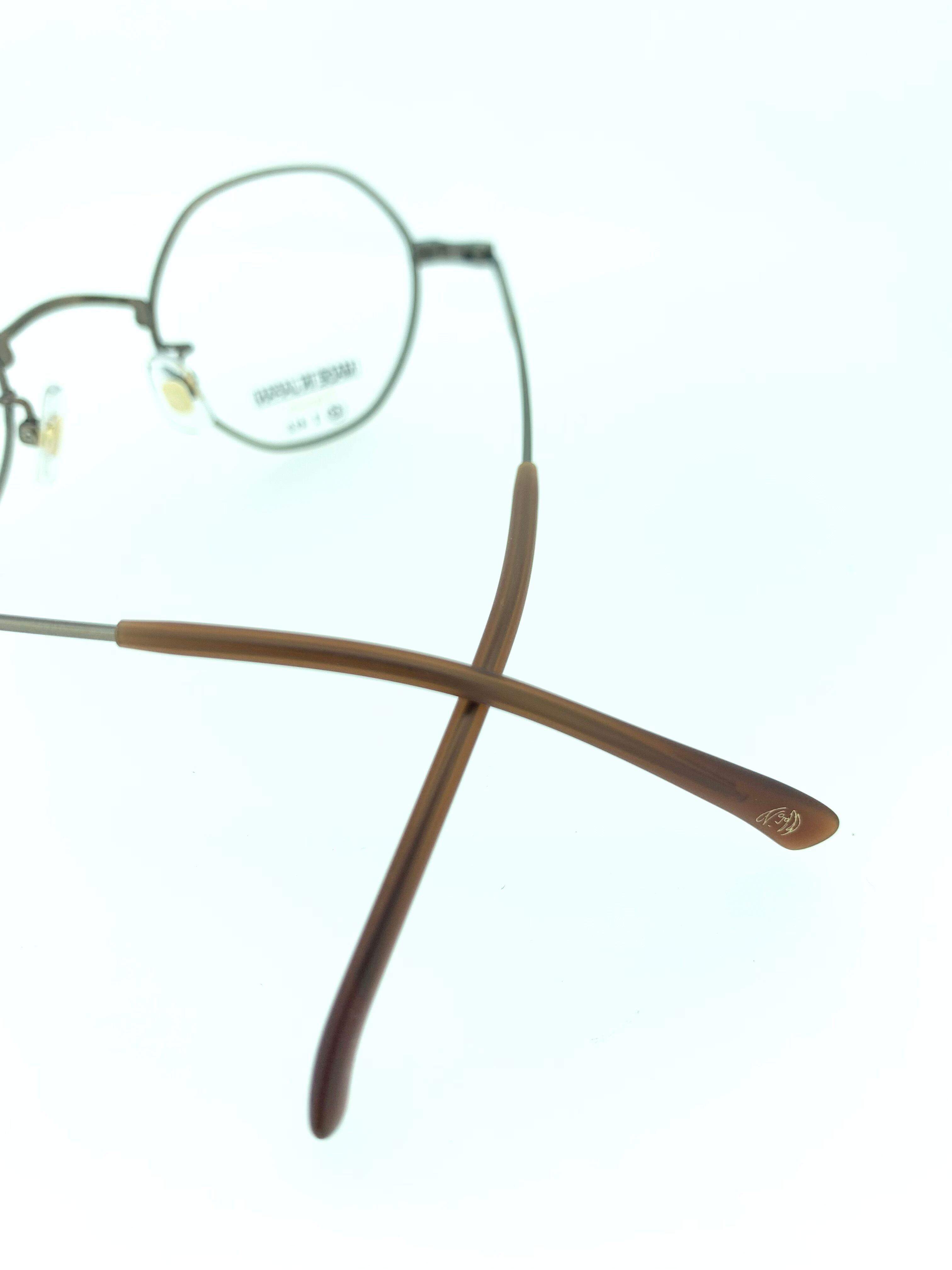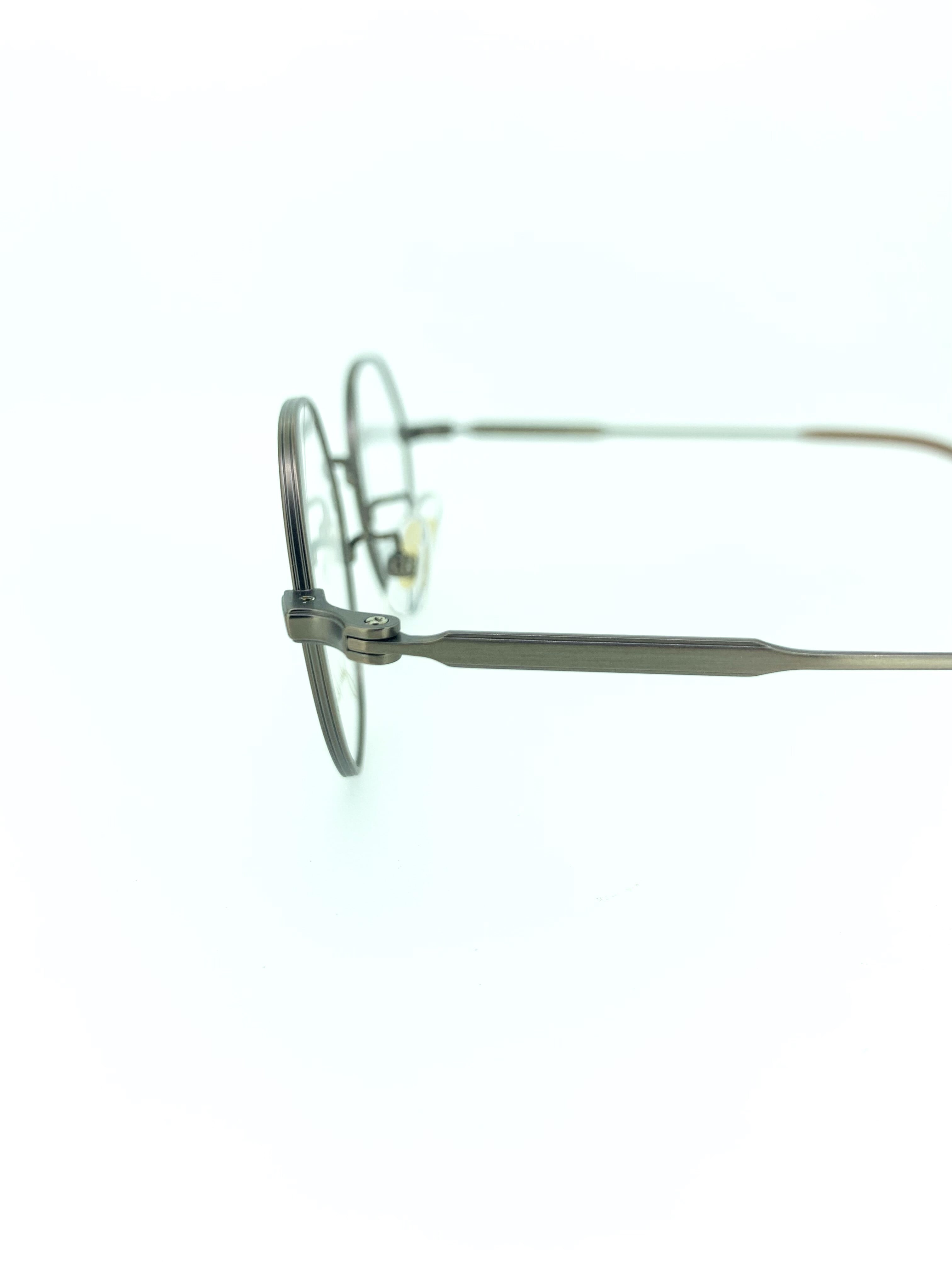 アンティーク調のシックなブラウンメタルのカラーリングとコンパクトなオクタゴンシェイプがお洒落なメタルフレーム。70年代のようなメタルの色味に多角的なシェイプデザインがお互いの魅力を引き立てる秀逸なデザインとなっています。シンプルだがカラーリングとバランスのとれたシルエットで魅せる味わい深い作品です。