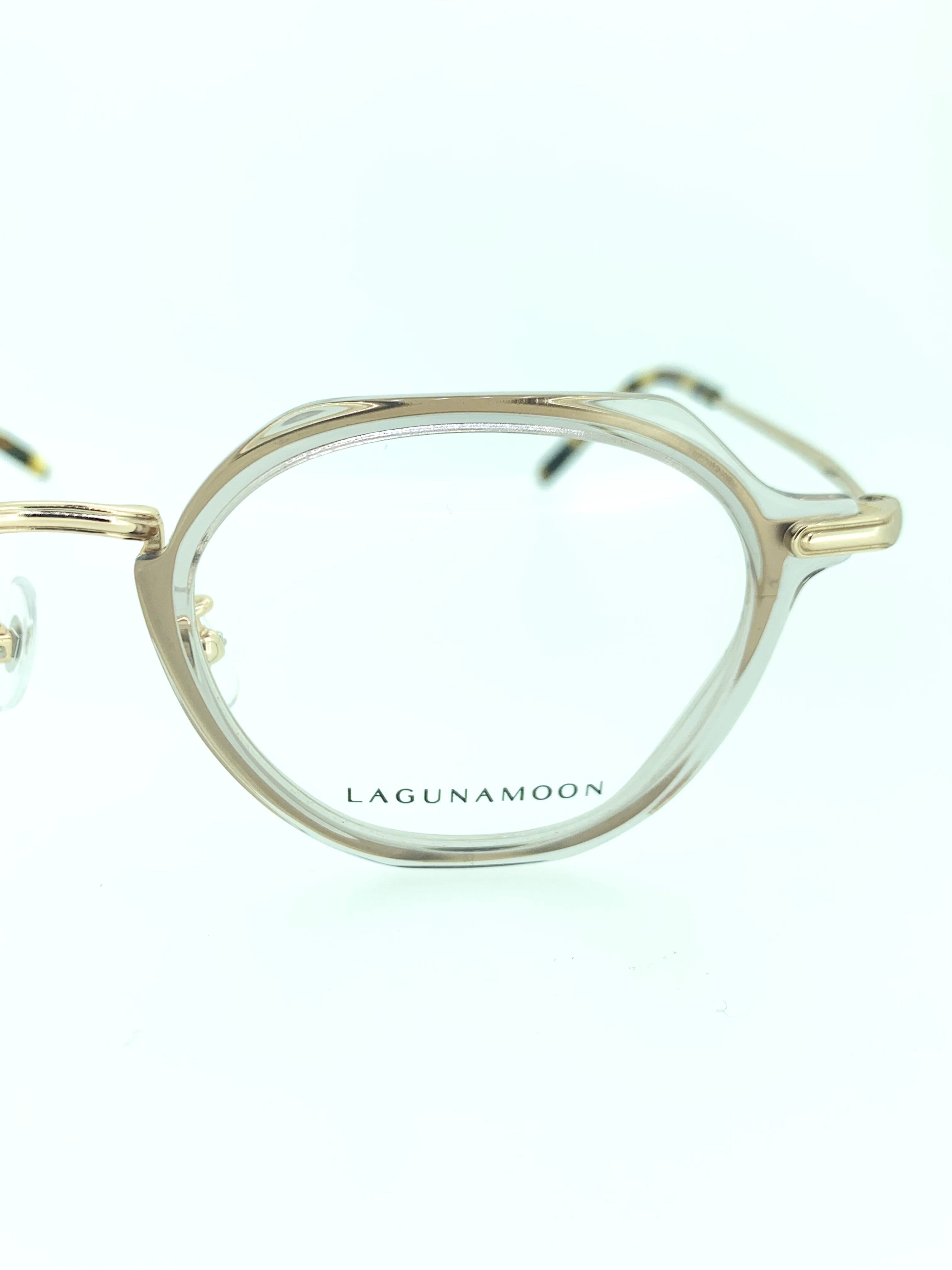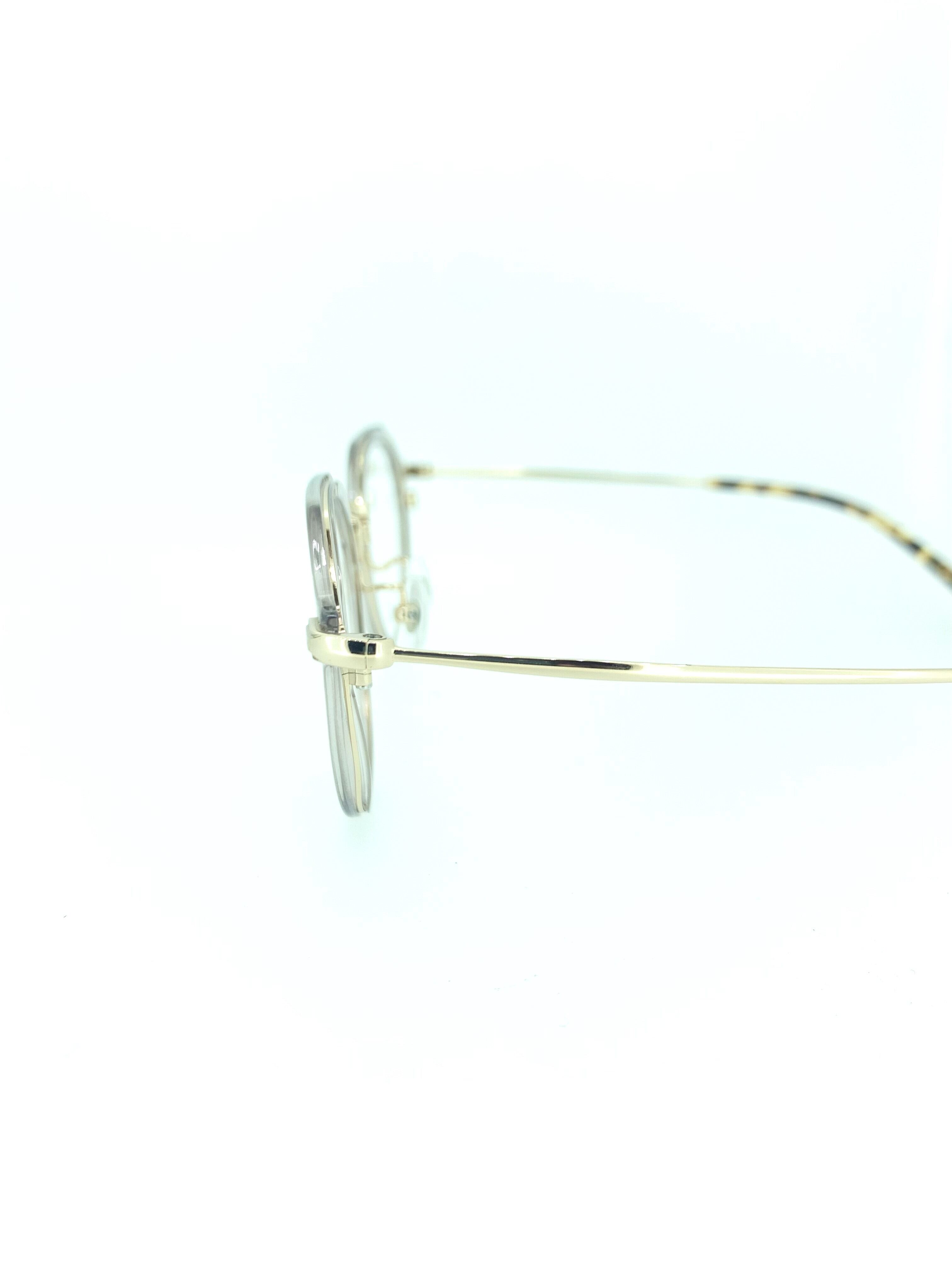 ラウンドシェイプのメタル地にクラウンパントシェイプでクリアグレーのセルワッパデザインが個性的な作品。クリアセルを採用することで透け感が生み出す立体的で奥行きのあるデザインが強調されたお洒落な雰囲気になっています。先セル(部分)はフロントと合わせたイエローベースのブラウンデミで鮮やかで魅力的です。