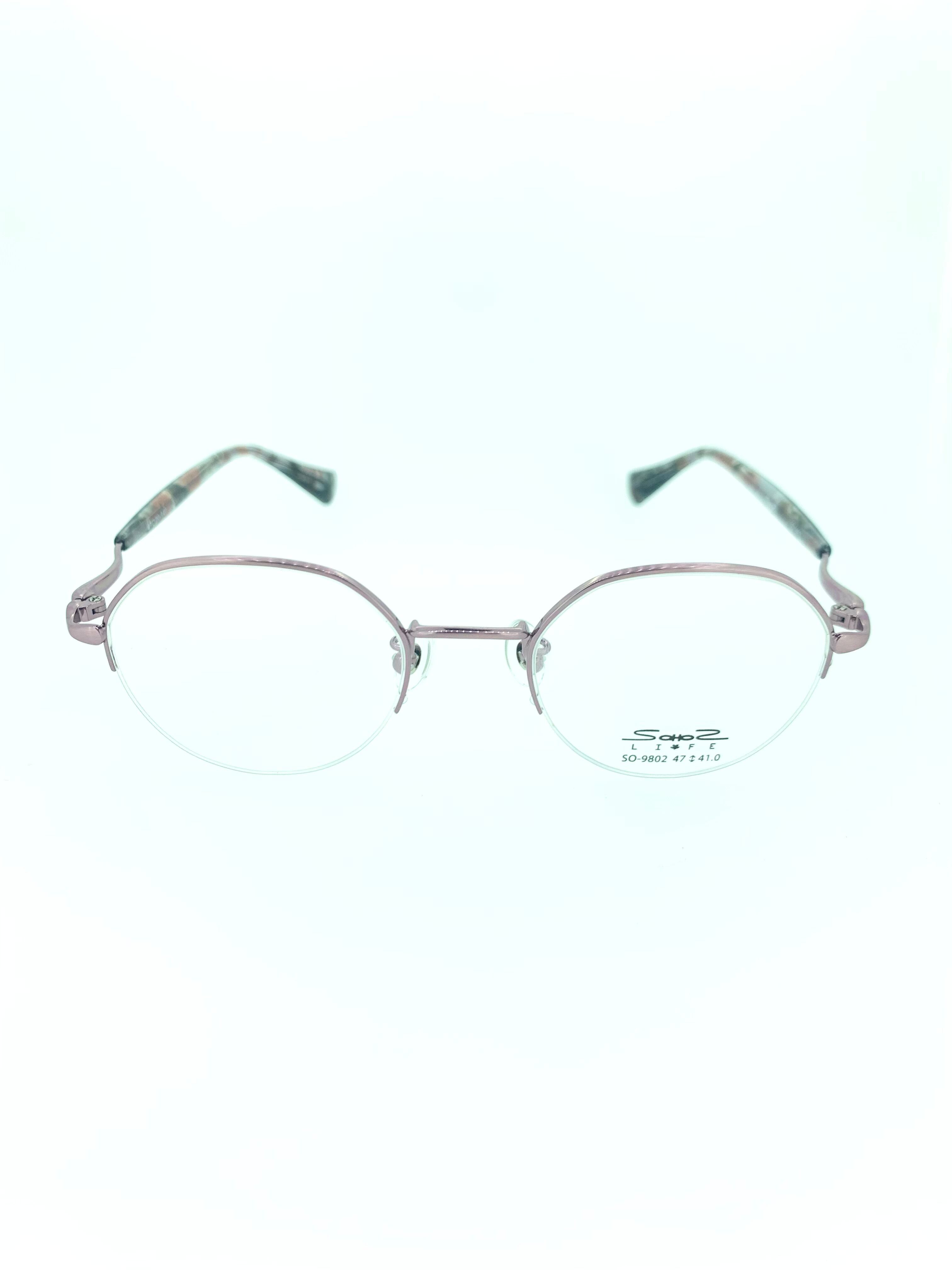 人気上昇中のクラウンパントシェイプにナイロールフレームを合わせた作品。クラウンパントの個性的なシェイプデザインを活かしつつ、ナイロールを採用することで主張し過ぎない絶妙なバランスを取っています。カラーリングは明るいピンクメタルで、上品でありながら大人っぽい雰囲気を印象づけてくれます。