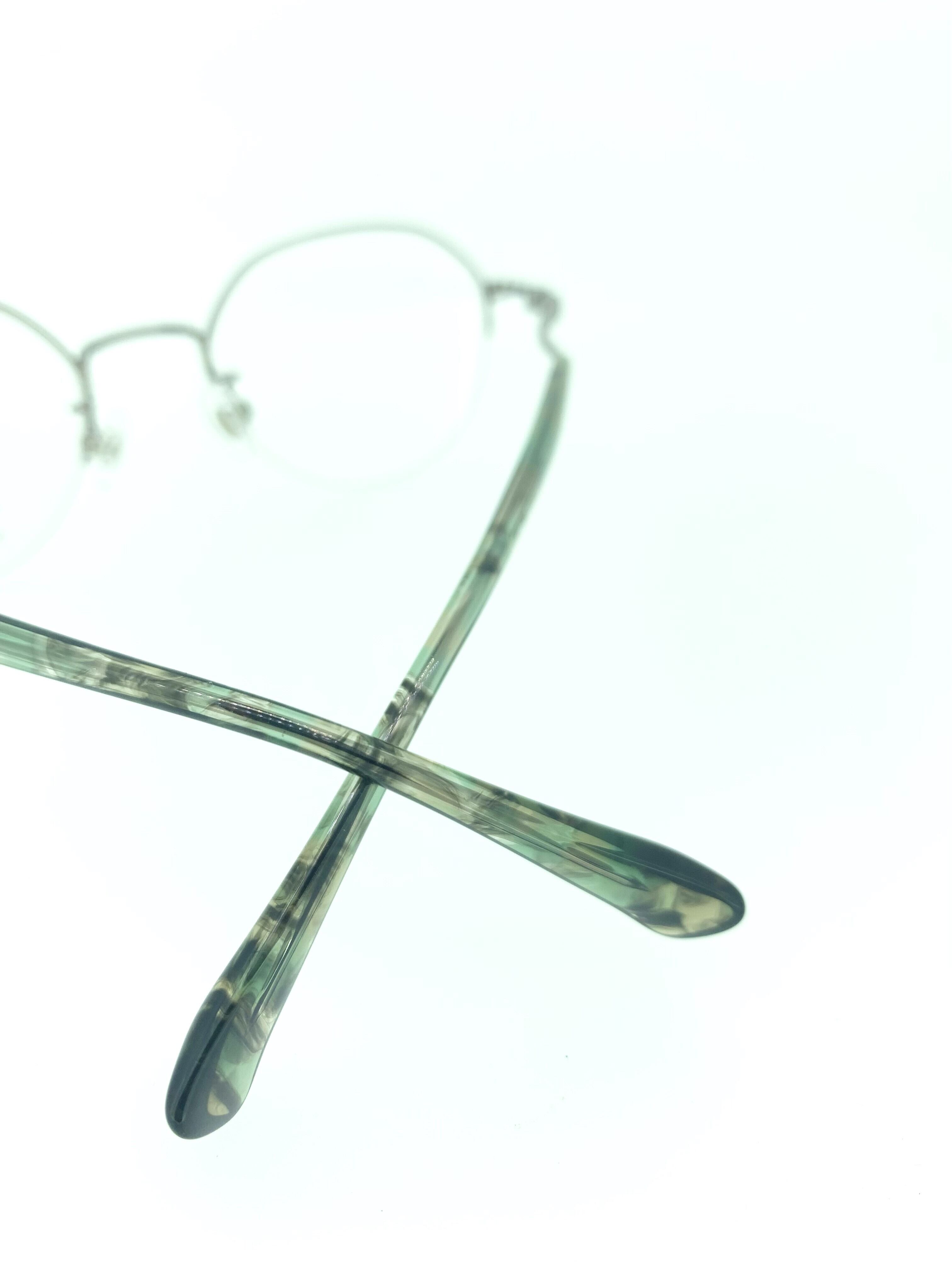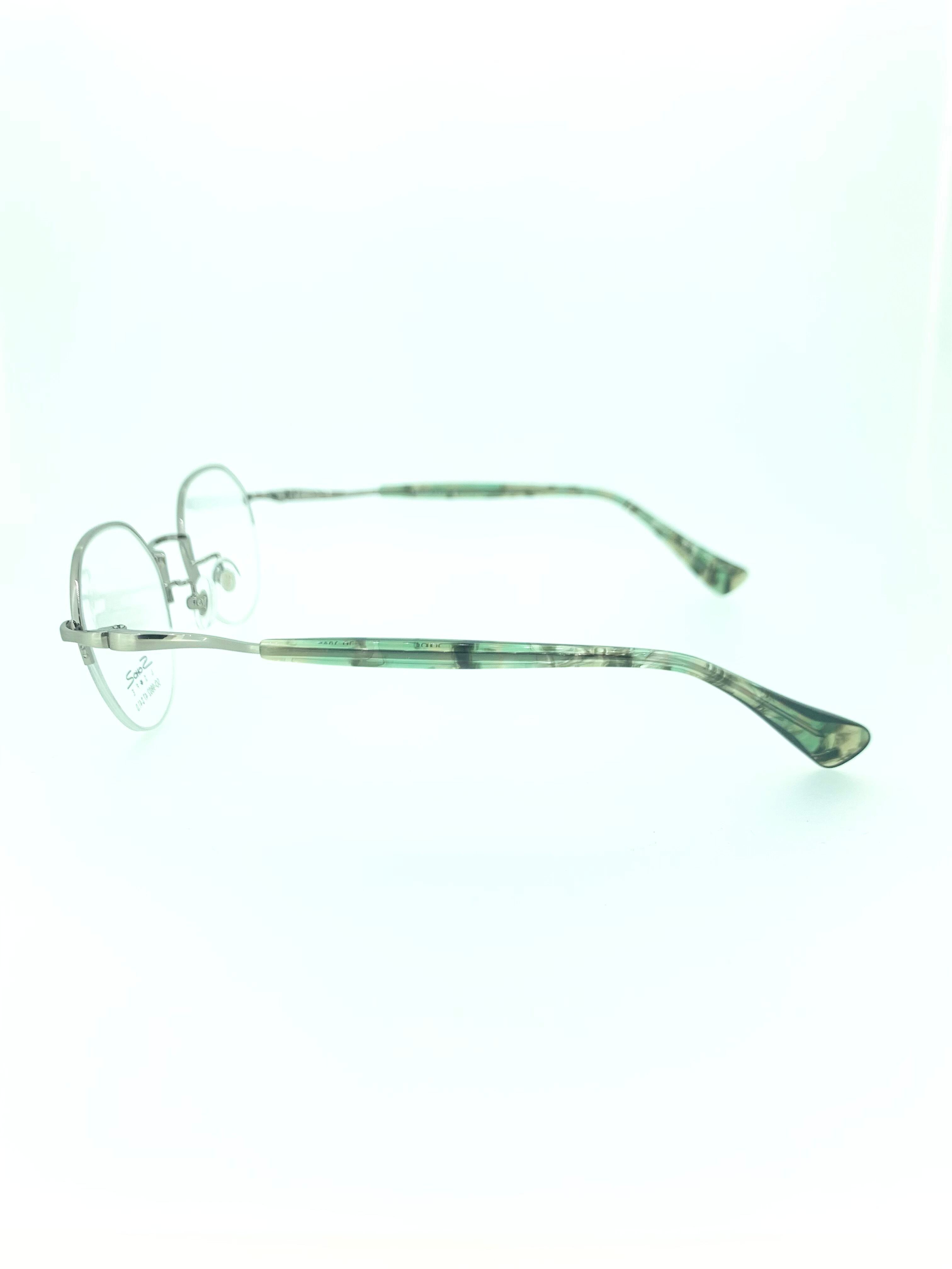 人気上昇中のクラウンパントシェイプにナイロールフレームを合わせた作品。クラウンパントの個性的なシェイプデザインを活かしつつ、ナイロールを採用することで主張し過ぎない絶妙なバランスを取っています。カラーリングはシルバーメタルにグレーマーブルで、上品でありながら幻想的な雰囲気を印象づけてくれます。