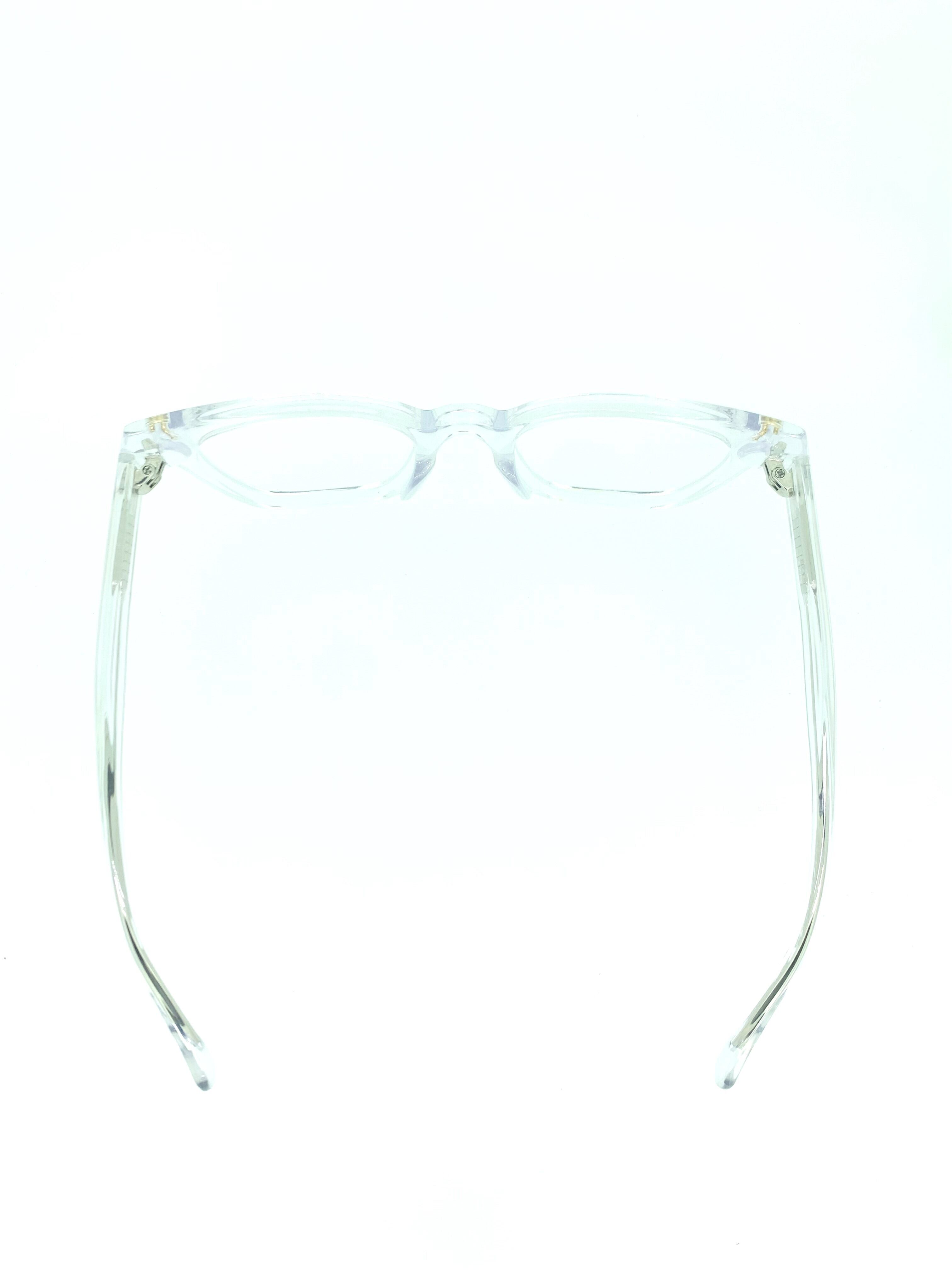 オールドスタイルなウェリントンシェイプのセルフレームにインパクト強めなスケルトンカラーを合わせたお洒落な作品。天地も少し広めでセル生地もほど良い厚みがあるため、カラーレンズを合わせてサングラスとしても映えるデザインになっています。テンプルには爽やかなシルバーメタルを採用し、シンプルに綺麗めスタイルでまとめられています。