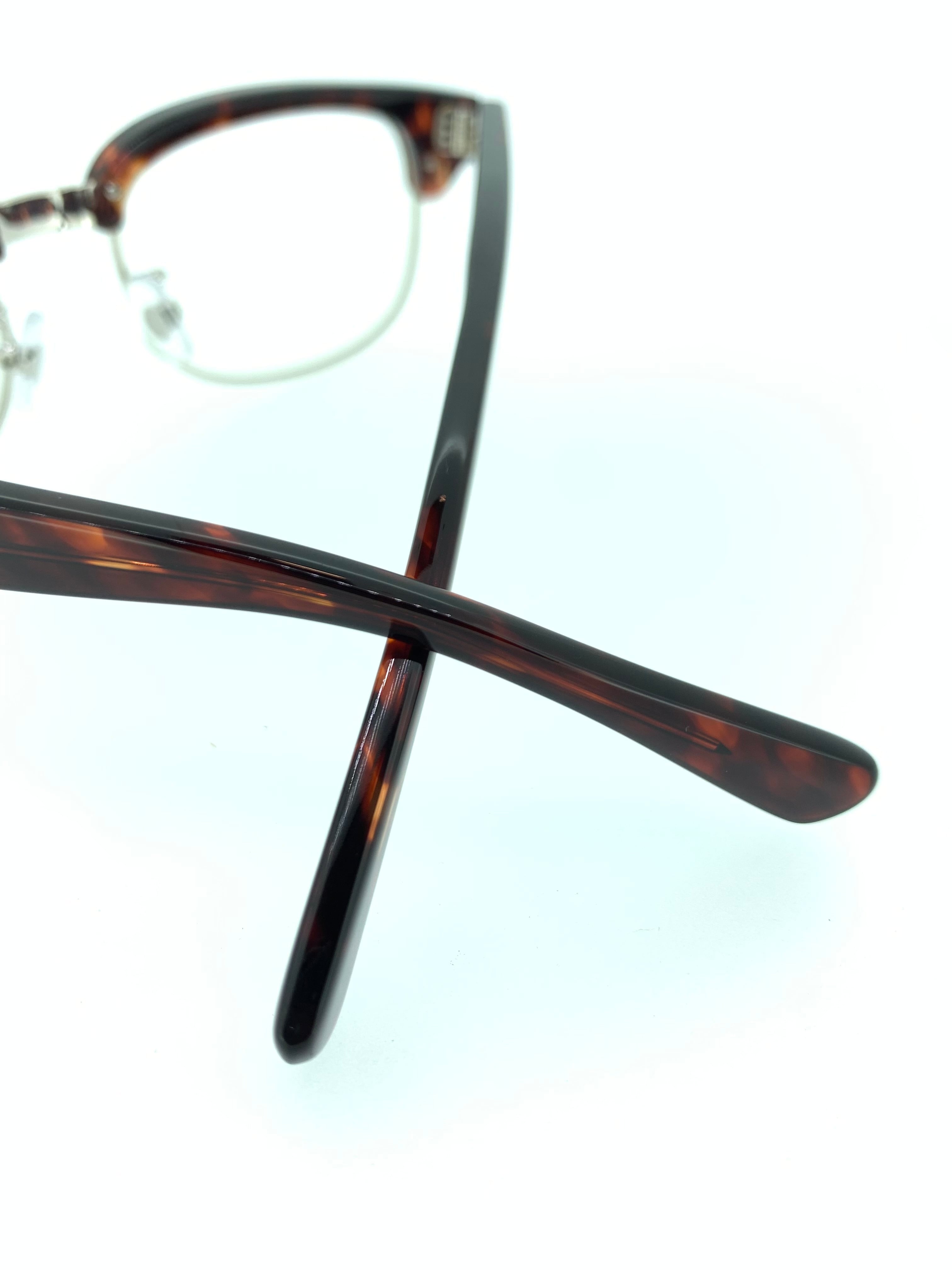 今流行りのウェリントン×ボストンの良いとこどりなボスリントンシェイプのブローフレーム。ウェリントンのようなスタイリッシュさにボストンのような柔らかさが絶妙なバランスで共存する優秀なフレームです。そこに個性を加えるセルブローが、クラシカルな雰囲気を放つお洒落な仕上がりになっています。ブラウンデミのレトロ感とシルバーメタルの清廉さがスタイルを引き締めてくれる優秀な作品です。