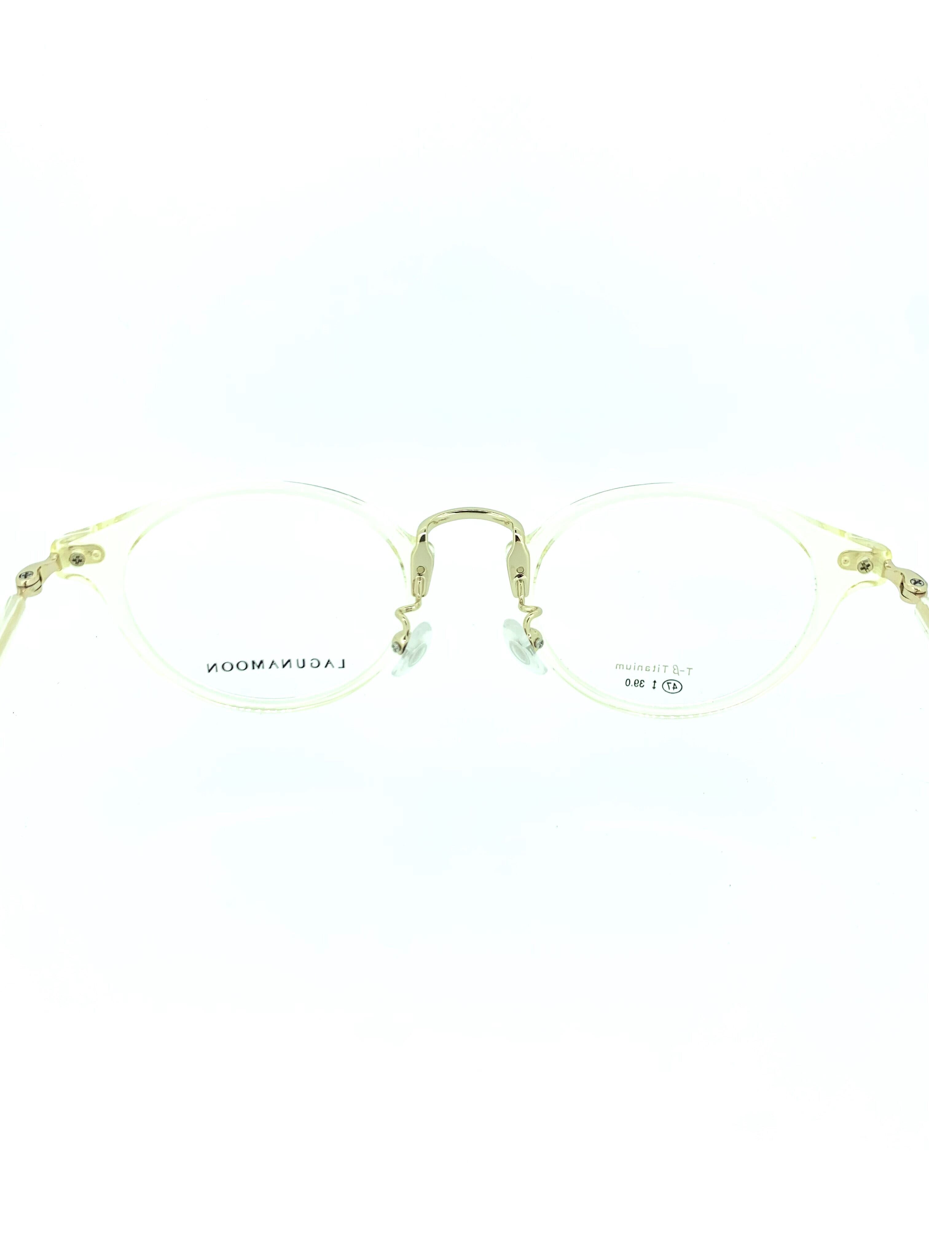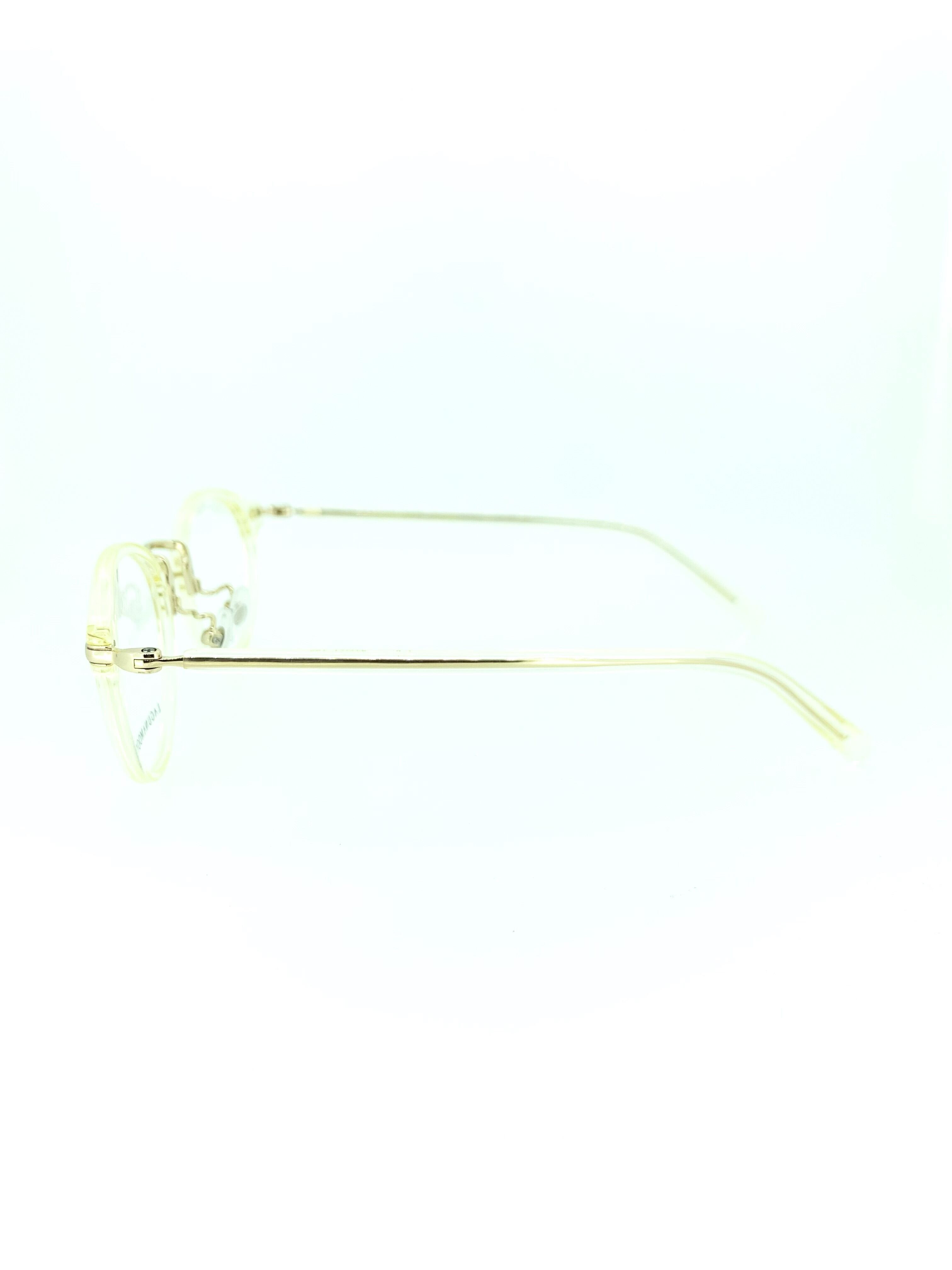 レトロな雰囲気を放つキハクカラーのクリアセルに上品なゴールドメタルの組み合わせが綺麗なコンビネーションフレーム。柔らかく暖かな印象のキハクカラーにボストンシェイプのフロントが相性抜群です。下地のメタルフレームが透けるクリア生地は一癖がまたお洒落なデザインですね。全体的に色味を統一しているのでナチュラルなイメージで、どんなシーンにもマッチする大人の1本です。