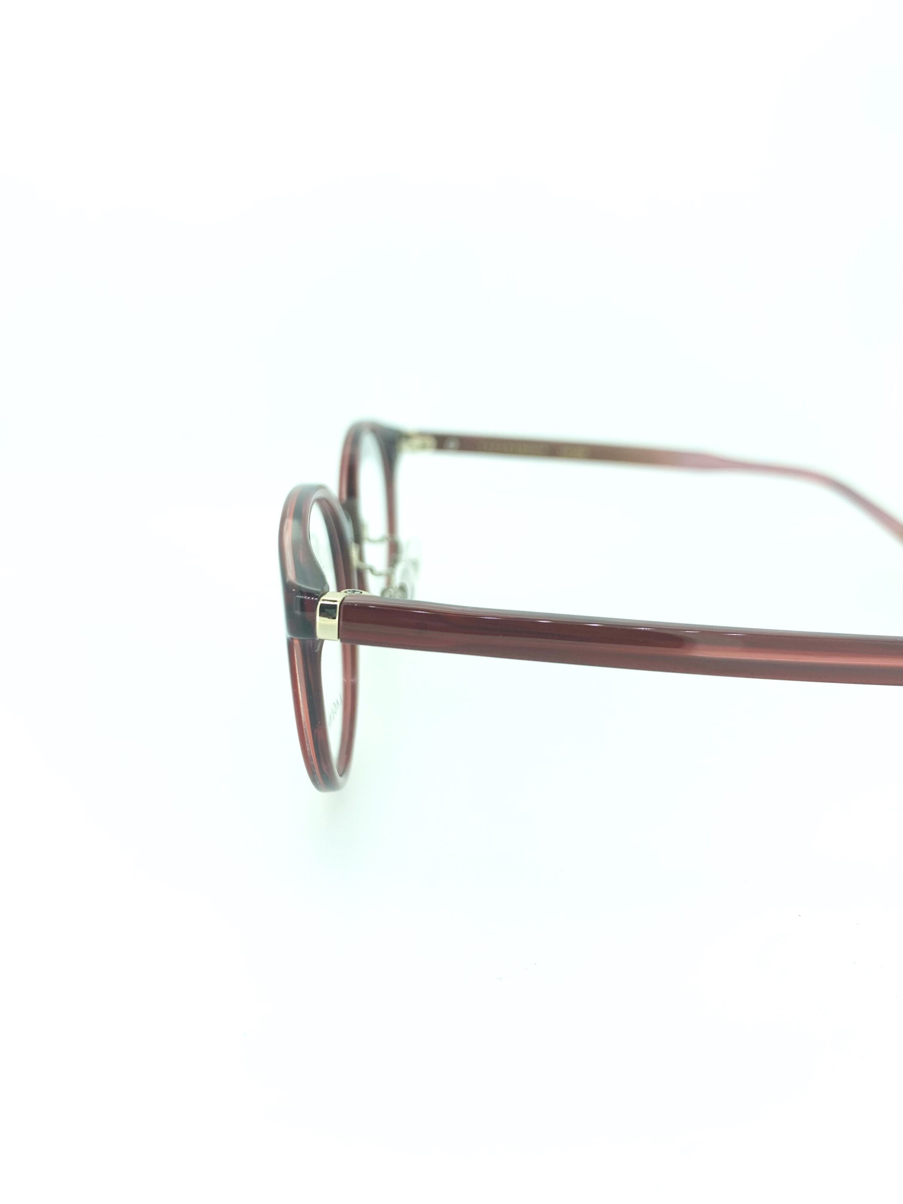 ほぼラウンドのような丸みの強いボストンシェイプは柔らかい印象で、鮮やかなカージナルレッドの大人っぽいカラーリングとバランスが取れたセルフレーム。全身を同色で揃えたシンプルなデザインは、無駄を削ぎ落したスタイリッシュな雰囲気を纏います。テンプルにポイントで輝くゴールドメタルが上品さを引き立てるお洒落な仕上がりです。