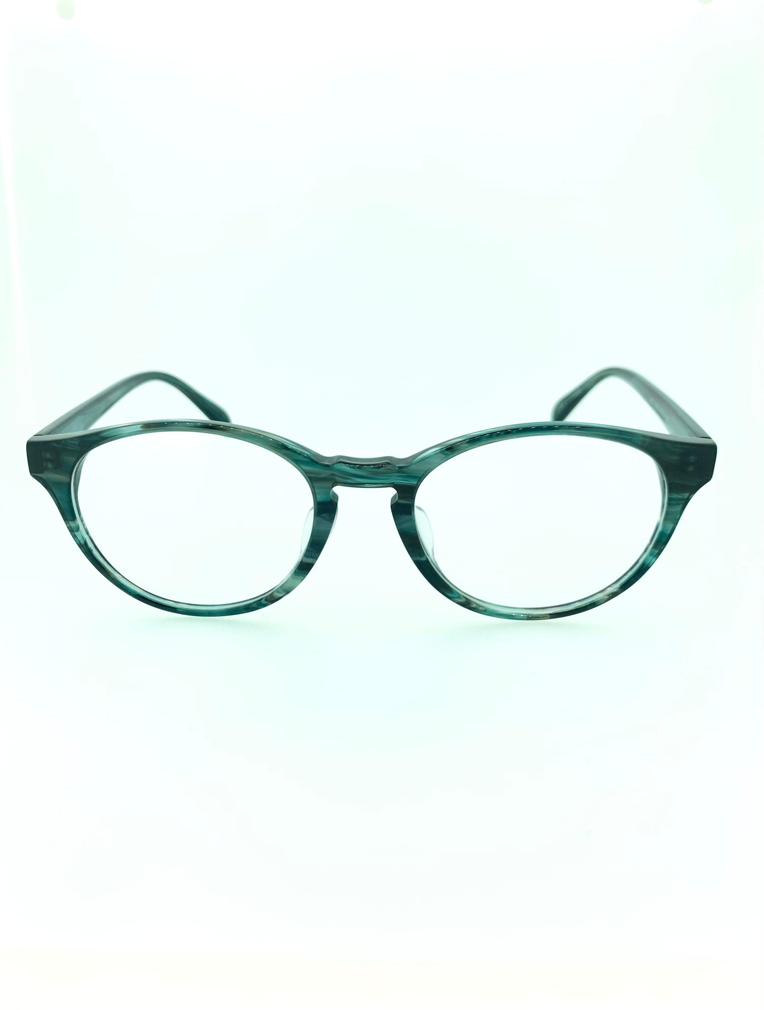 くすみがかったハンターグリーンのササ柄が独特な世界観を醸し出すセルフレーム。クラシカルなキーホールブリッジと渋いカラーリングがマッチしたレトロスタイルが魅力的です。知的で柔らかなボストンシェイプにすることで世界観を崩さないシルエットに仕上がっています。シンプルにまとめられていて、どんなシーンやスタイルにもかけられる作品です。