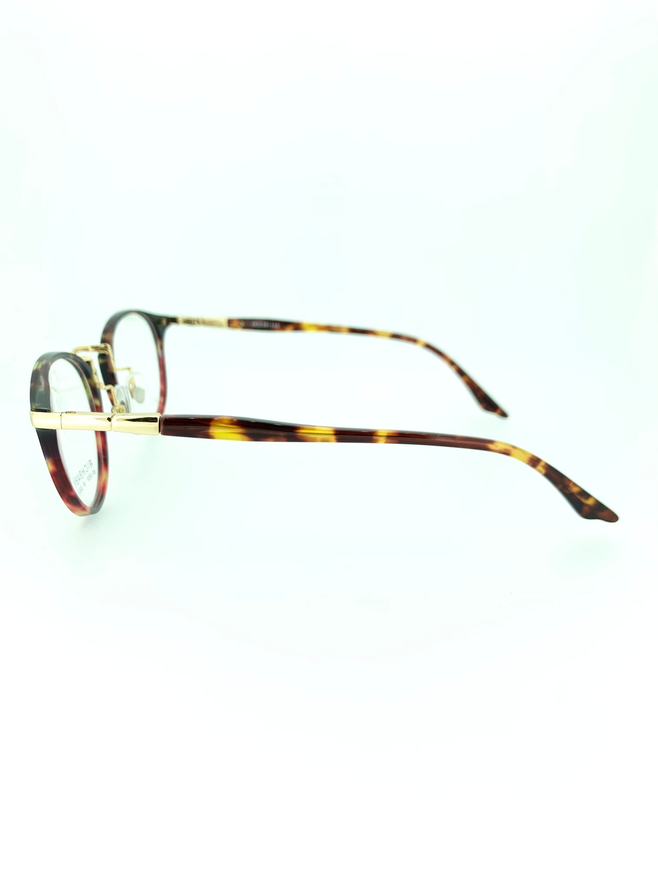 オレンジとイエローを織り交ぜた暖色系のデミ柄が特徴的なコンビネーションフレーム。オータムカラーで落ち着きのある大人な雰囲気と細部のゴールドメタルが上品にまとめ上げます。フロントは上下でグラデーションのようになっていて、見ていてもかけても美しい仕上がりにうっとりしてしまうようなお洒落な作品です。