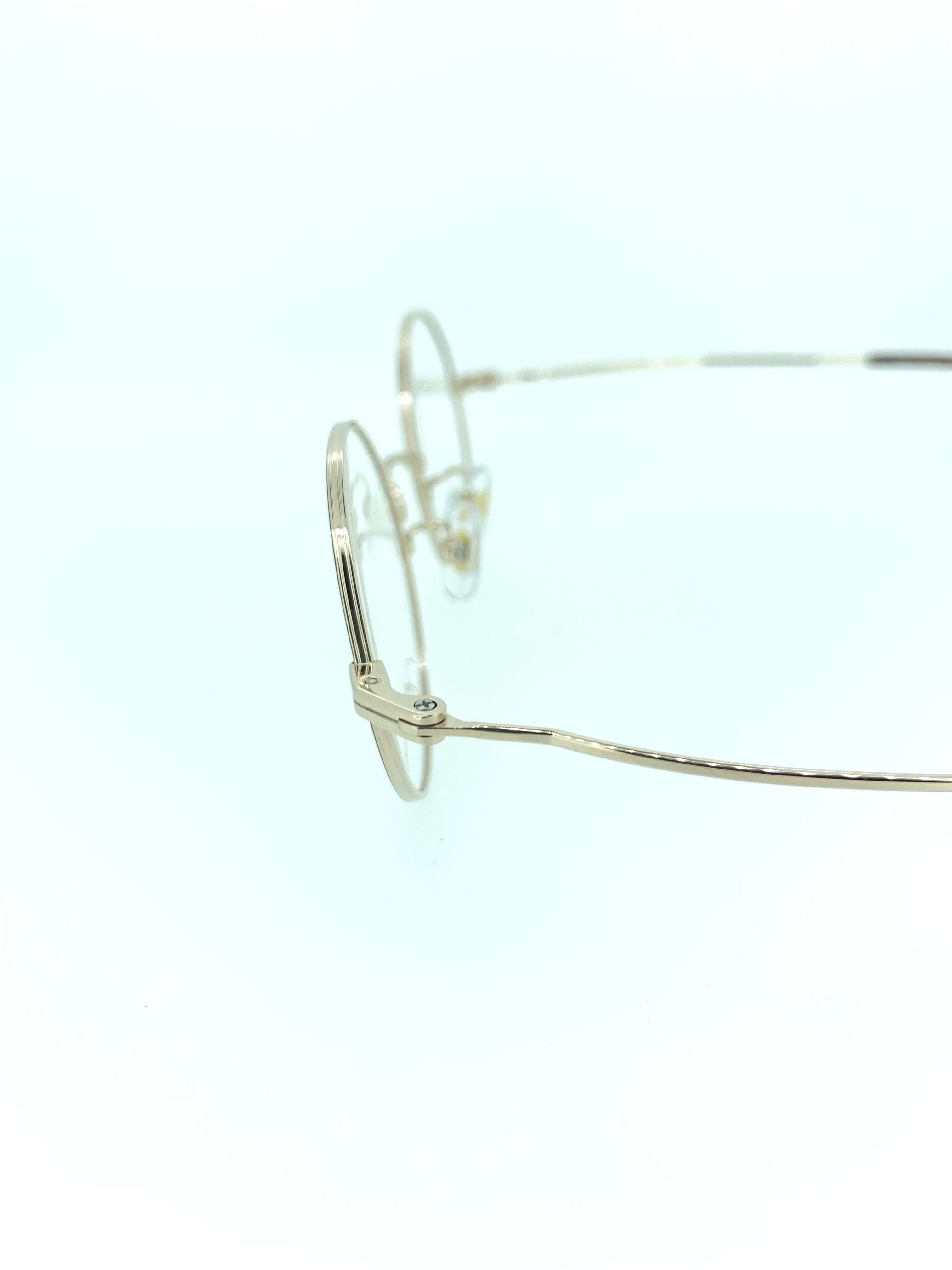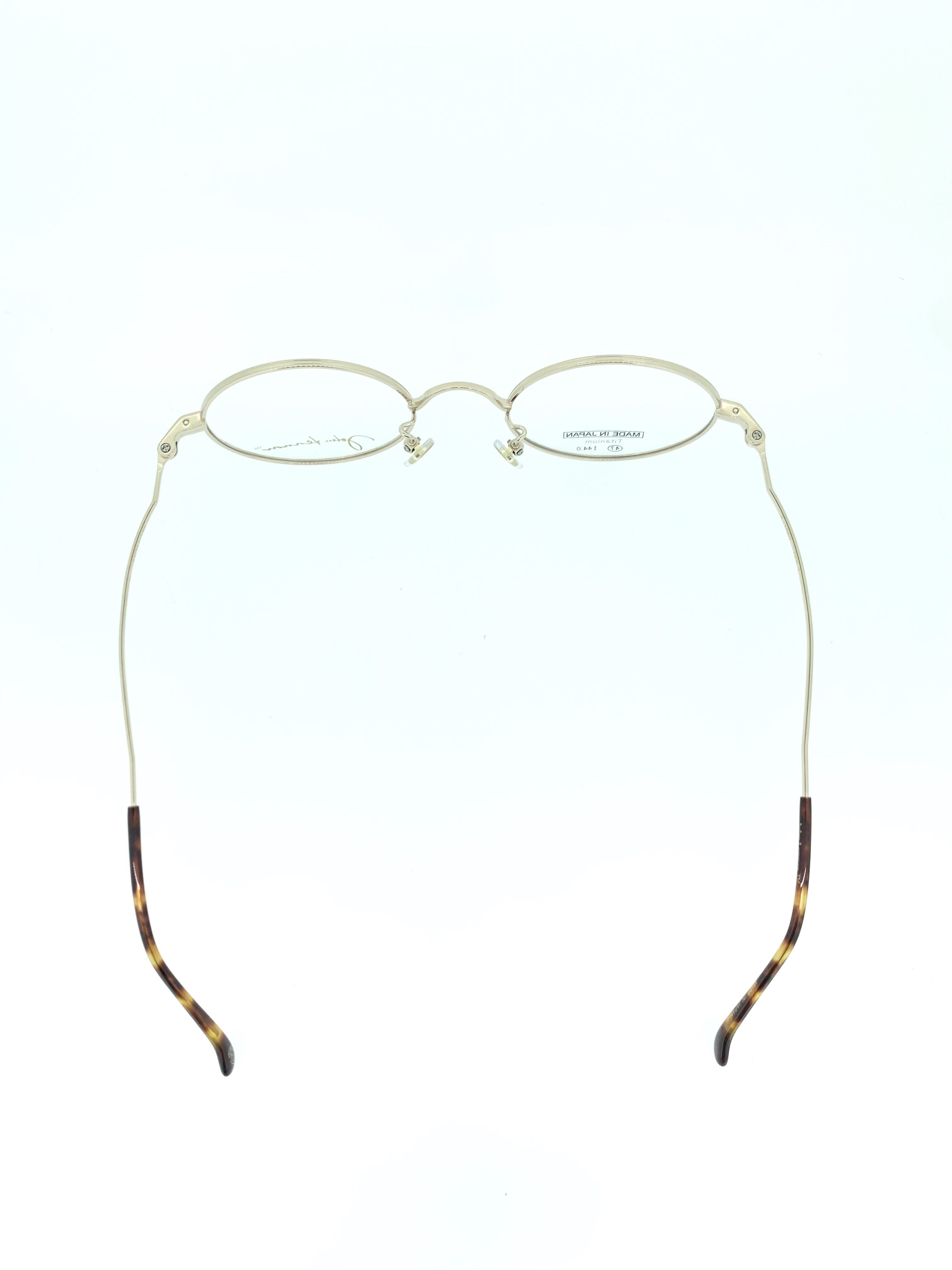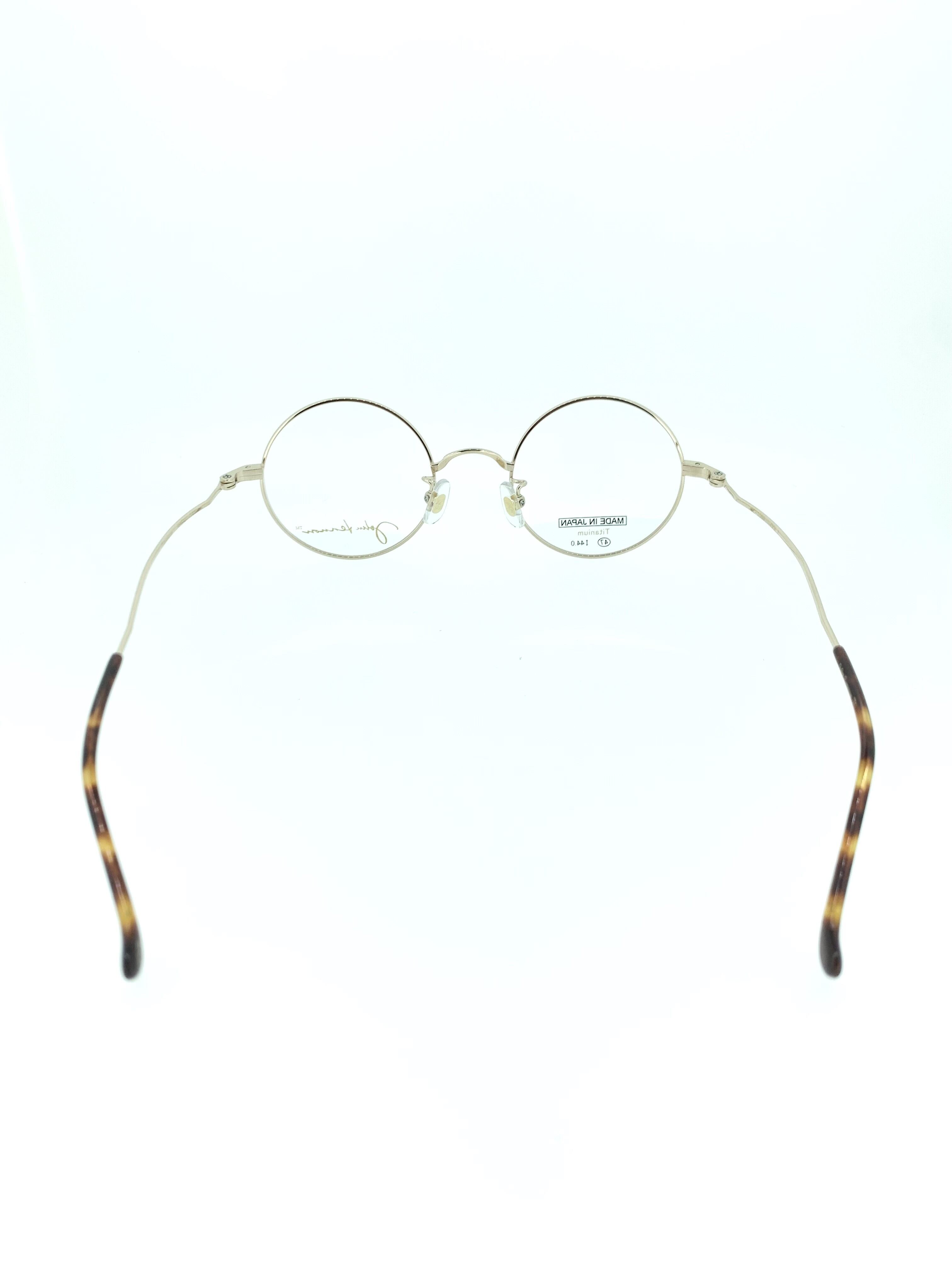 フロントリムと先セル(耳当て)の鮮やかなオレンジデミが目を惹くラウンドシェイプのメタルフレーム。細身でクラシカルなメタルが生み出す繊細なシルエットは、シンプルなデザインだからこそ際立つ秀逸なデザインとなっています。テンプルの自然なラインは側頭部に締め付け感なくほど良くフィットします。