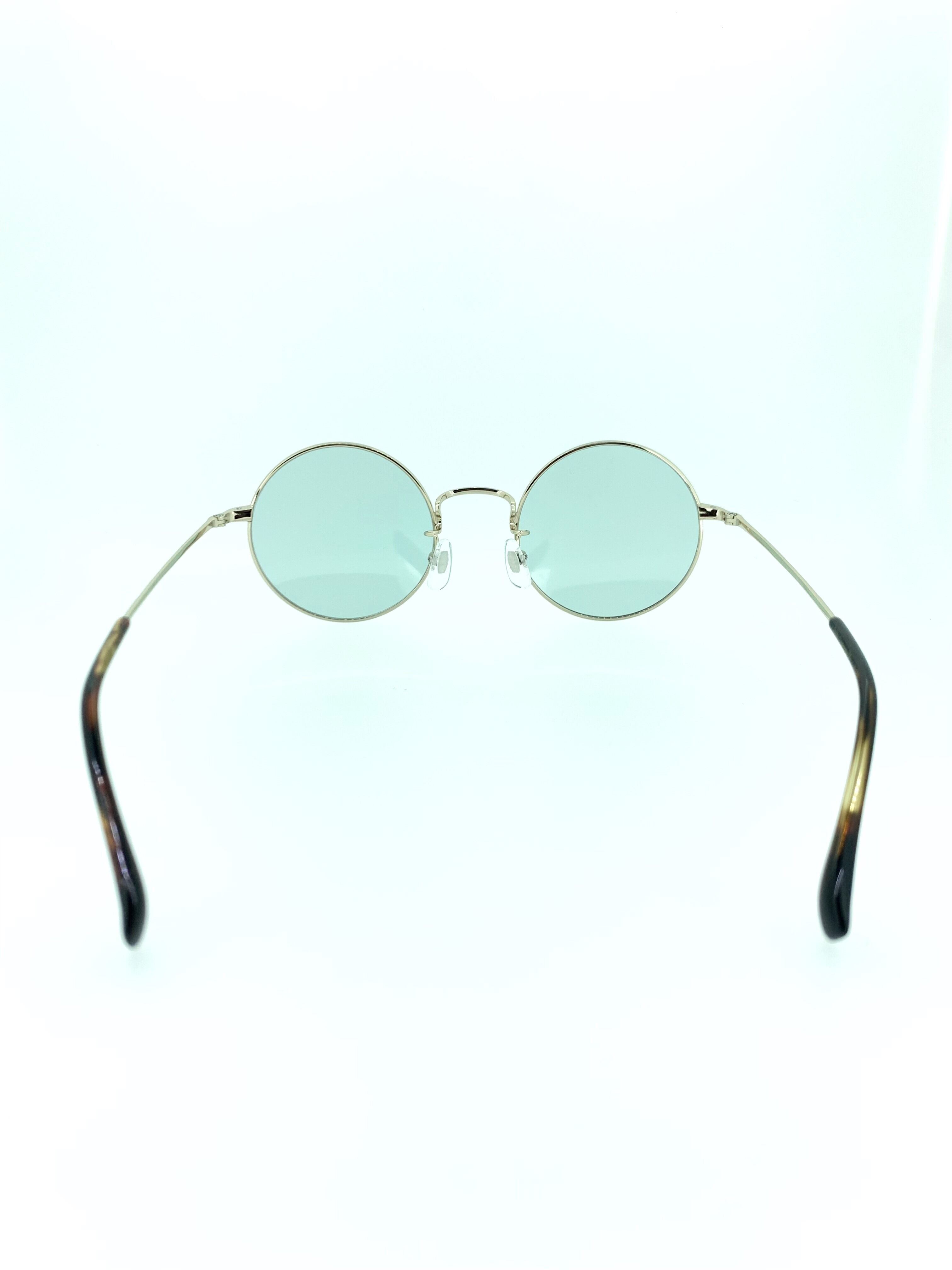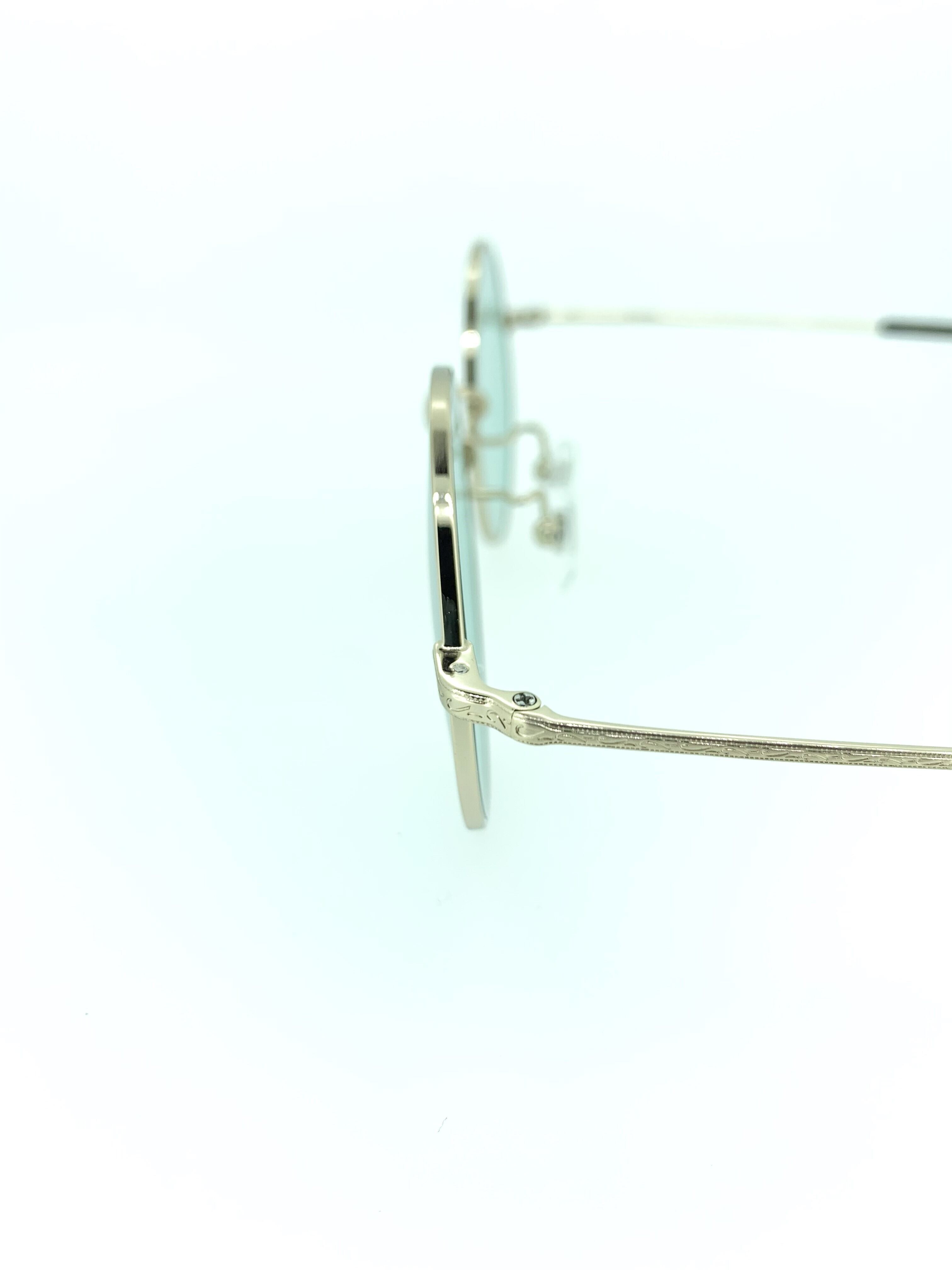 ジョン・レノンのブランドには少なめなレンズ幅が大きいタイプのラウンドシェイプのメタルフレームサングラス。存在感のあるフロントにコバルトグリーンの鮮やかな配色が刺さるお洒落な作品。ブリッジとテンプルには繊細な装飾が施され、高級感とアンティーク感を演出したオールドスタイルの格好良さのある1本です。