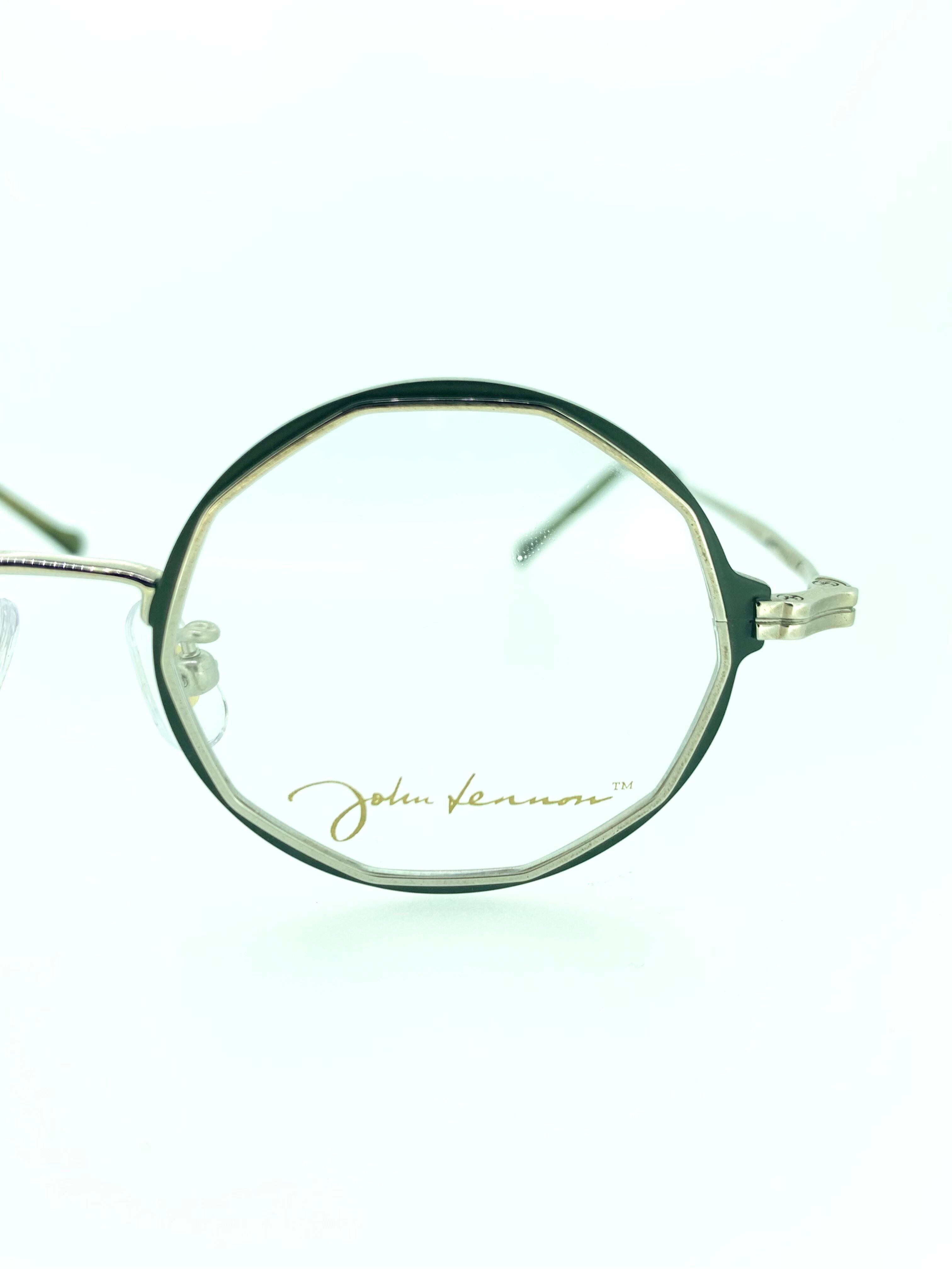 ジョン・レノン生誕80周年記念モデル。モスグリーン×ラウンドシェイプの外リムにシルバー×オクタゴンシェイプの内リムを重ねた個性的なメタルフレーム。メタル地を重ねていますが、薄いメタルなので横からの見た目もスッキリとした雰囲気になっています。先セル(耳当て)もモスグリーンで揃え、シルバーメタルに映えるヴィンテージ色が他にはないお洒落な作品です。