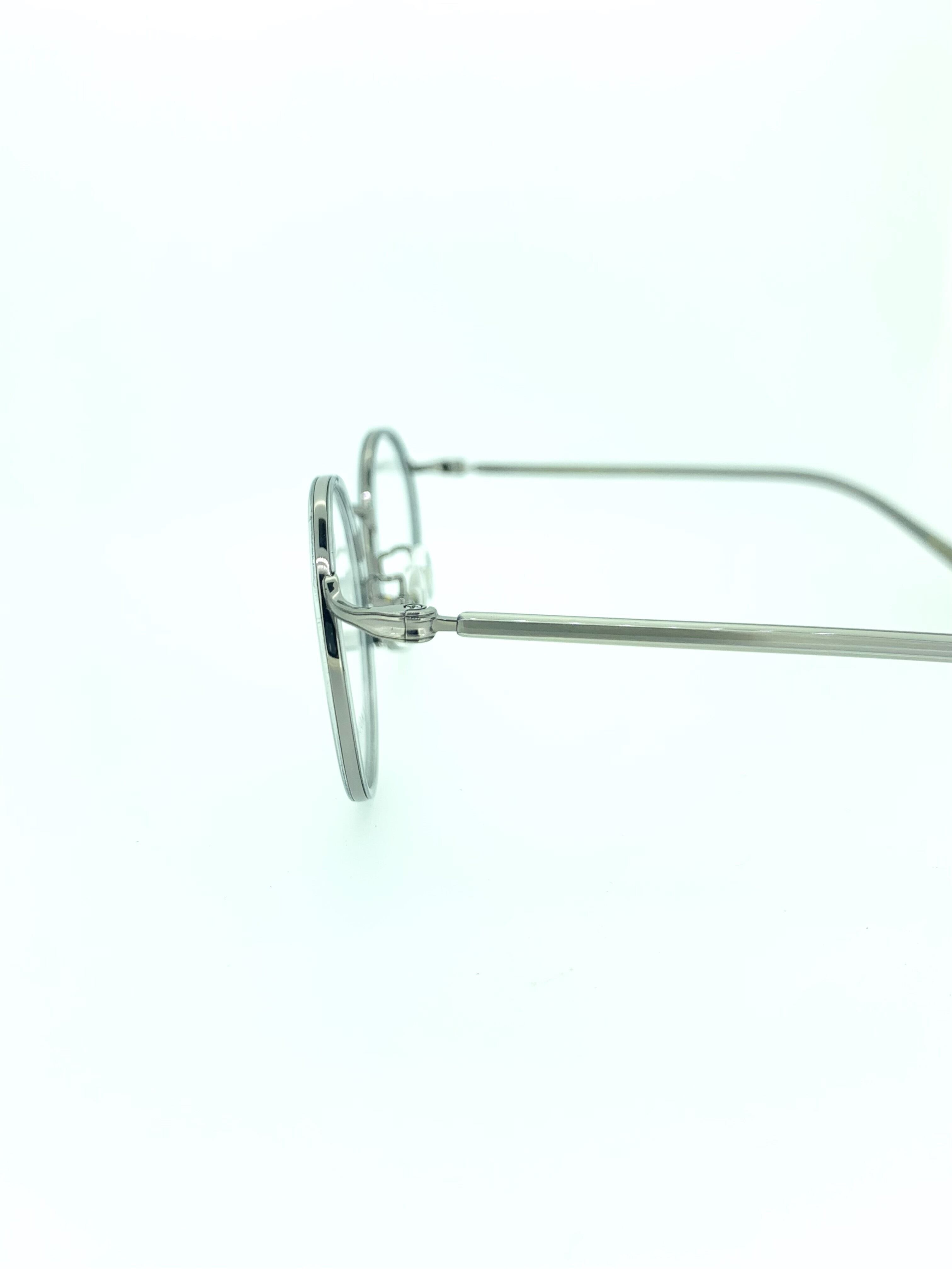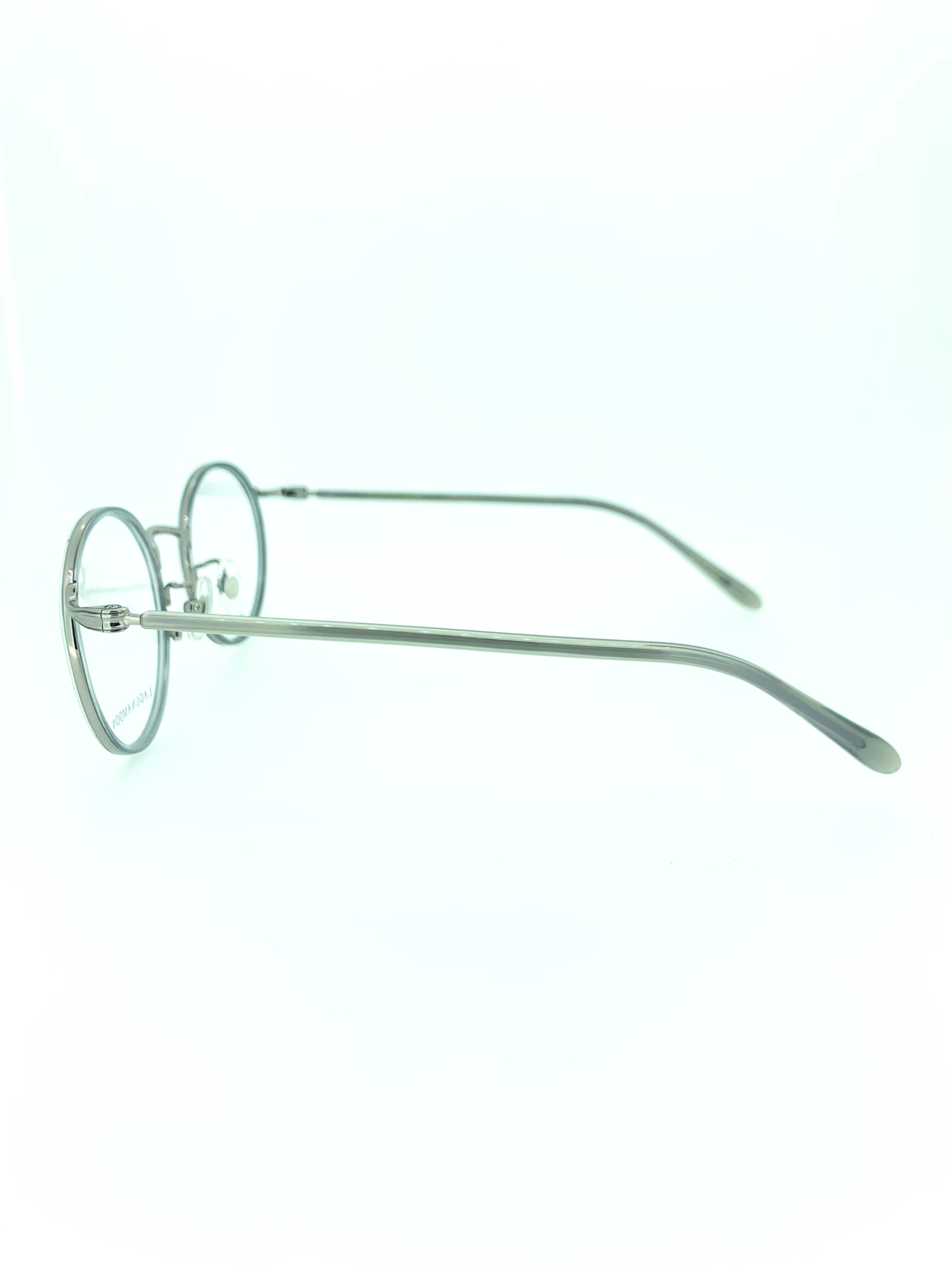 スタイリッシュなモーブグレーカラーのラウンドシェイプがお洒落なメタルフレーム。フロントはセルとメタルを組み合わせたセルワッパデザインで、クラシカルなのに現代的な雰囲気を醸し出しています。色味・フォルム・シェイプが綺麗にまとまったシンプルイズベストな1本となっています。