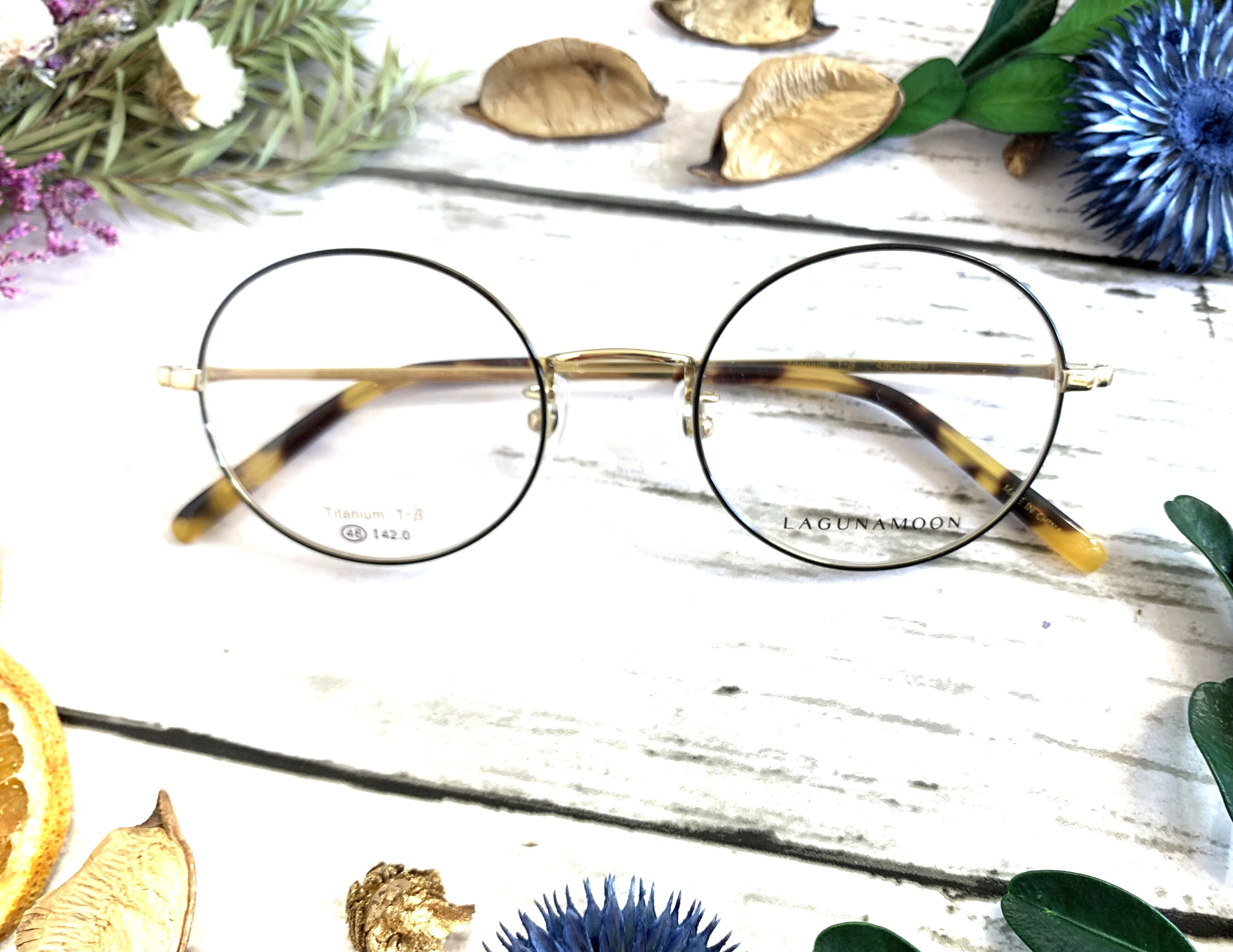 お洒落な雰囲気漂うラウンドシェイプにゴールド×デミ柄が相性抜群のメタルフレーム。フロントリムをブラックカラーでスタイリッシュに引き締め、ブリッジとテンプルを高級感のあるイエローゴールドで華やかにまとめた作品。先セル(耳当て)の濃淡ハッキリしたイエロー系デミ柄がカジュアルな印象に仕上げています。