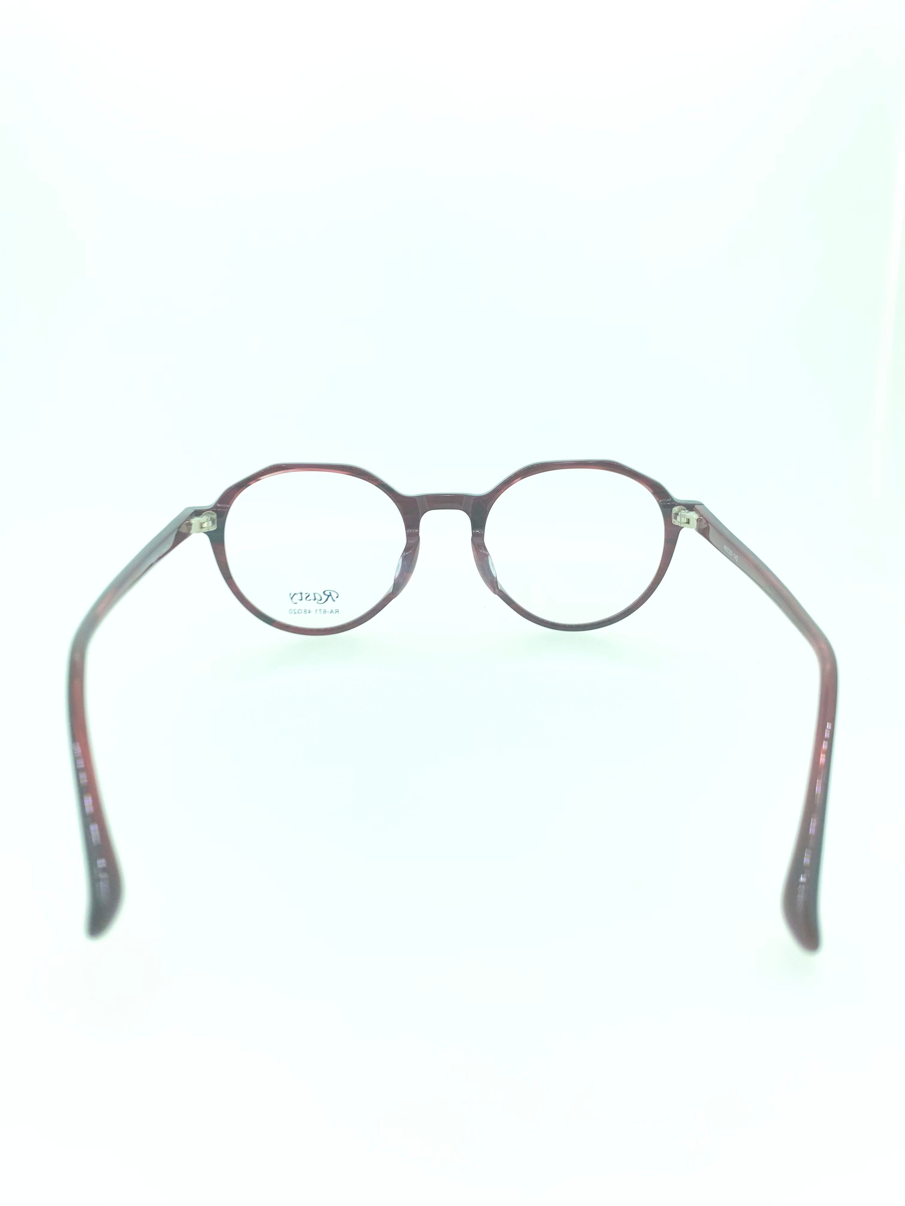 男女問わず人気のクラウンパントシェイプにシックなワインレッドを合わせたセルフレーム。セル生地は細身でもしっかりとした存在感があり、気軽に個性を発揮できる優秀なデザインです。余計なデザインを加えずシンプルにシルエットとカラーリングで魅せた1本となっています。暗い色味なので男性でもかけやすく大人カジュアルな作品です。