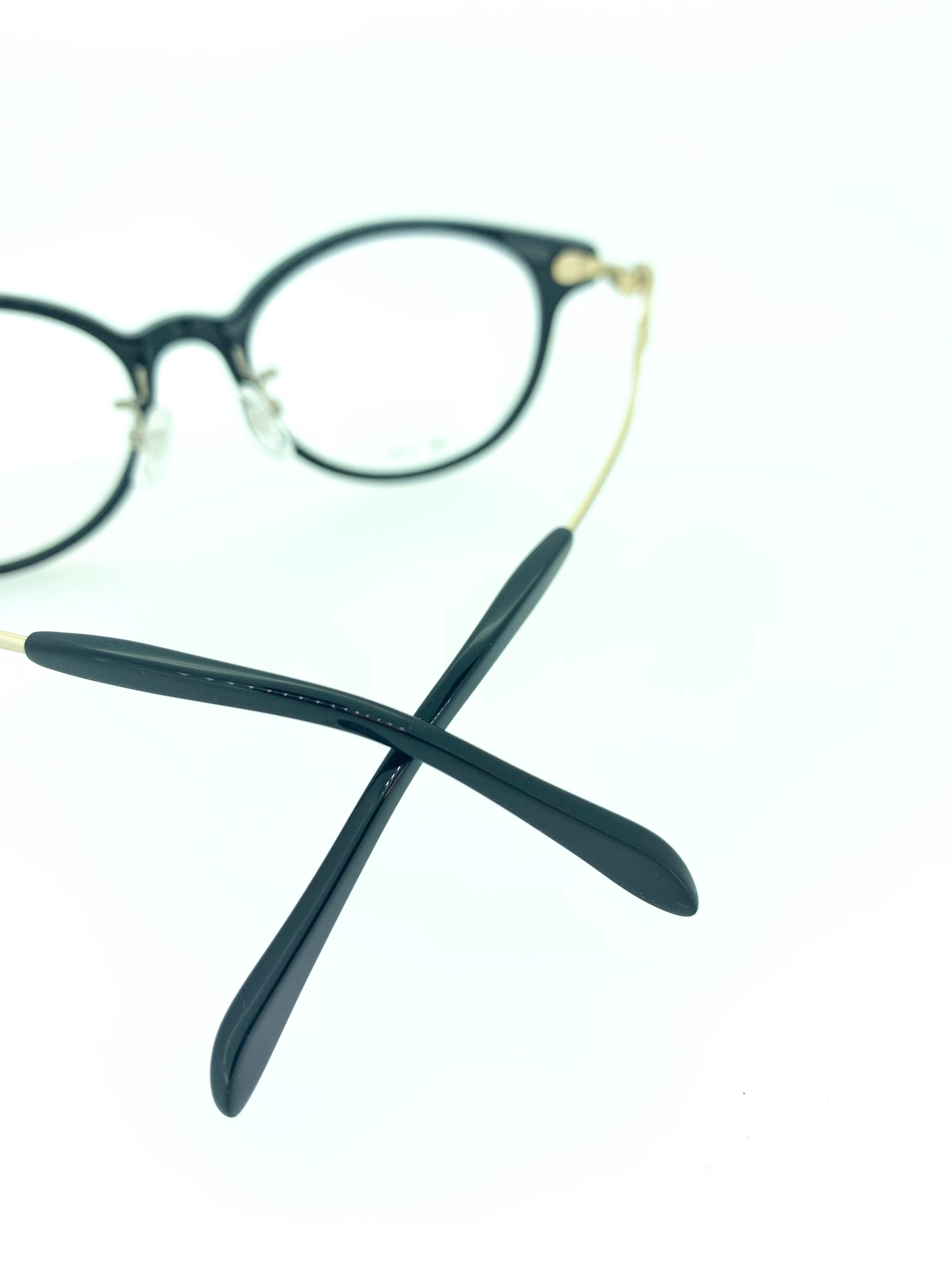 少し丸みのあるボストンシェイプのセルフロントにエレガントな雰囲気のメタルテンプルを合わせたコンビネーションフレーム。テンプルをゴールドメタルを採用し、ブラック×ゴールドのスタイリッシュなデザインでまとめ上げています。2本の細身メタルが織りなすテンプルもしなやかなのでフィット感もある機能面でも充実した1本です。