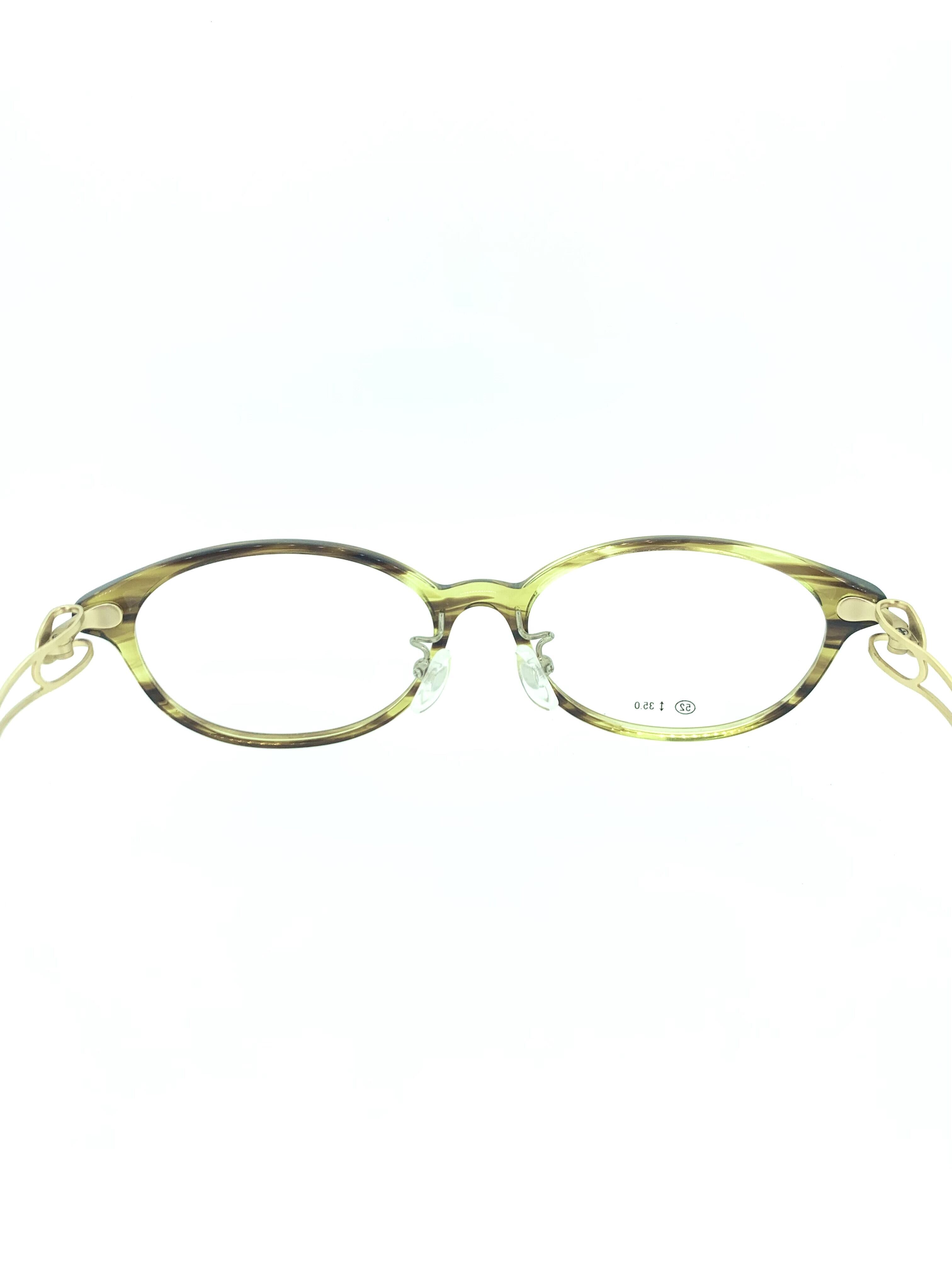 天地浅めのボストンシェイプに鮮やかなイエローササのクリアフレームが綺麗なコンビネーションフレーム。クリアフレームから透けて見える光の加減がササ柄の幻想的な雰囲気を引き出しています。フロントカラーと合わせたイエローゴールドのメタルテンプルも高級感があって相性抜群です。しなやかなメタルによるフィット感もあり、デザイン性だけでなく機能性も満足できるプチプラアイテムとなっています。