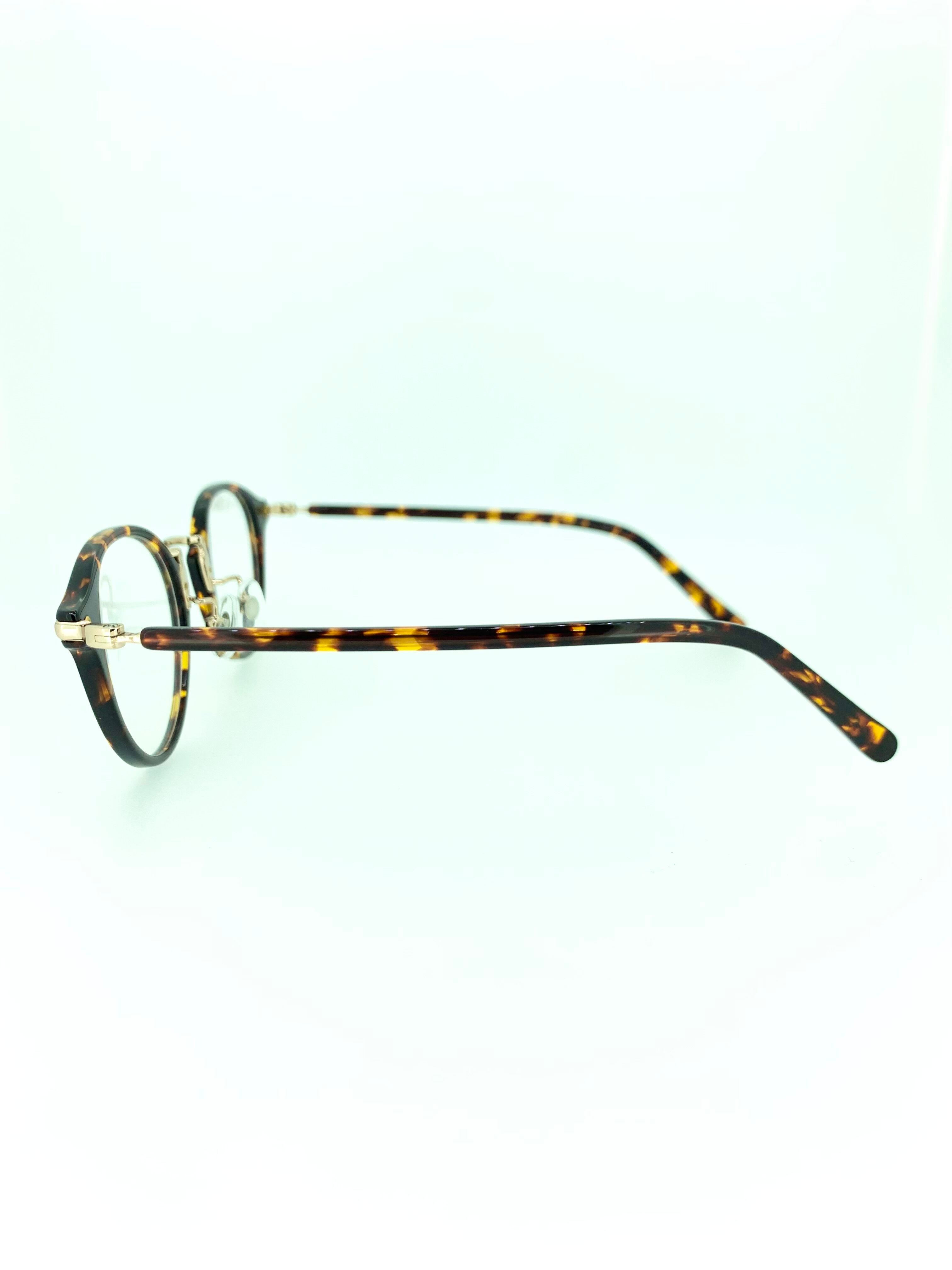 琥珀のような濃淡のハッキリとしたブラウンデミが外さないコンビネーションフレーム。ほど良い天地幅のボストンシェイプにデミ柄が相性良く、クラシカルで上品なデザインに仕上がっています。ブリッジやヨロイ部分のメタルもゴールドカラーの高級感のある色合いで合わせコーデにもピッタリなプチプラアイテムとなっています。