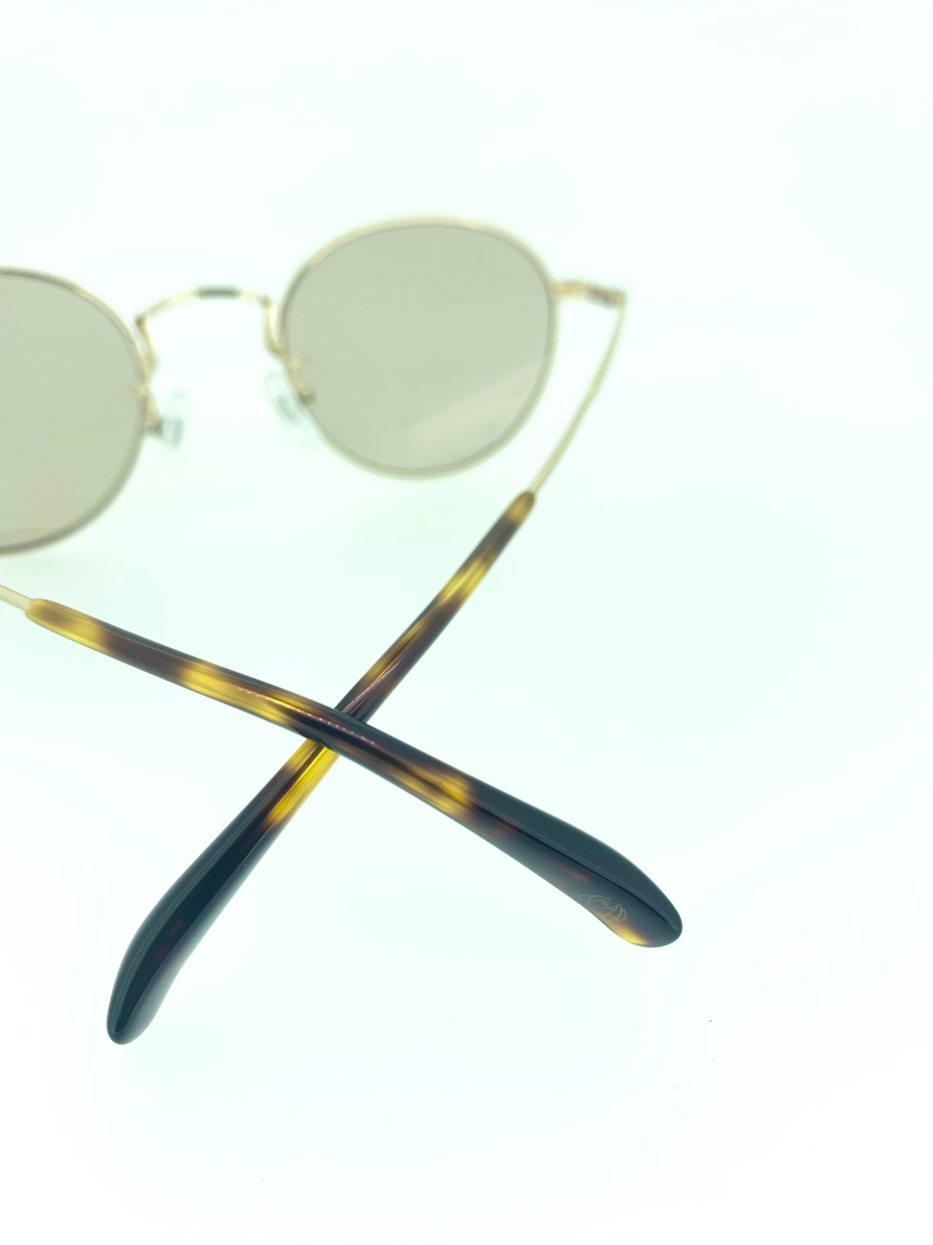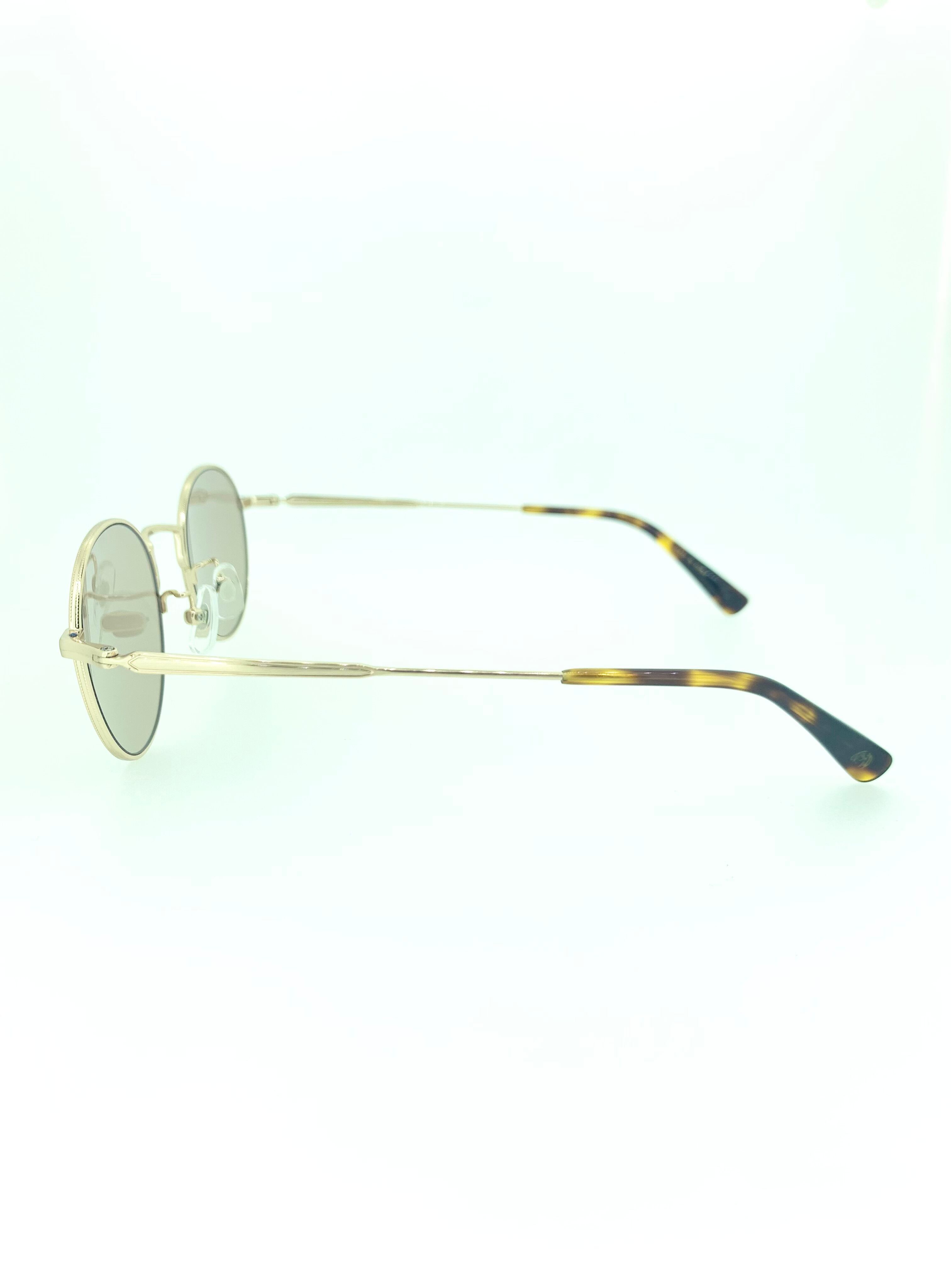 哀愁あるアンバーカラーが何とも言えない雰囲気を醸し出すボストンシェイプのメタルフレームサングラス。上品なゴールドメタルにクラシカルなブリッジデザインの組み合わせがお洒落な作品。レンズサイズはJOHN LENNONの中ではサングラス仕様に合わせ大きめとなっています。先セル(耳当て)は失敗しないブラウンデミで合わせています。