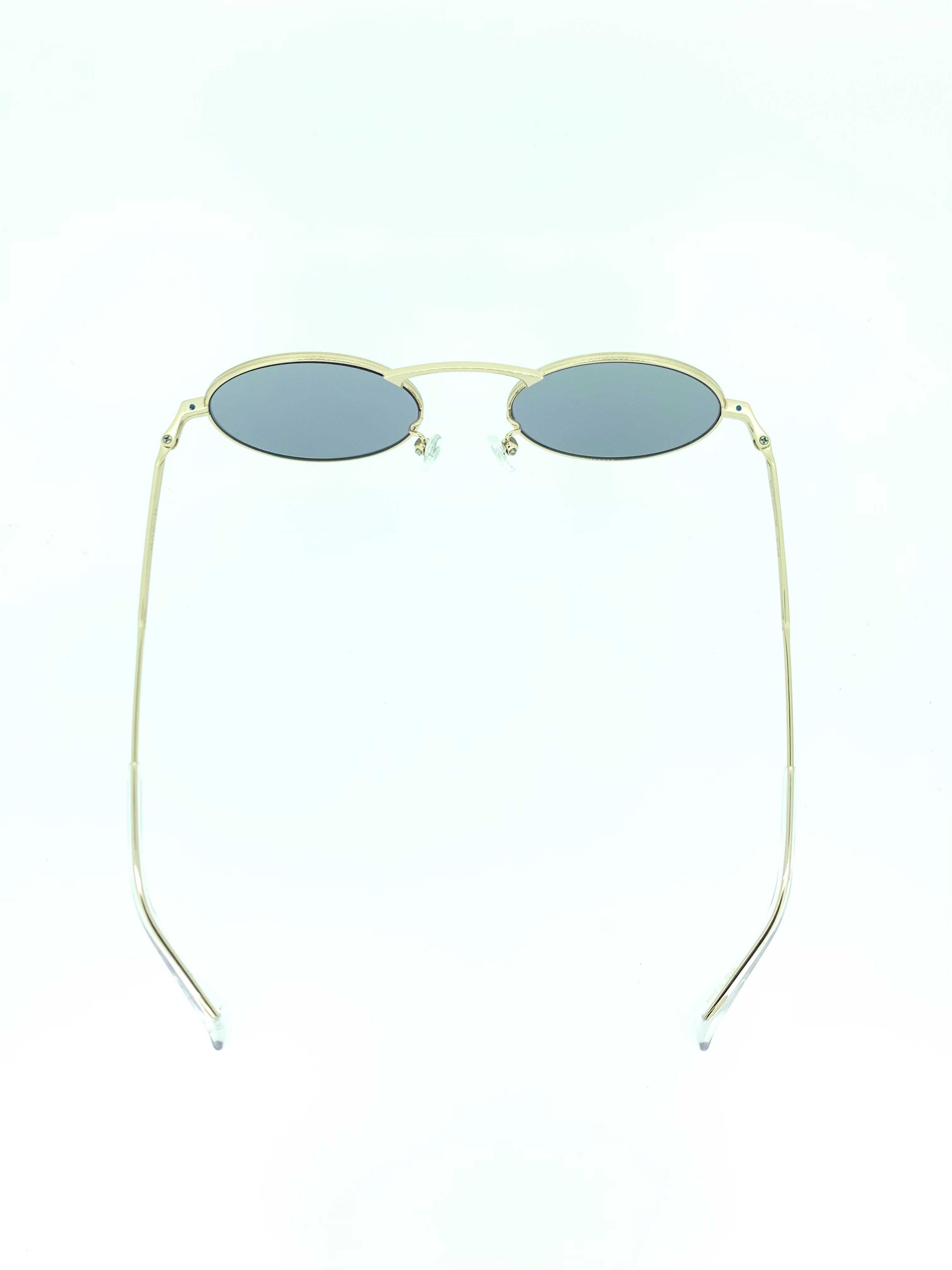 ヘリオトープのレンズカラーがミステリアスなラウンドシェイプのメタルフレームサングラス。高級感のあるゴールドメタルに長いハイブリッジのデザインがレトロな雰囲気を放っています。どれも似たようなシルエットになりやすいラウンドシェイプにクラシカルな要素を忠実に再現したスタイリッシュでお洒落な作品となりました。