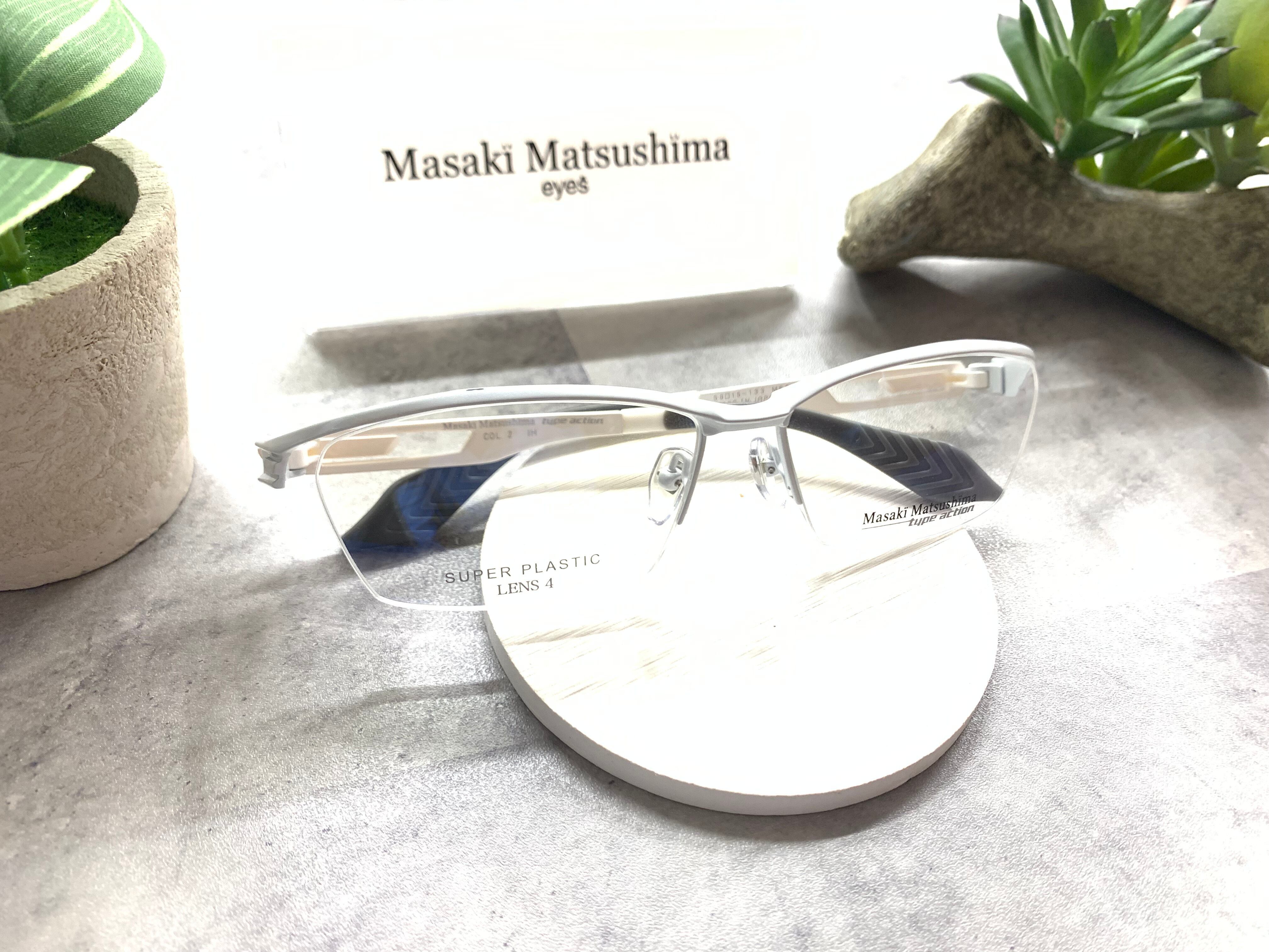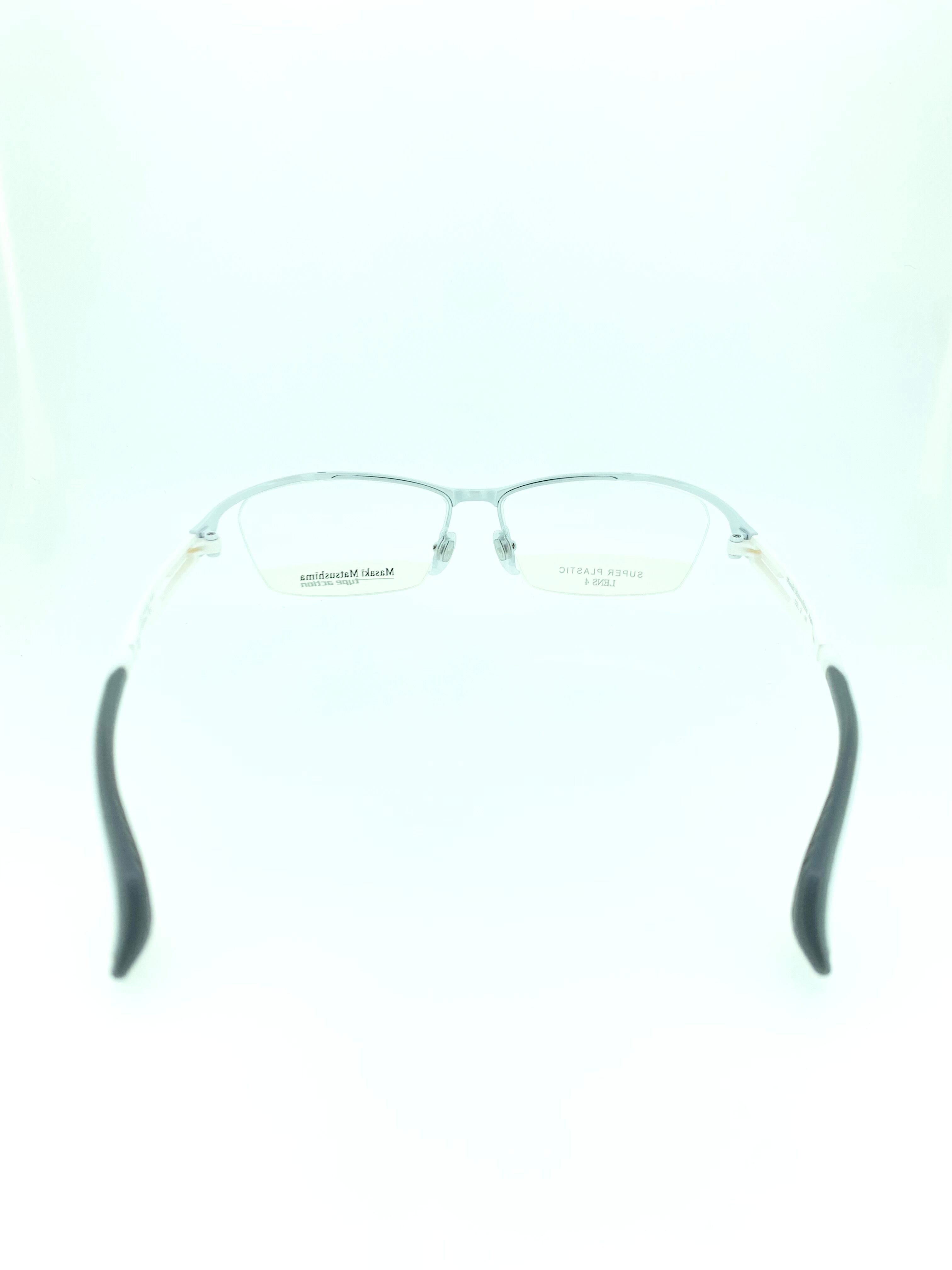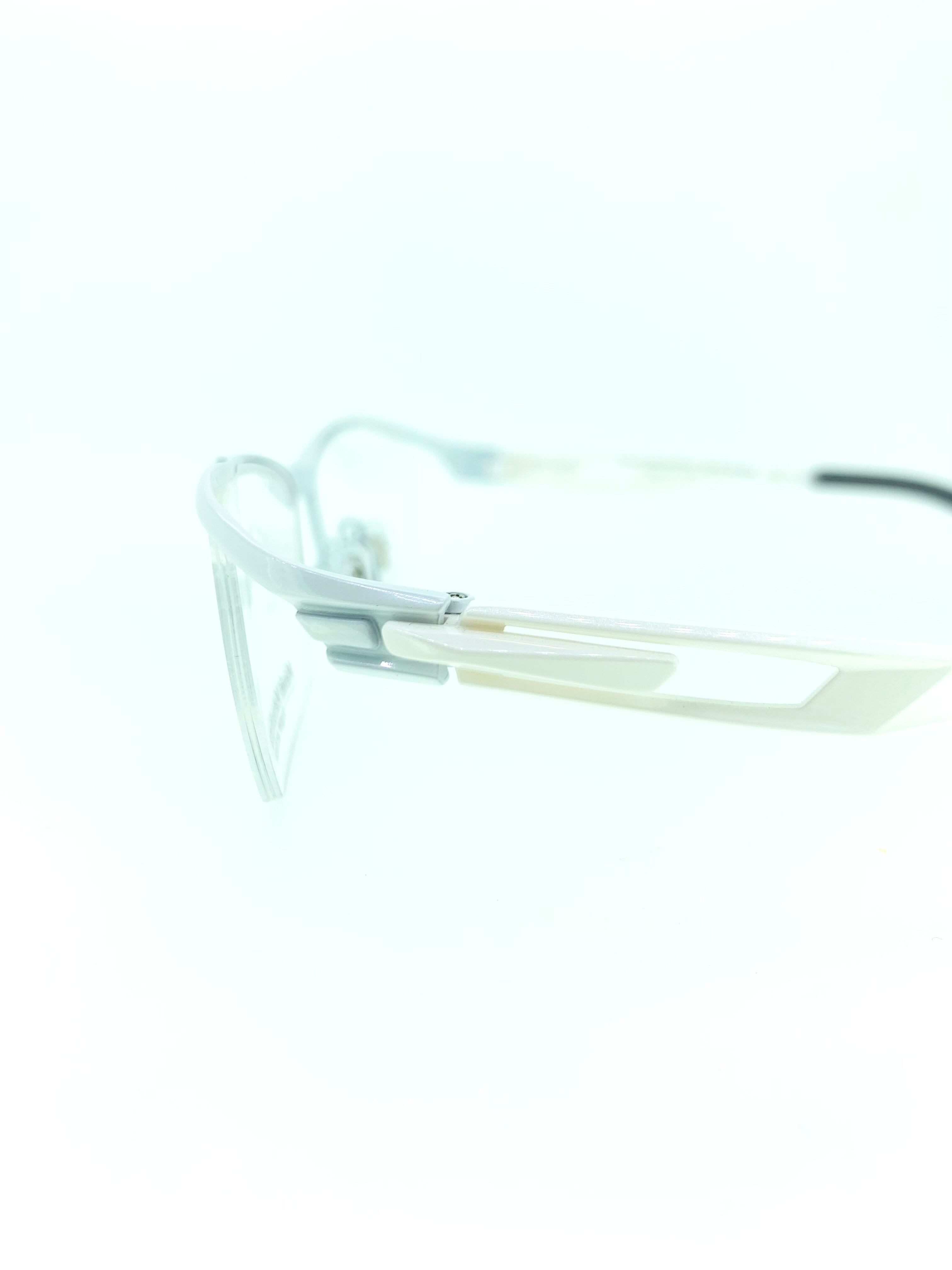 ホワイトカラーのメタルフレームに樹脂製の先セル(耳当て)がアクティブな作品。テンプルが肉抜きデザインになっていて、柔軟性と軽量感のある機能的なデザインになっています。Masakiのスタイリッシュなデザインとアクティブなブランド方向をしっかりリンクしました。