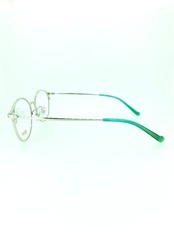 少し緑がかったブラックのフロントに鮮やかなコバルトグリーンの先セル(耳当て)が映えるメタルフレーム。フロントはブリッジまで同色で合わせているため、カジュアルな雰囲気もあってかけやすいデザインとなっています。シンプルで癖が無いのでシーンやコーデにも合わせやすいお洒落な作品に仕上がりました。
