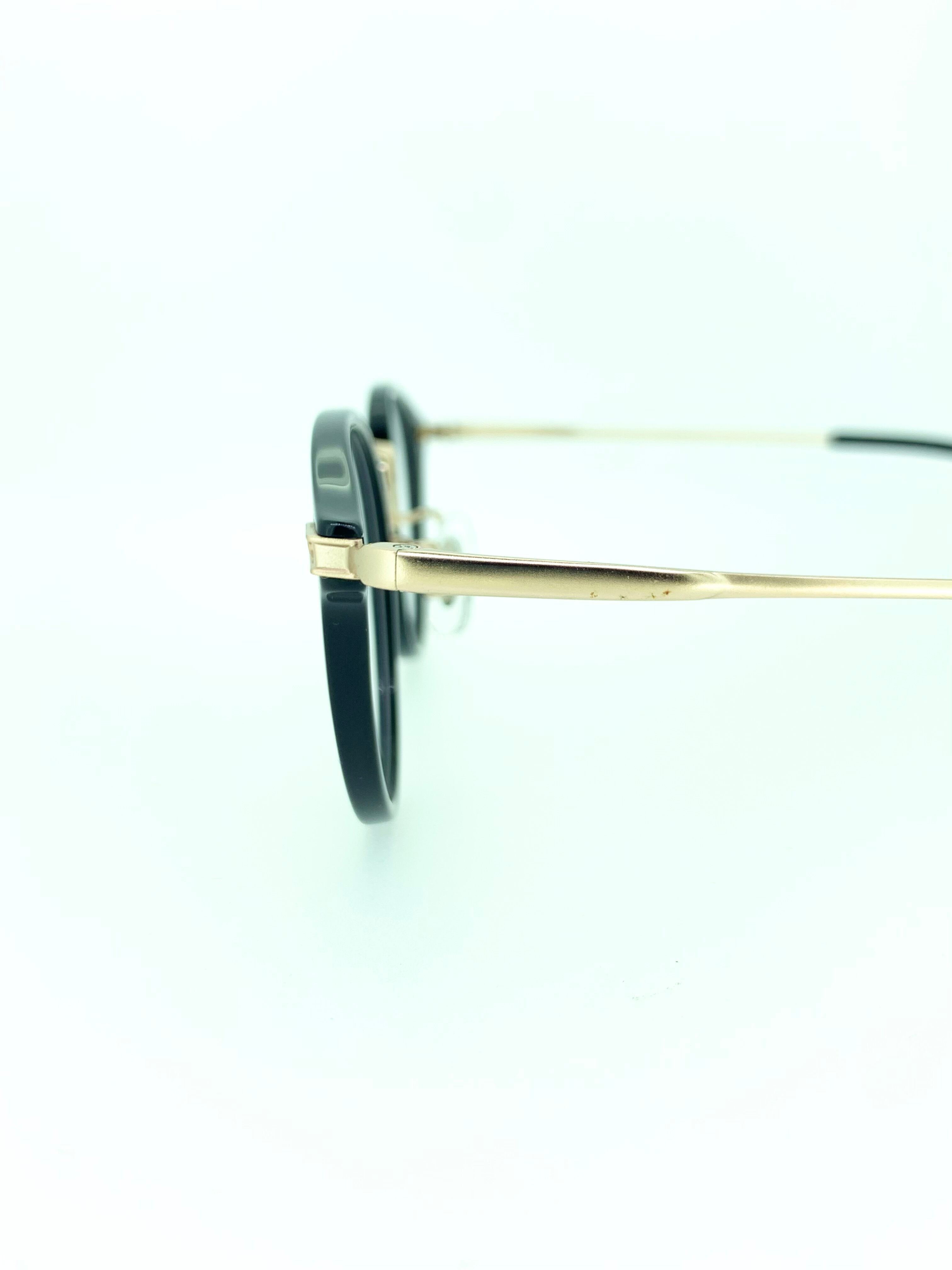 ラウンドのような丸みを帯びたボストンシェイプのコンビネーションフレーム。ブリッジの付け根のリムは目頭に描いたアイラインのようにツンッとしたお洒落なデザインになっています。ブリッジがメタルのコンビフレームは鼻筋がスラッと見えて人気が高いデザインです。カラーも王道にして人気のブラック×ゴールドでコーデにも合わせやすく優秀です。