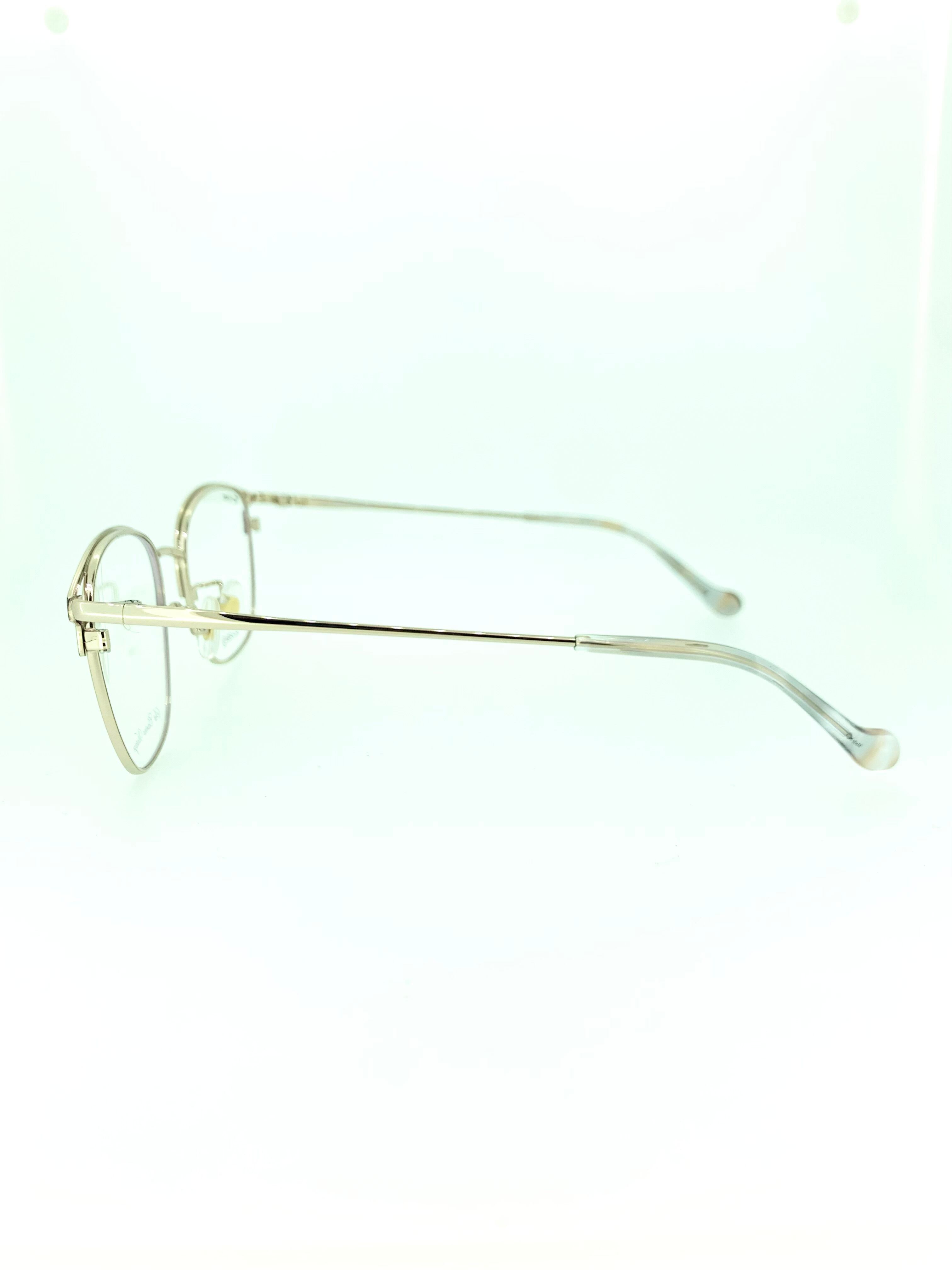大きな台形のウェリントンシェイプにファッショナブルな上部リムのデザインがお洒落なメタルフレーム。上部リムはブローデザインのようにカラーリングされ、目尻の一部がリムレス仕様になった高級感のあるデザインとなっています。ワイドなウェリントンのレトロさとリムデザインのモダンな雰囲気にギャップのあるお洒落なプチプラアイテムに仕上がりました。
