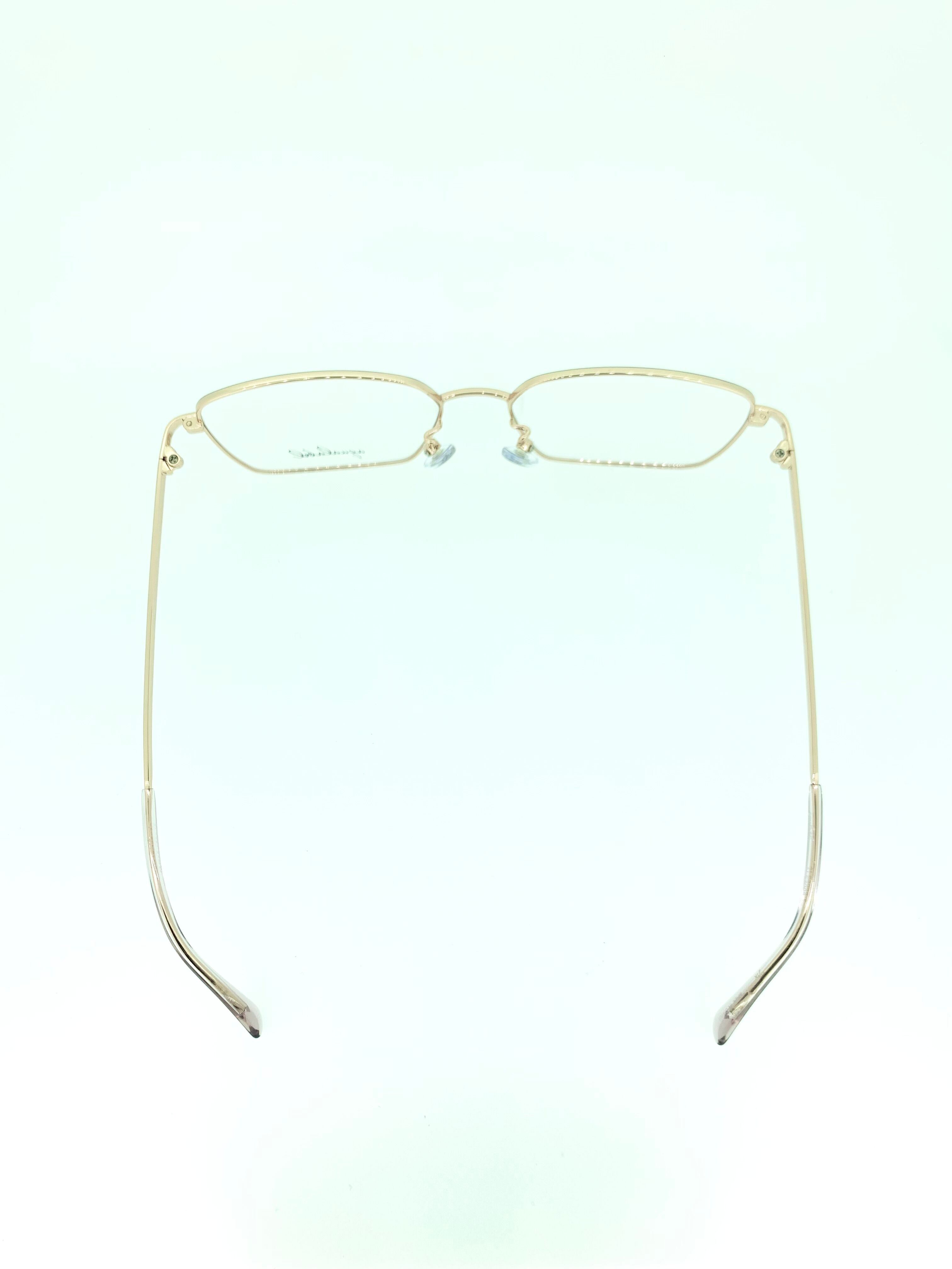 天地広めで大きなスクエアシェイプのフロントがレトロ感のあるメタルフレーム。時代に逆行するレトロ風のシルエットのアイウェアはコーデのアクセントに抜群で、今も変わらず人気を博しているお洒落なアイテムです。パステルグレーのフロントリムにスタイリッシュなゴールドメタルのカラーリングも絶妙ですね。味のあるシルエットを活かしてオールドスタイルでかけたいプチプラアイテムです。