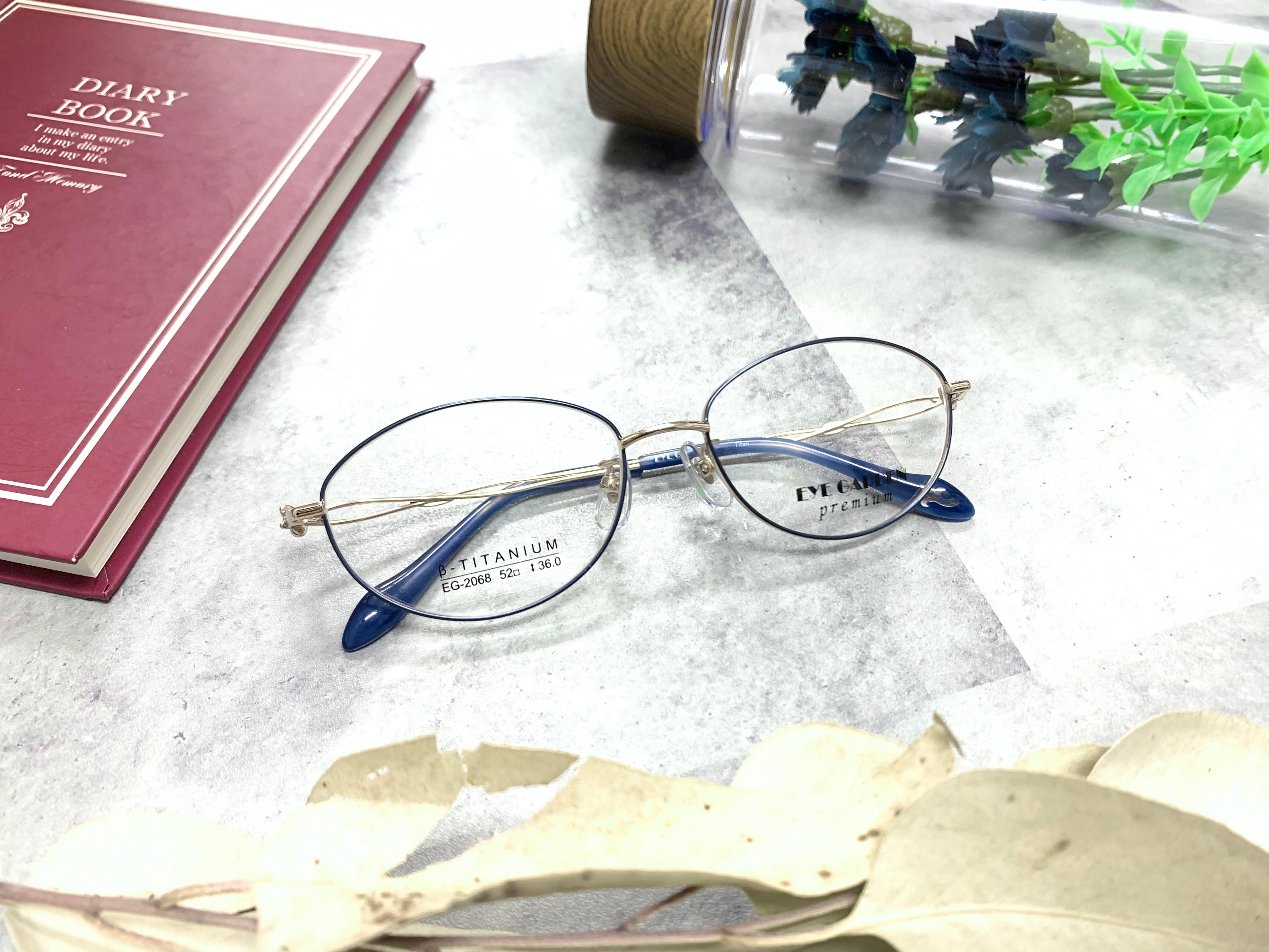 上部リムのラインがシャープな天地浅めなボストンシェイプのメタルフレーム。目尻側を少し下げているため、優しい印象のボストンシェイプになっています。流れるようなラインのテンプルデザインが、丁番部分の蝶が羽ばたいた痕跡のような可愛らしいデザインとなっています。フェミニンになり過ぎないようにシックなネイビーブルーのカラーリングが大人の雰囲気にまとめています。