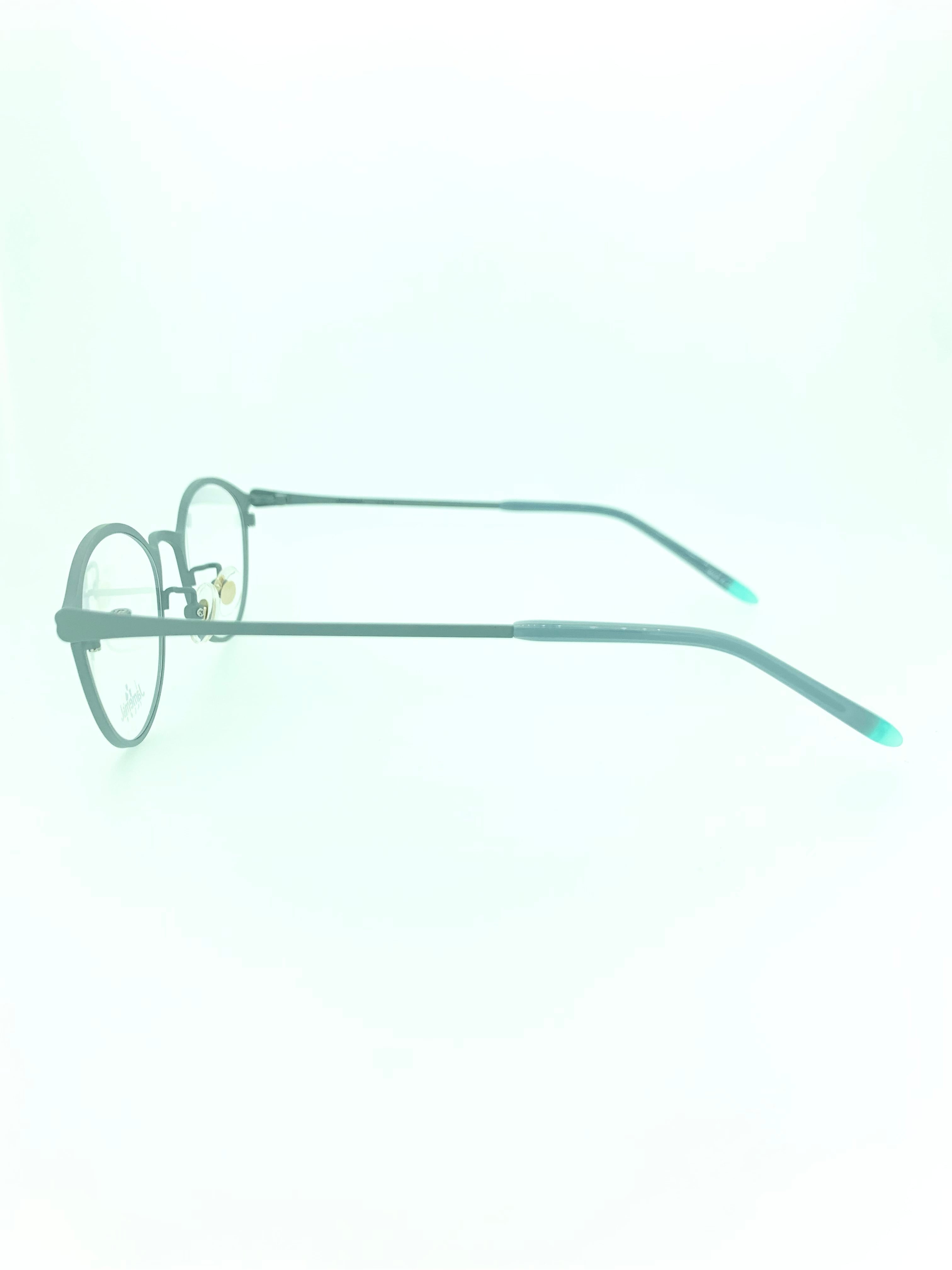 肌触りの良いメタル地に描かれたワンちゃんをモチーフとしたデザインが可愛らしいボストンシェイプのメタルフレーム。サックスブルー×グレーのカラーリングも珍しく遊び心をくすぐるデザインとなっています。テンプルのインナーには肉球の足跡やダックスのモチーフが描かれていて、愛犬家の方から可愛いもの好きな方までオススメ出来る作品です。