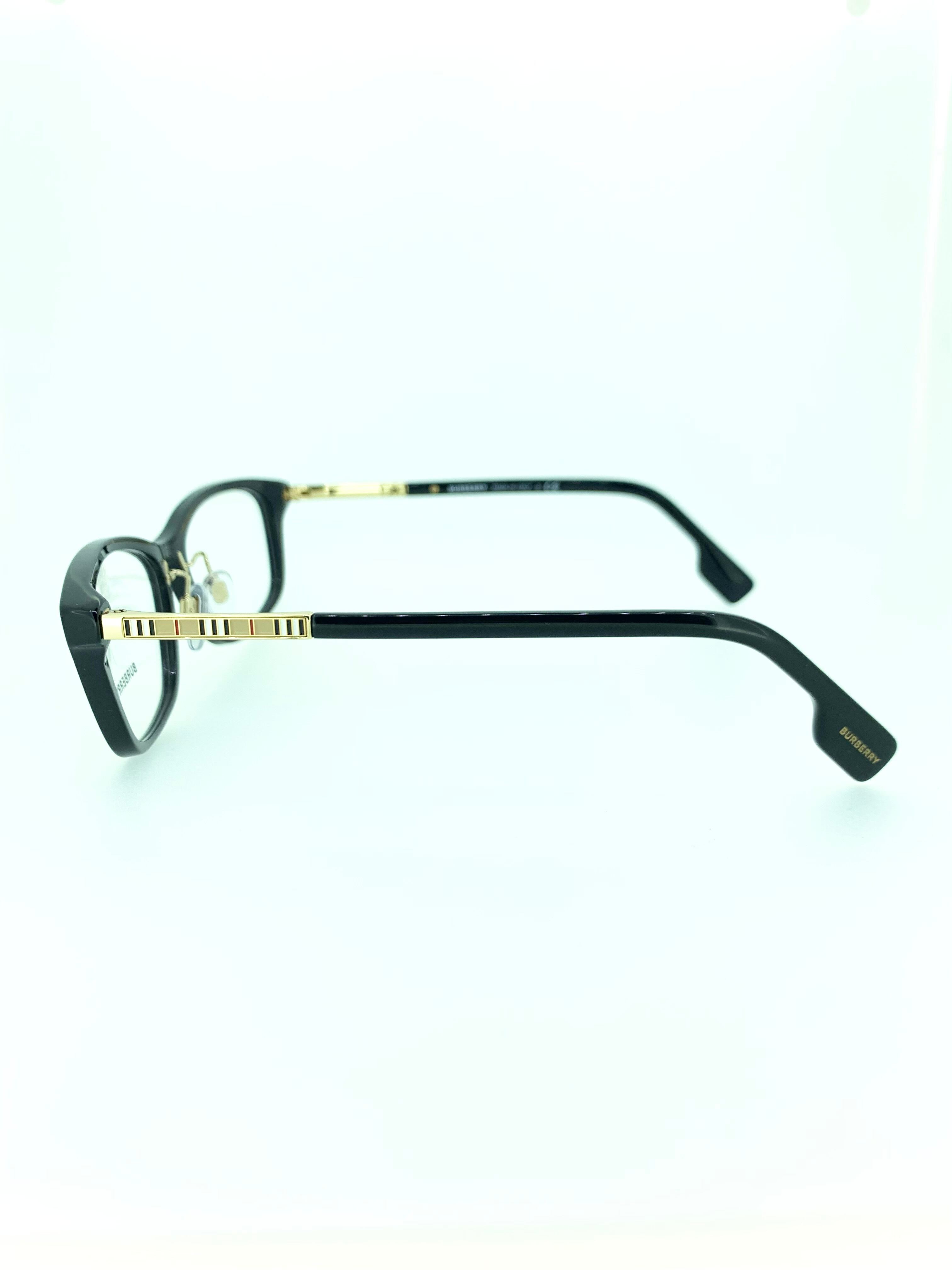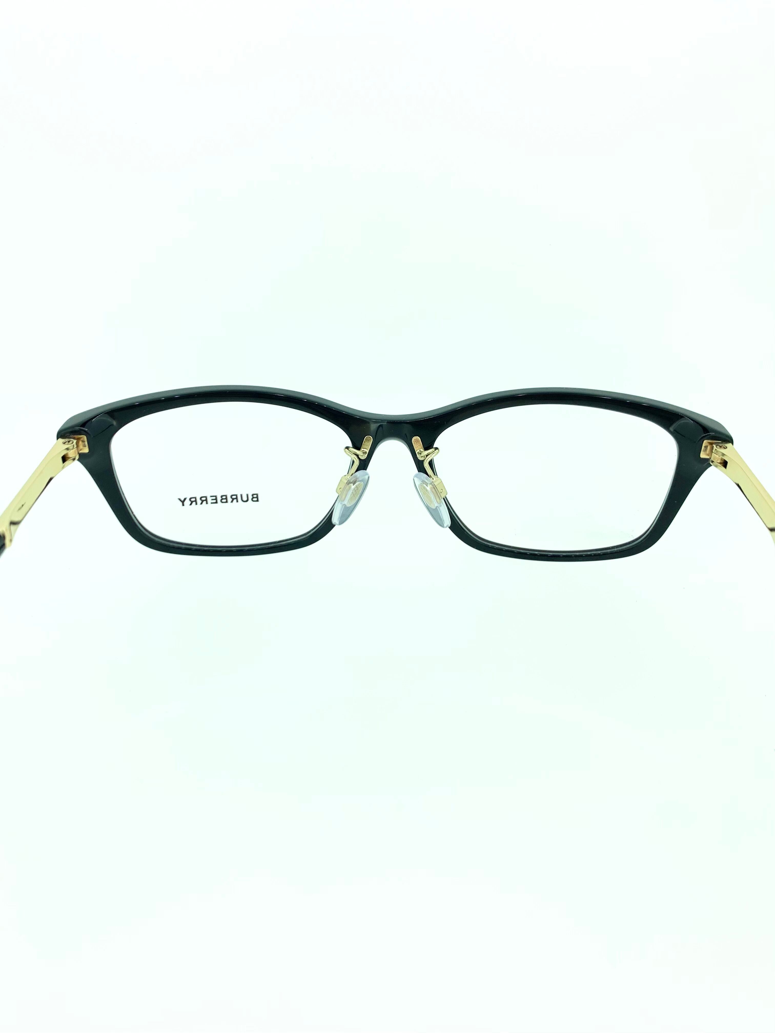 スラッとしたウェリントンシェイプにゴールド×ブラックのカラーリングが映えるコンビネーションフレーム。上部リムとブリッジを滑らかなラインで繋げることにより、モダンな雰囲気にまとまっています。テンプルのメタル部分にはBURBERRYお馴染みのバーバリーストライプがデザインされていて、お洒落で高級感のあるデザインに仕上がりました。