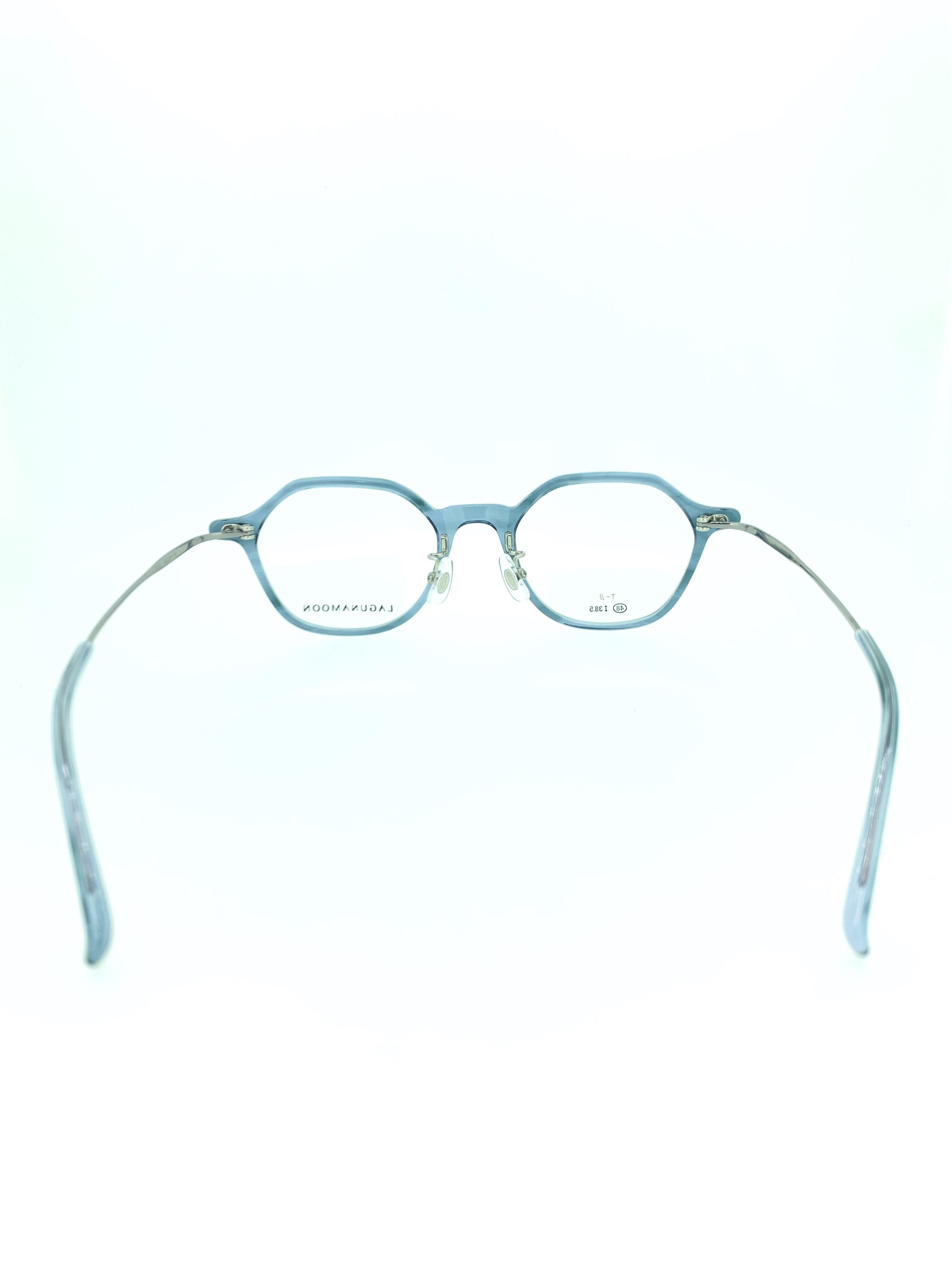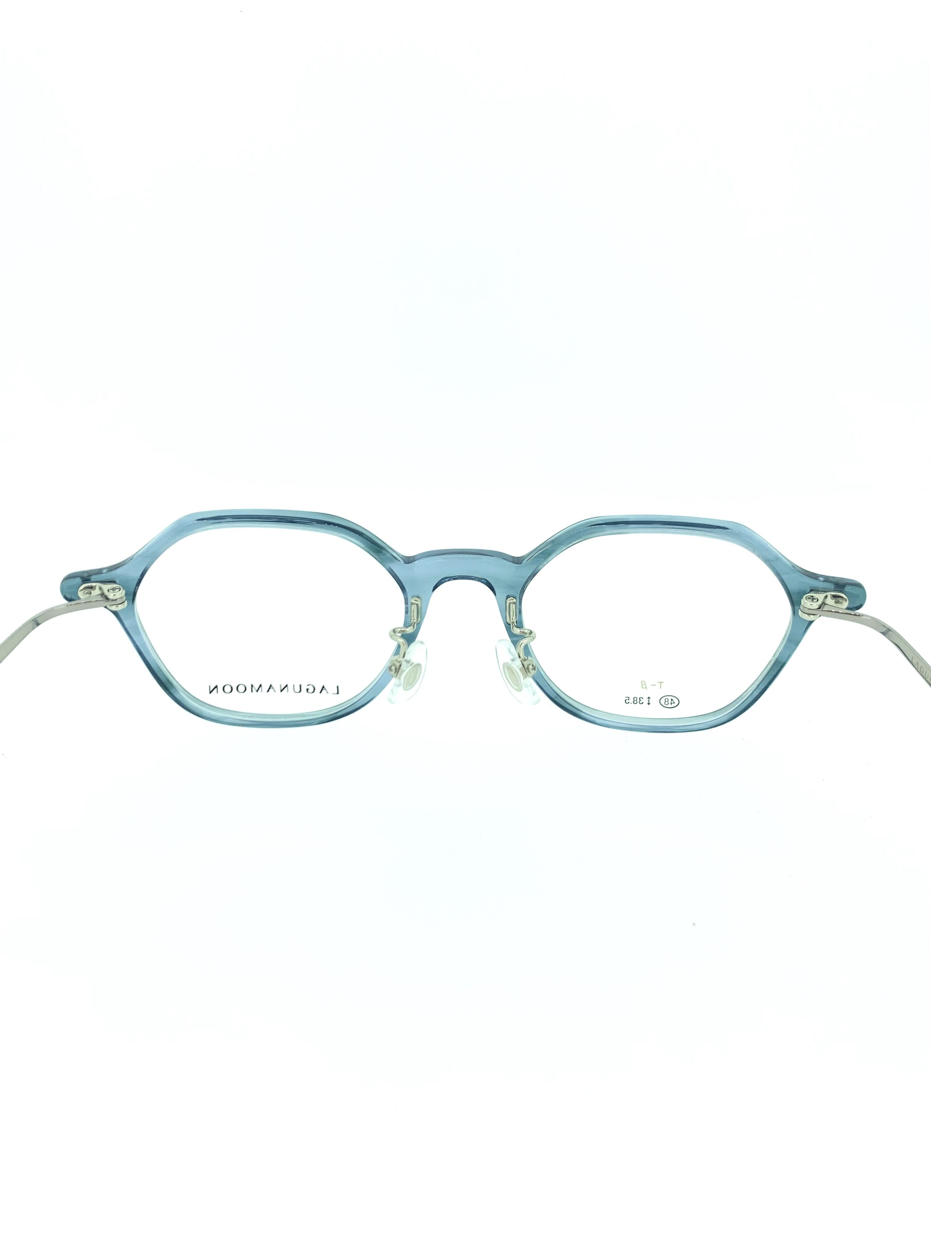 鮮やかなヒヤシンスカラーのセルフロントに個性的なヘキサゴンシェイプを合わせたコンビネーションフレーム。角を立て過ぎない少し丸みのあるセルデザインが個性的なシェイプラインをカジュアルにかけやすいバランスにまとめてくれています。細身のシルバーメタルなど他をシンプルなデザインで統一し、シルエットやカラーで魅せる綺麗な作品となっています。