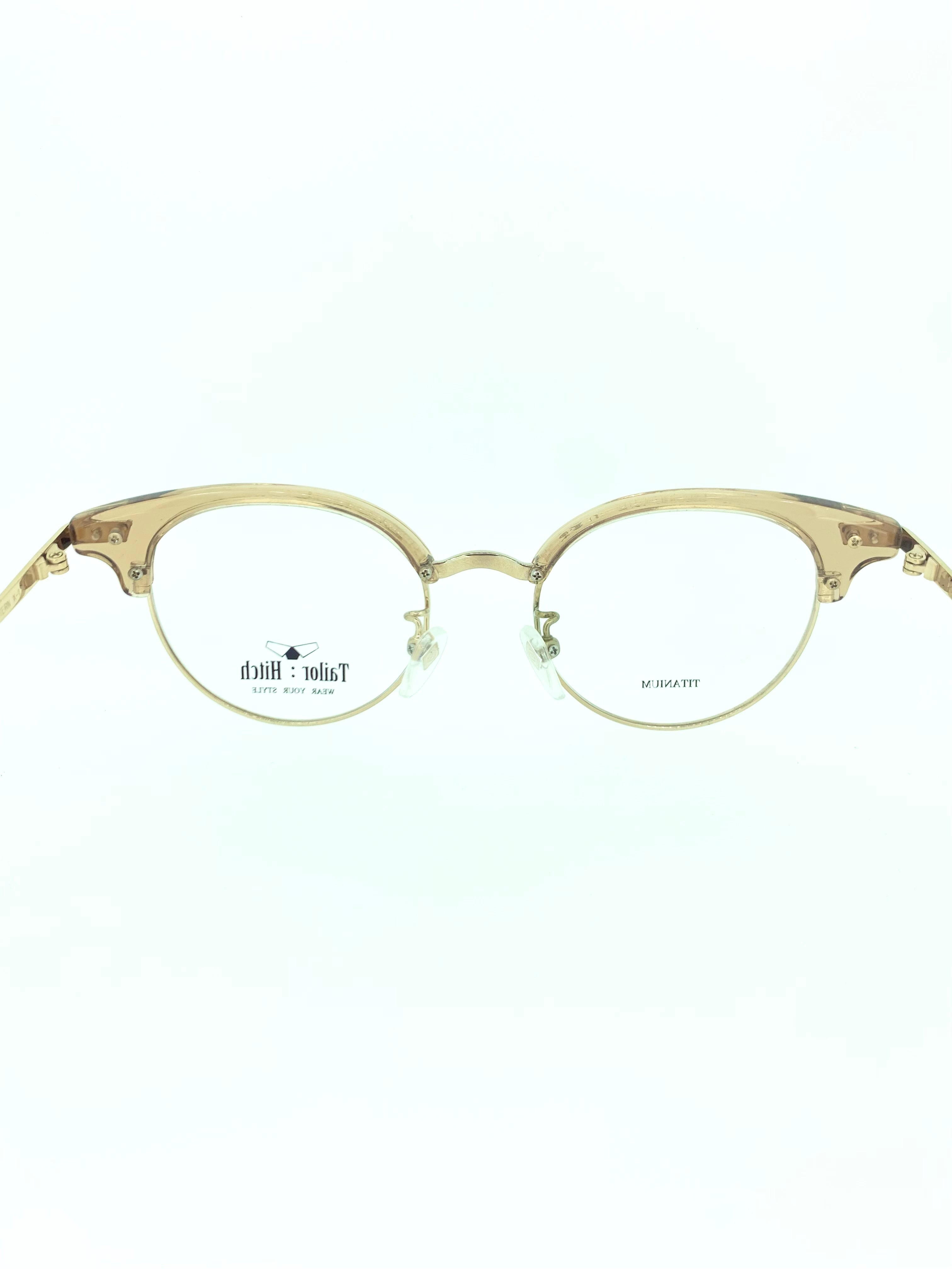 人気再沸騰のサーモントブローに流行りのクリアセルを合わせたブローフレーム。淡くいアンバーカラーのセルブローは目尻につれてワイドになる曲線を描き、柔らかくも力強いデザインとなっています。ボストンシェイプのオールドスタイルのシルエットにモダンなクリアセルの調和が個性的な作品は、ブローフレームに挑戦したこと無い方や女性でも扱いやすいアイテムに仕上がりました。