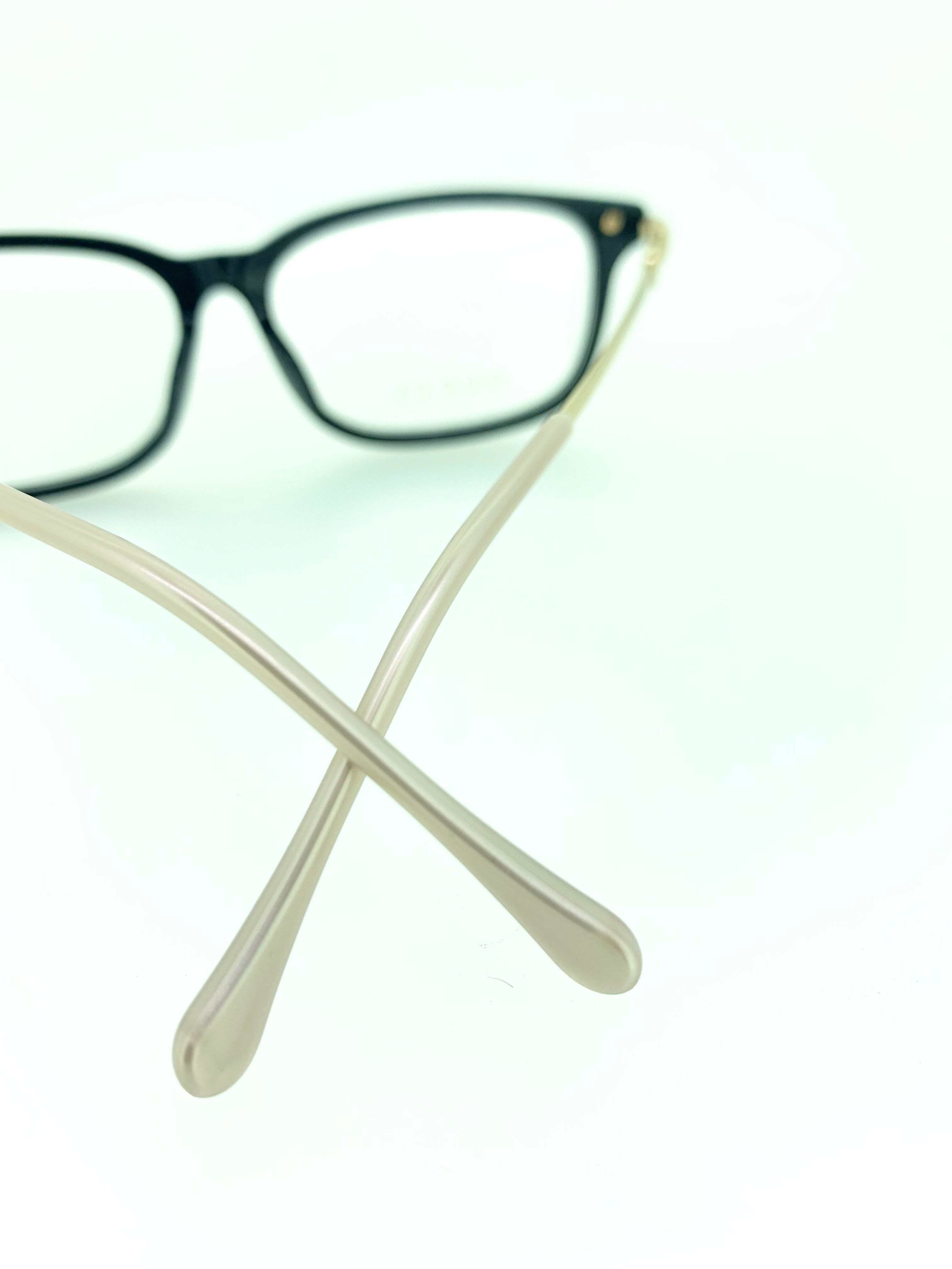 天地浅めなウェリントンシェイプに細身のゴールドメタルを合わせたカジュアルさとスタイリッシュさを兼ね備えたコンビネーションフレーム。ポリッシュブラックのセルフロントと強弱をつけるようにテンプルは細身メタルを採用することで、重たくならずスッキリとした印象でかけられるバランスの綺麗な作品です。バッグのチェーンのようなテンプルデザインはアパレル発祥のGUCCIならではといった遊び心のあるデザインで心が躍るアイテムです。
